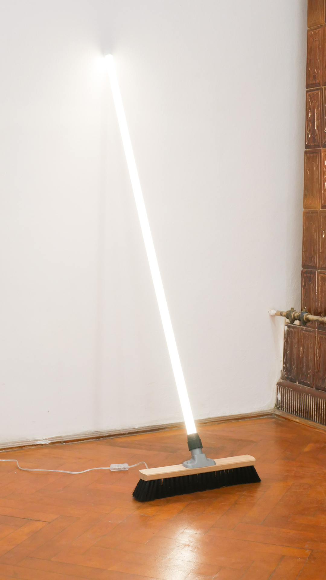 a broom. Cesar Axel proposes a broom with a powered LED tube stick, questioning our constant interchange and encounter with various developing products, either domestic or not.