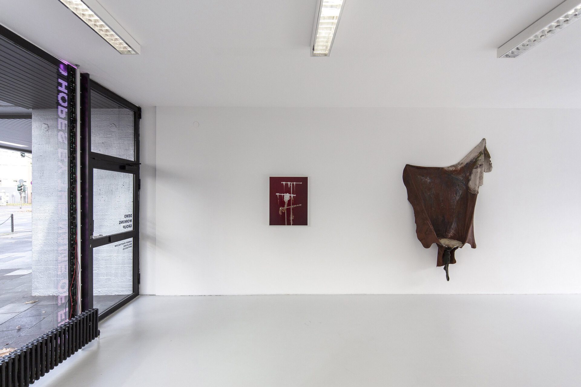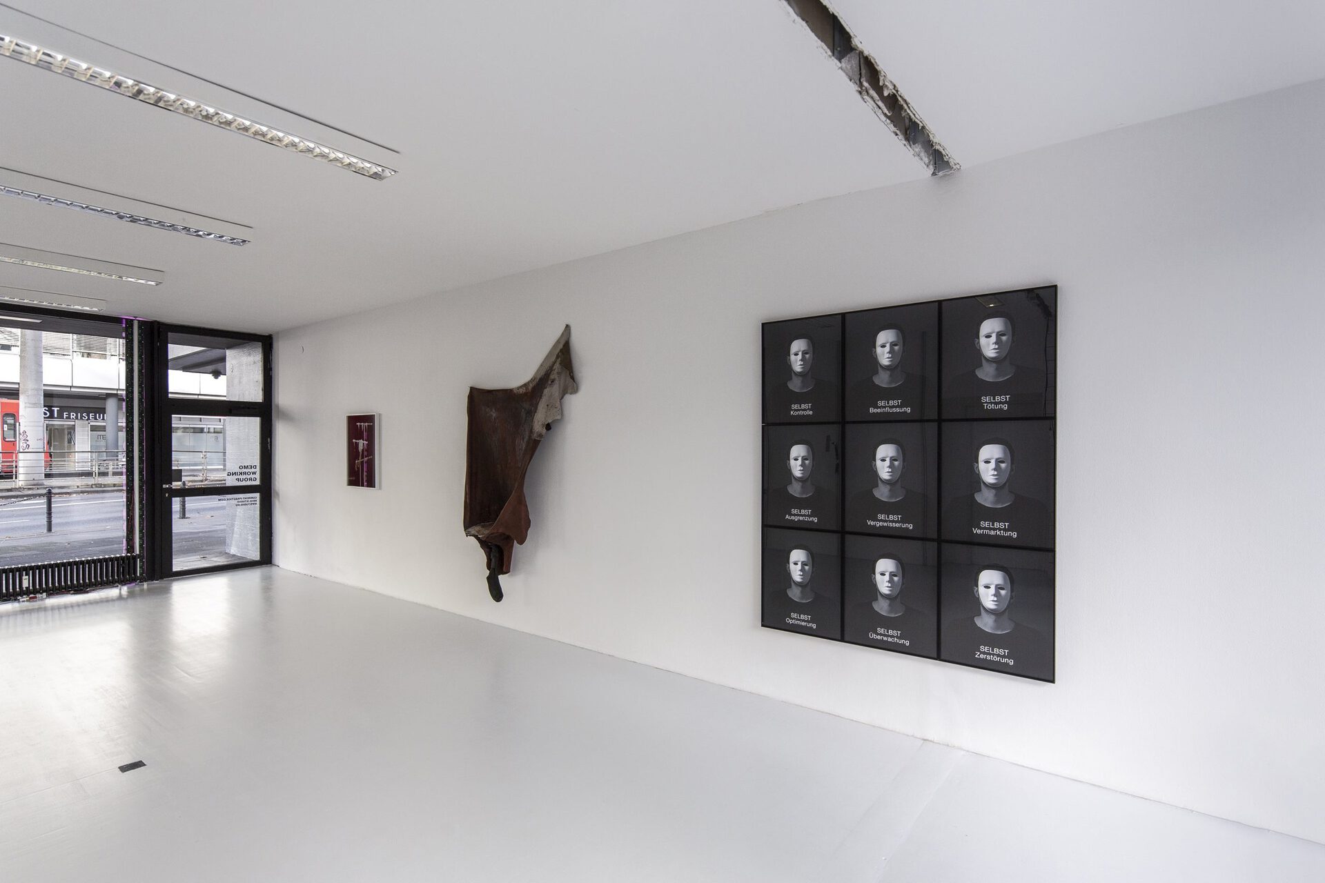 HYPERWOUND is a group exhibition that brings together nine international artists belonging to different generations and characterised by diverse practices and media. The show is hosted by Demo Working Group from 19th to 21st November 2021– aspiring to engage in dialogue with Art Cologne 2021 that takes place in the same time frame. The project is curated by Tim Plamper and Giulia Ottavia Frattini. The exhibition questions the idea of categories seen as structures that organise experience and knowledge. According to the curatorial take, categorisation is a notion not to be intended as static but instead as liquid: categories are intertwining systems that must contain within themselves the potential for exchange and renewal. The purpose is to foster further considerations around this topic through the selected artworks. The hosting venue itself reinforces and activates a reflection on this theme. Starting from an architectural point of view, for this occasion, the collective Demo Working Group broadens its agenda by inviting multiple disciplines to take over their working environment. With a temporary transformation of the space the transitional position of interchange and infiltration will be made visible. The venue is, in fact, an architectural office based in Cologne downtown. It is located on the ground floor at one of the most neuralgic spots within the city, and through its double-sided glazing, it stands as an extension of the urban space. Therefore, the boundary between interior and exterior, the public and the private, is faced daily. The border is one of the most fundamental triggers from the architectural perspective; this concept, together with a space-creating approach, will be explored and expanded through the lens of an artistic intervention. Within the exhibition, the skin and its layers are used as a metaphor to unfold a room for interaction between realities or states of different nature: “the inside” and “the outside” are not absolute but instead always convey renegotiable degrees of permeability and enclosure, separation and mutual influence. Surface, threshold, border, liminality, encounter and collision appear as crucial terms in the exhibition's conception. Participating artists: Mit Borrás Svetlana Hollis Jürgen Klauke Henri Michaux Gina Pane Tim Plamper Torbjørn Rødland Gian Spina Raphaela VogelText