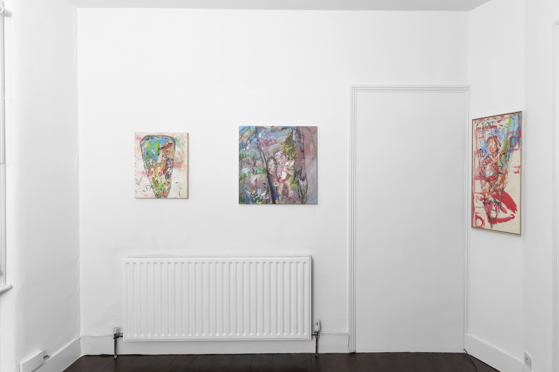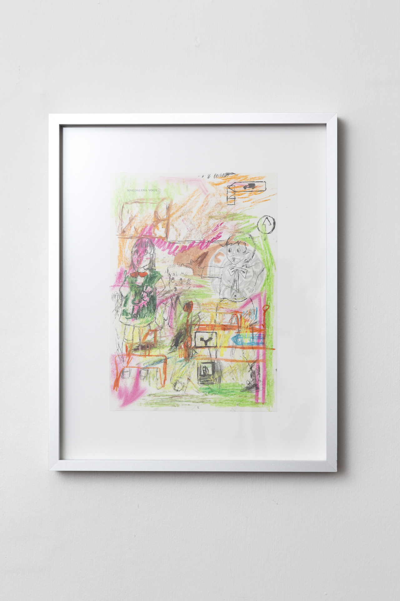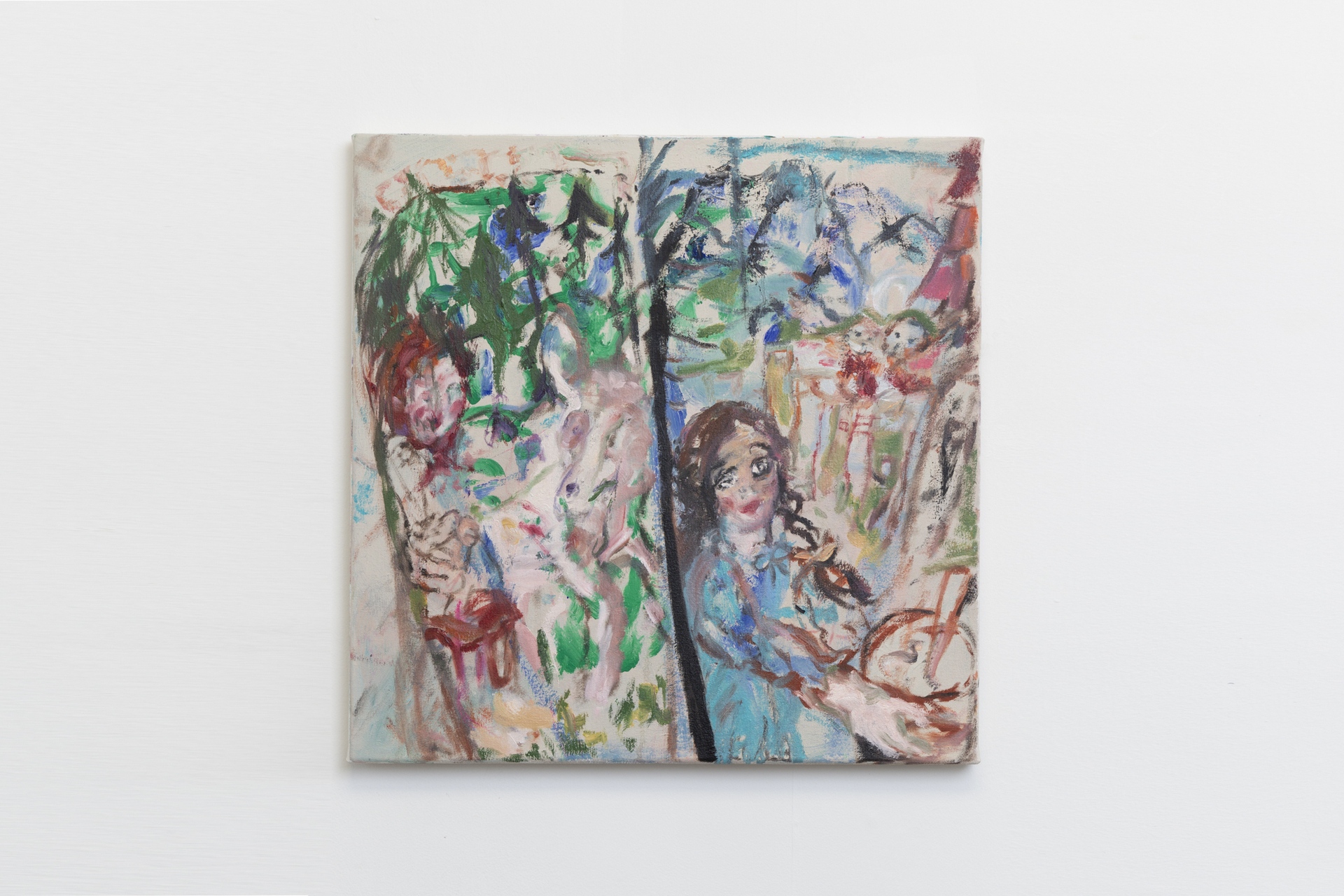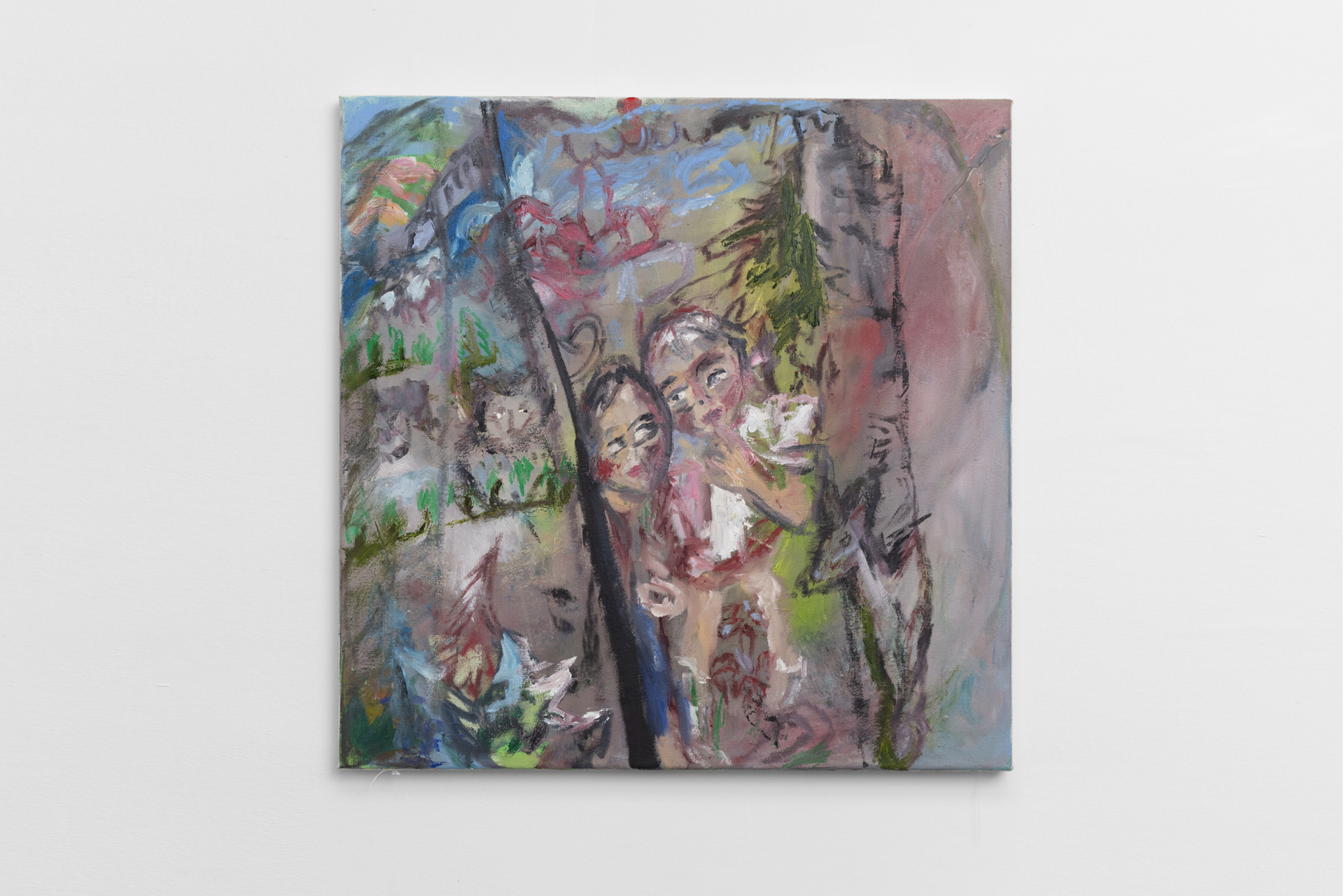 Isadora Vogt’s paintings combine different narratives, mashing up and deconstructing seemingly familiar motifs. This deconstruction lets the viewer glimpse friendly faces and figures smothered in a synergy of merging layers of subjects, objects and gestures.