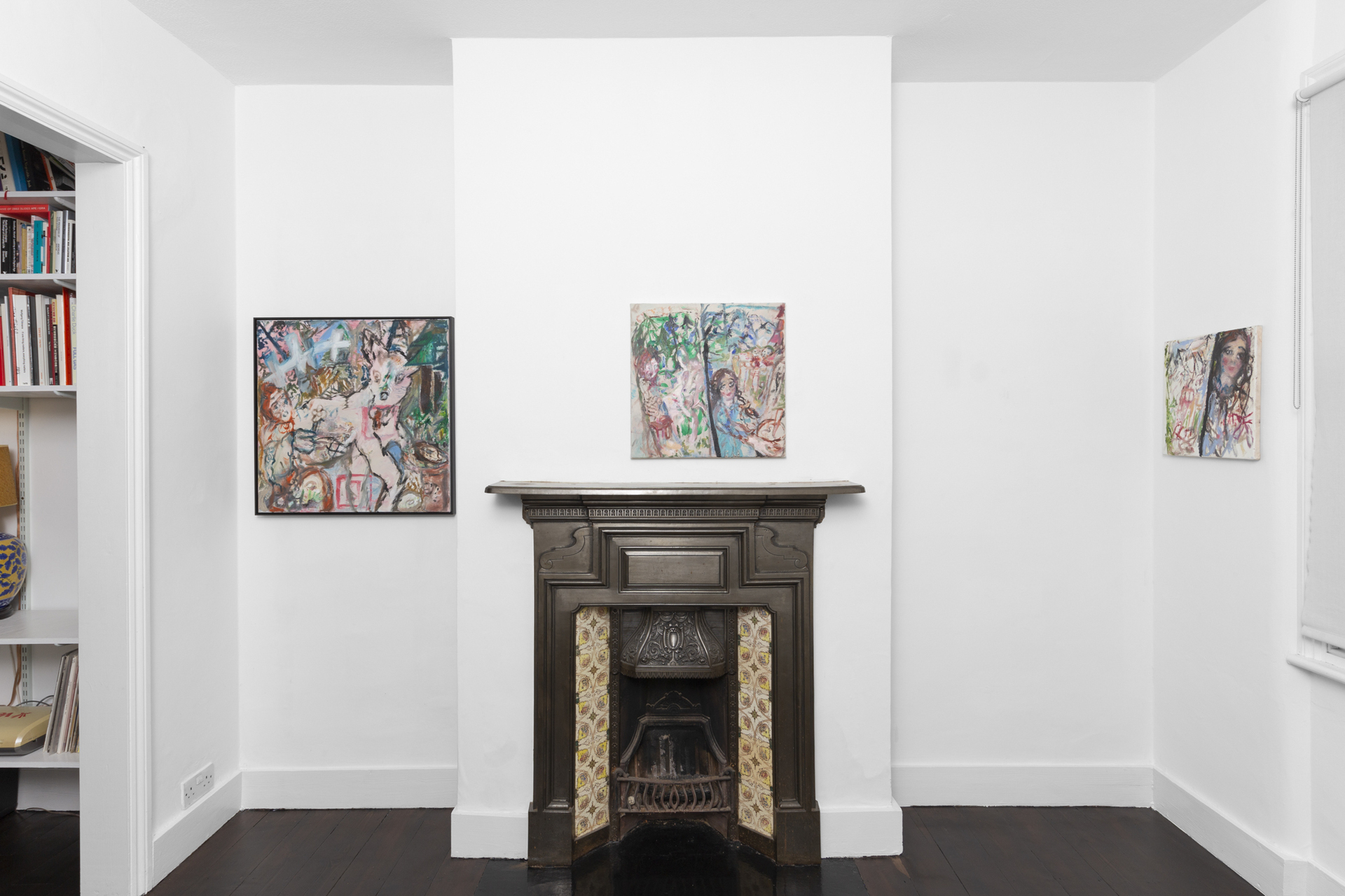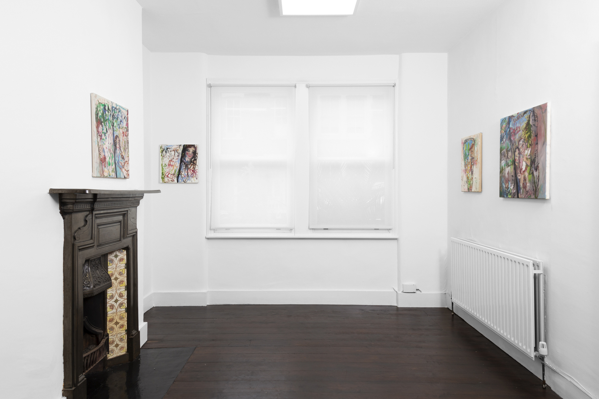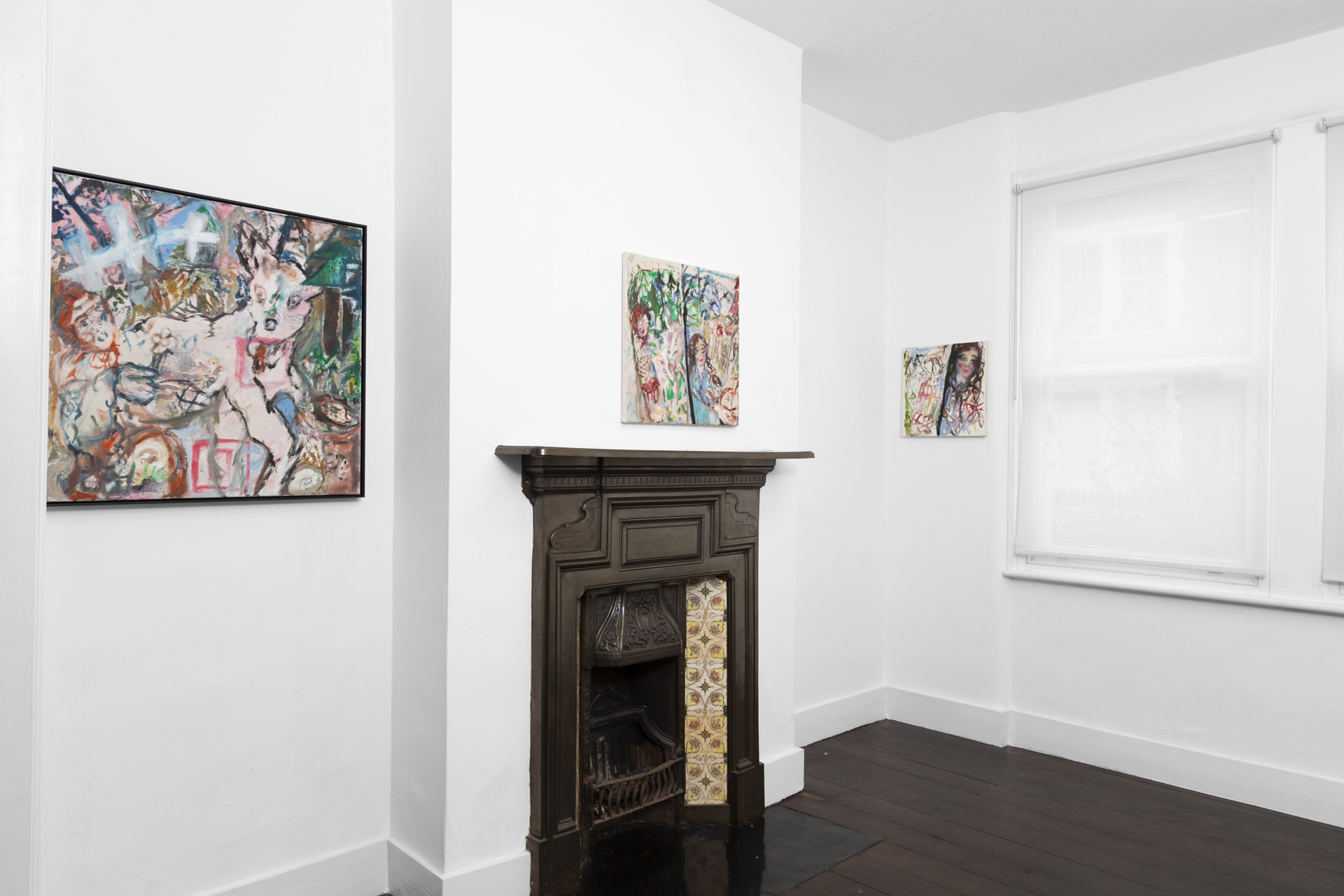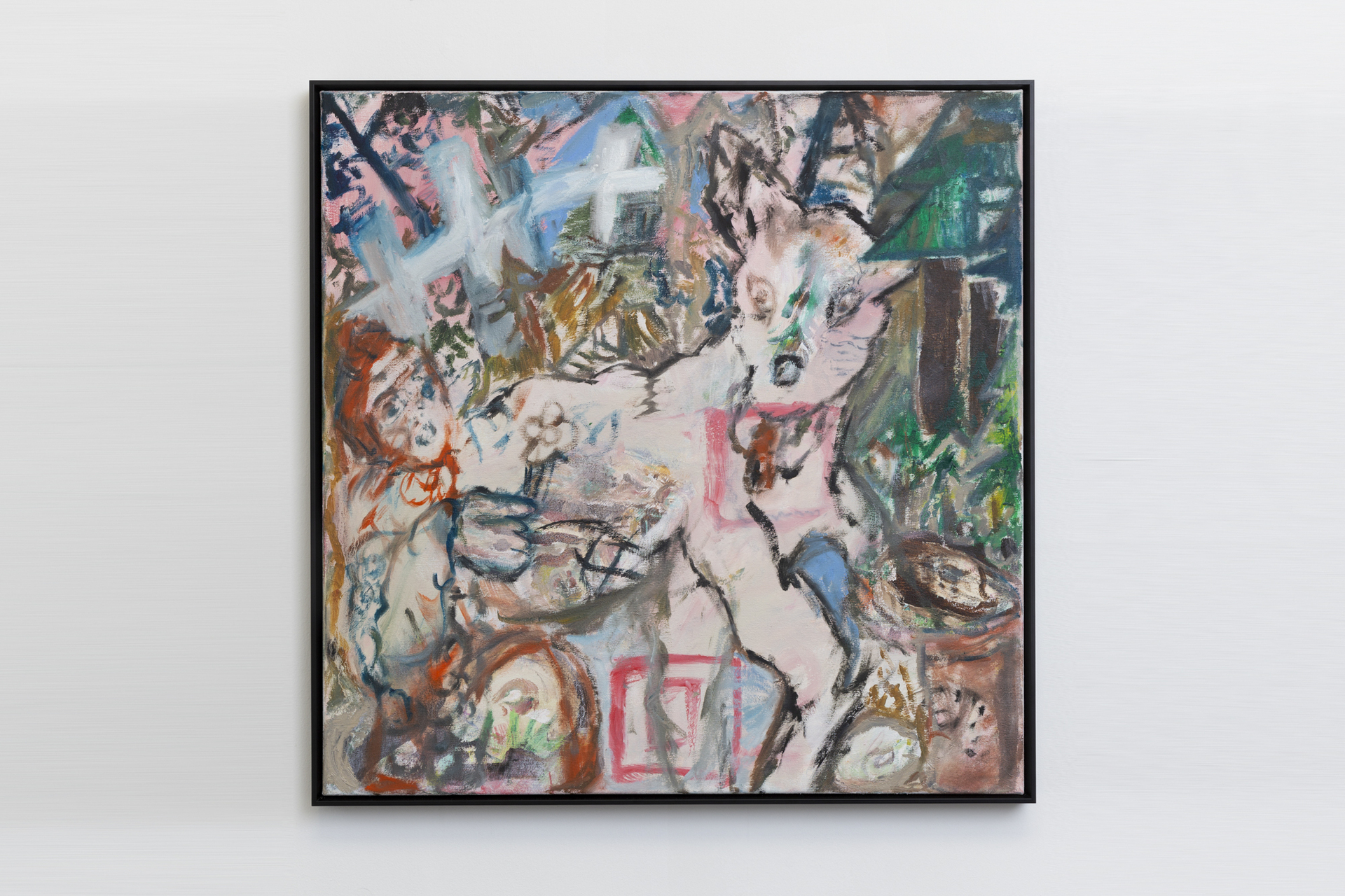 Isadora Vogt’s paintings combine different narratives, mashing up and deconstructing seemingly familiar motifs. This deconstruction lets the viewer glimpse friendly faces and figures smothered in a synergy of merging layers of subjects, objects and gestures.