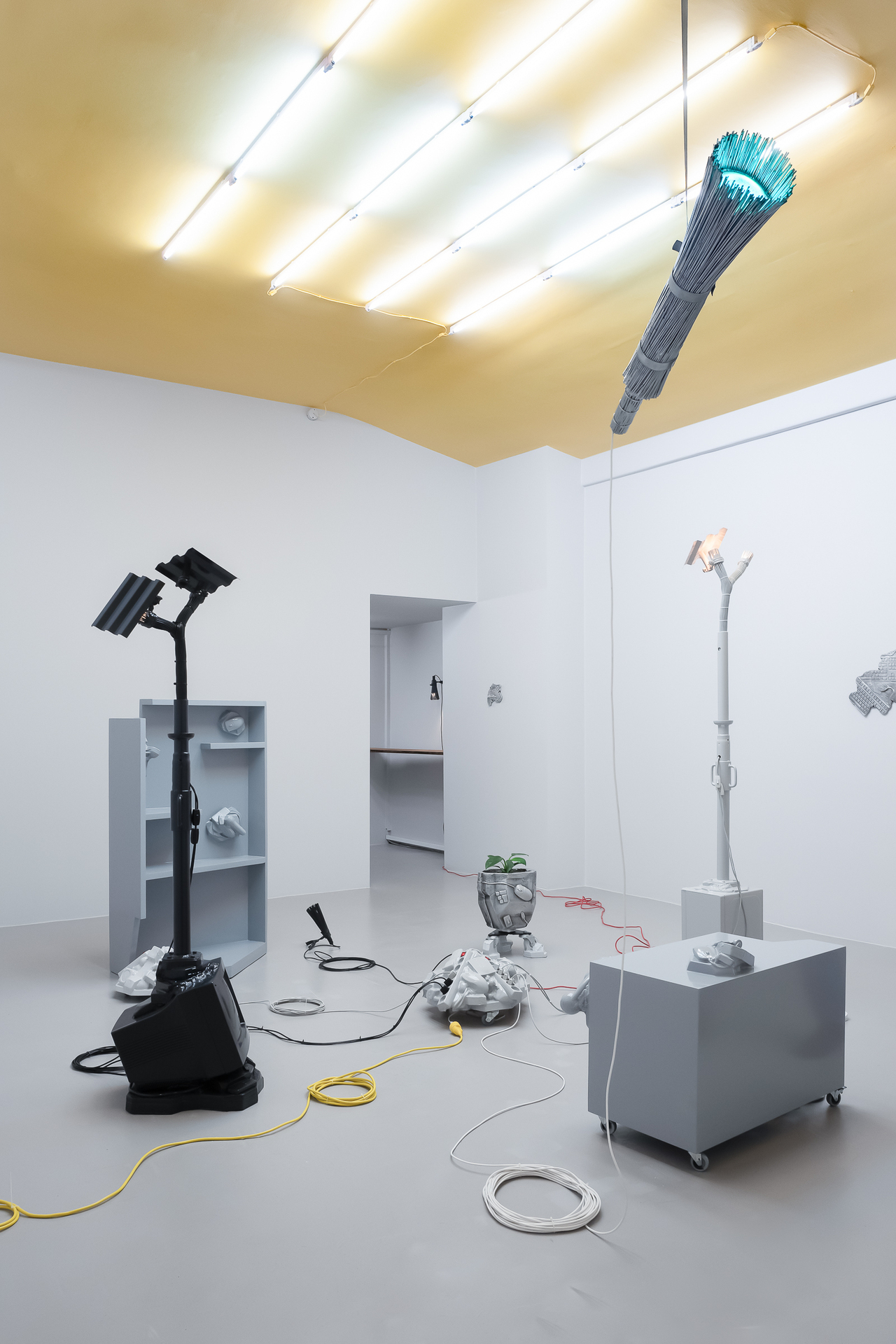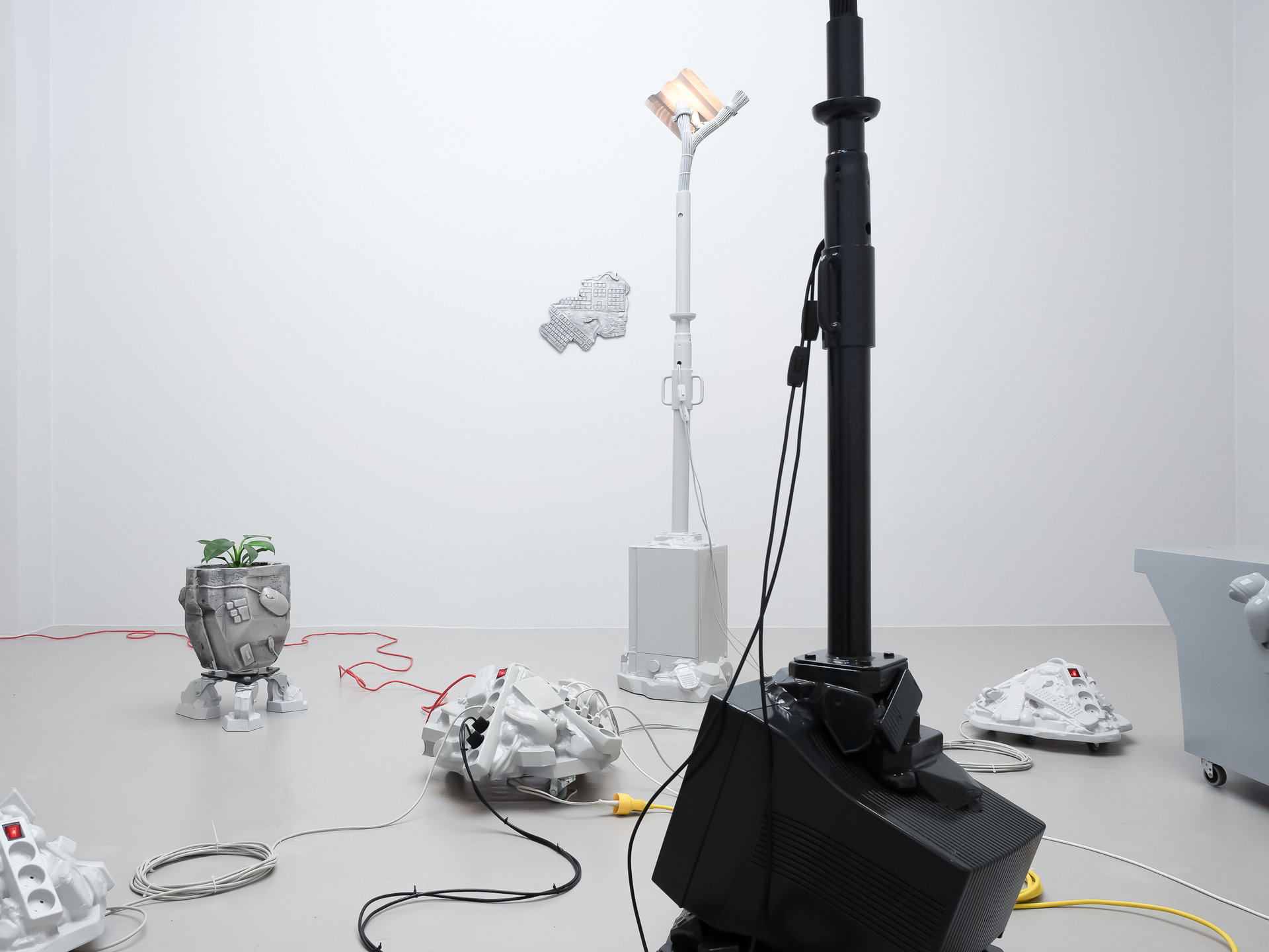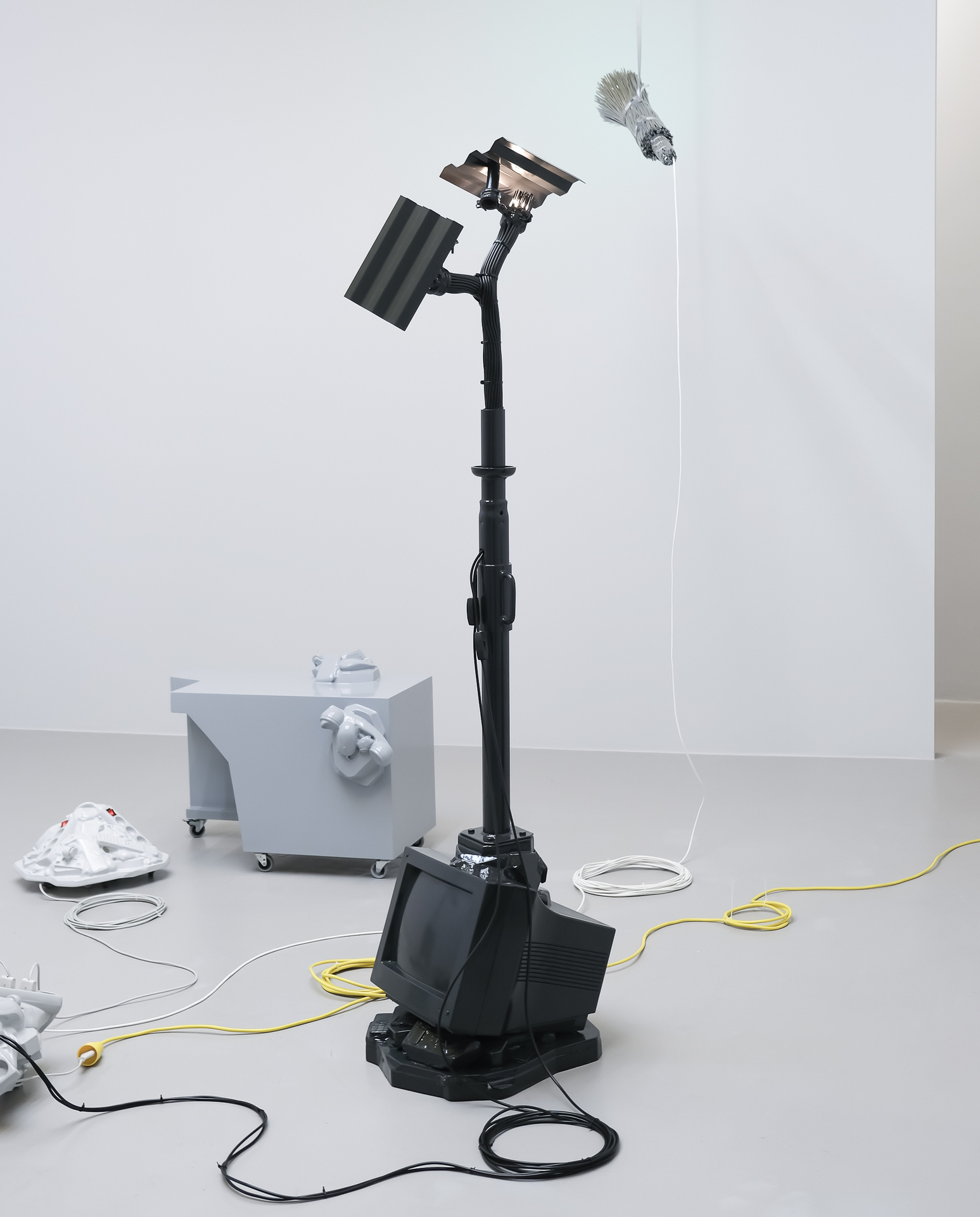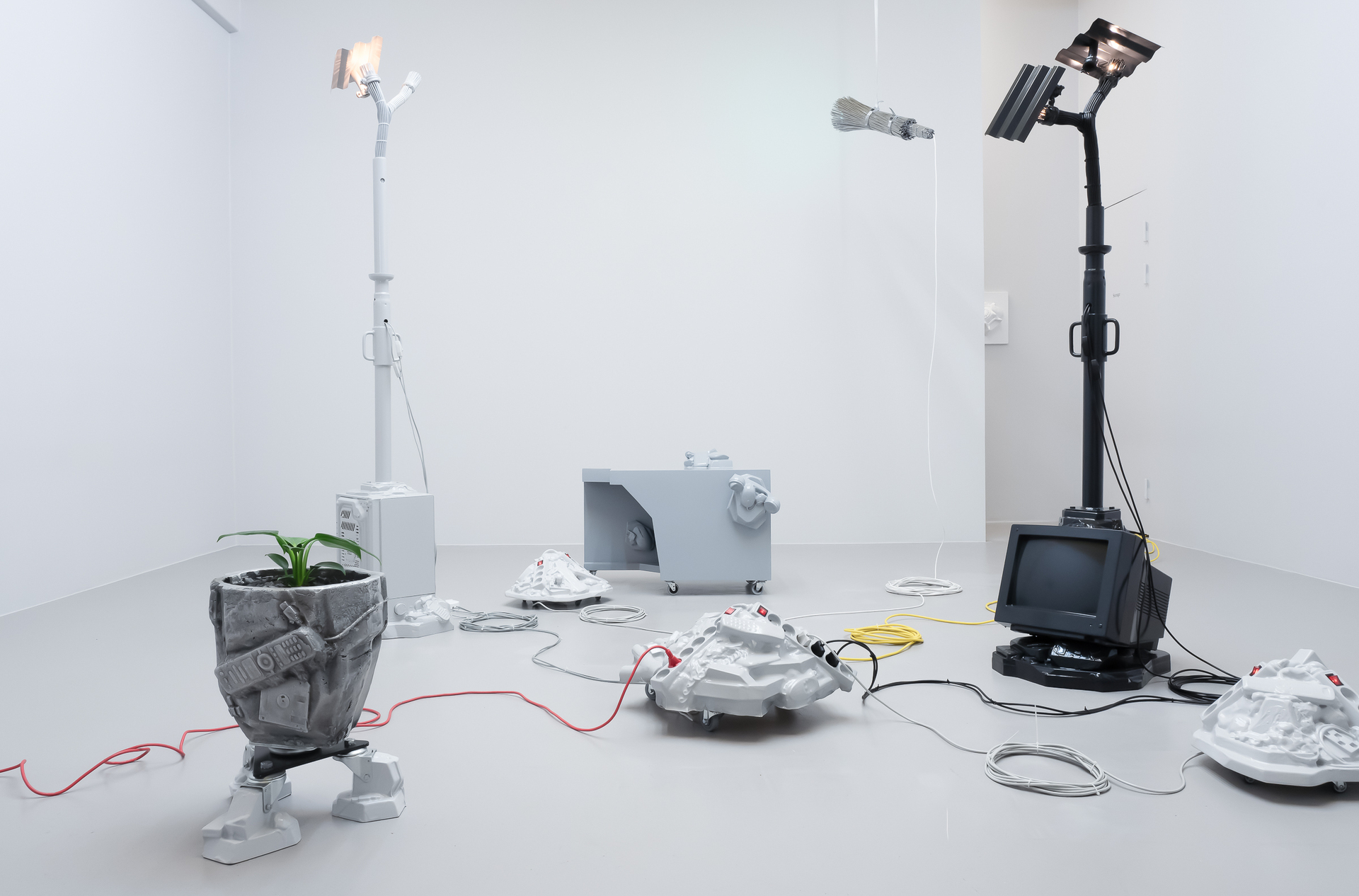 The exhibition consists of a number of sculptural, yet functional objects which incorporate a number of defunct electrical appliances and other industrial products which in this use, hopefully, obtains eternal life by being part of the works on display.
