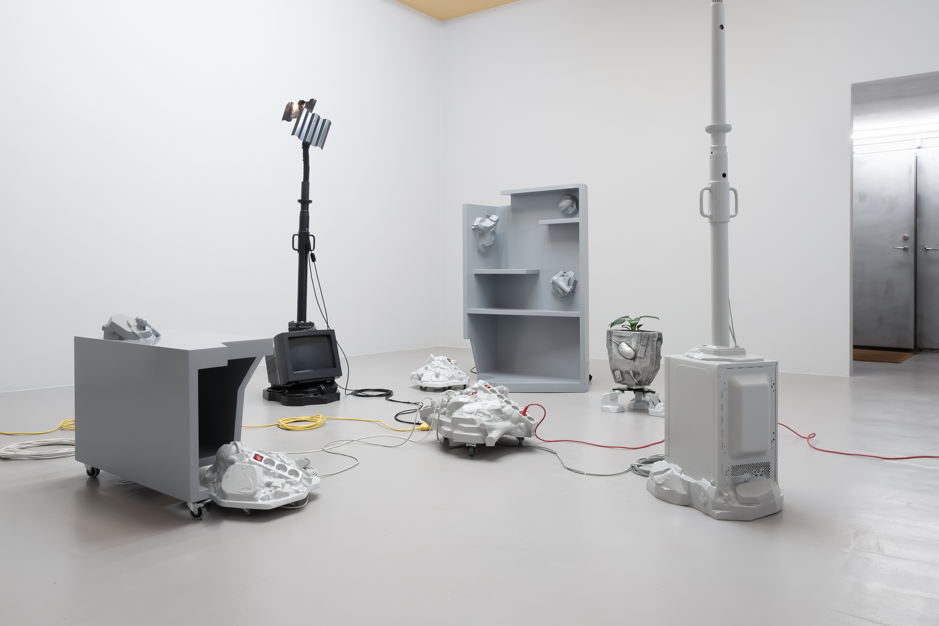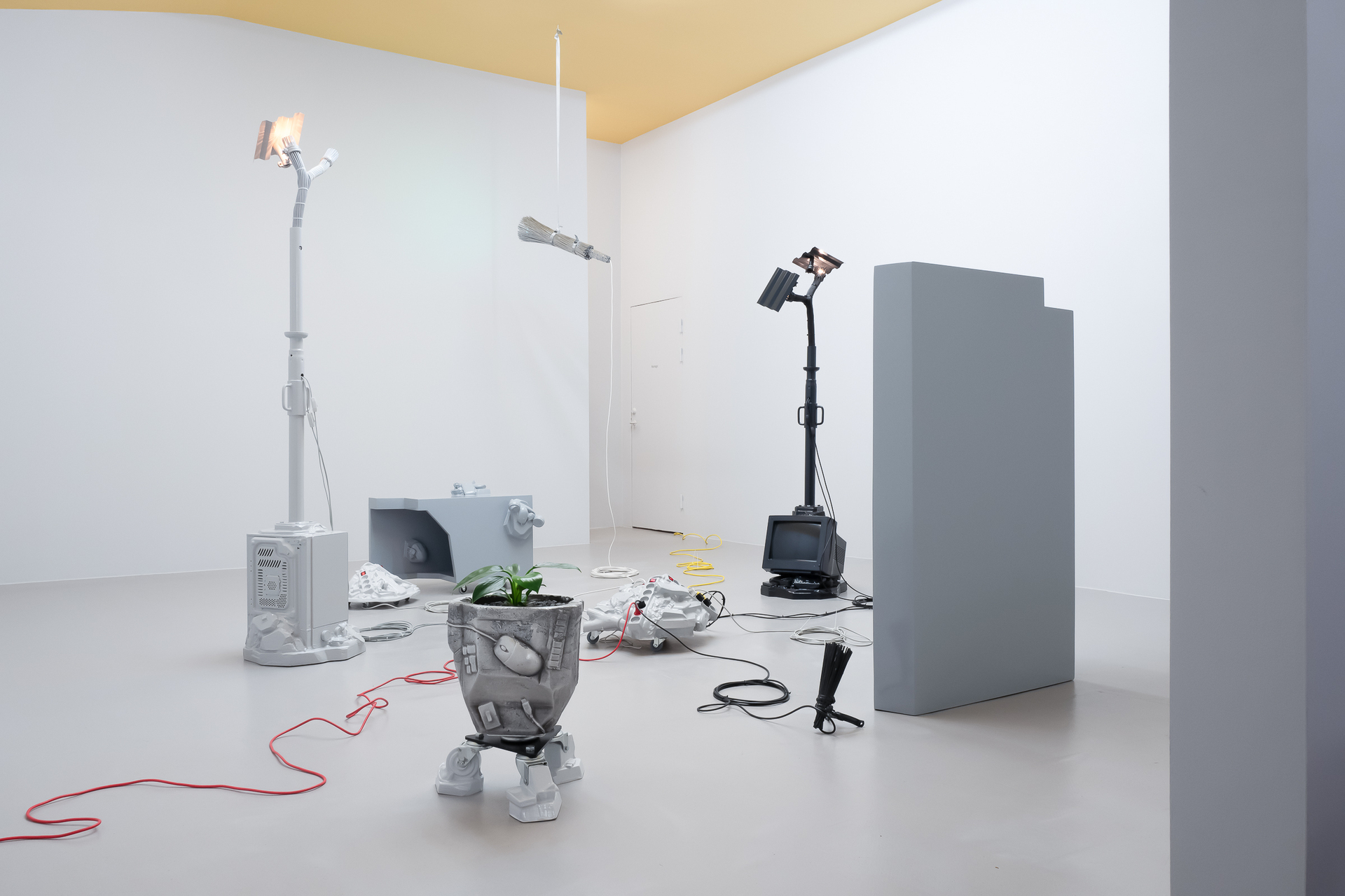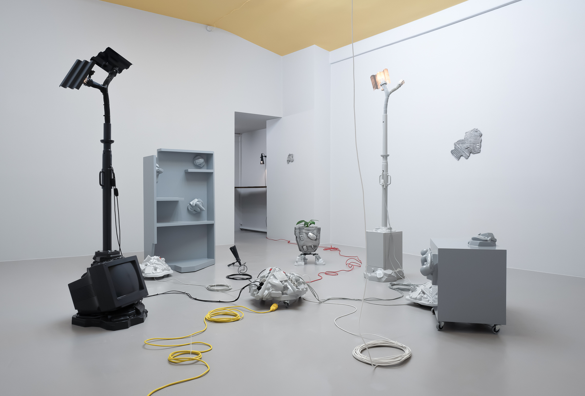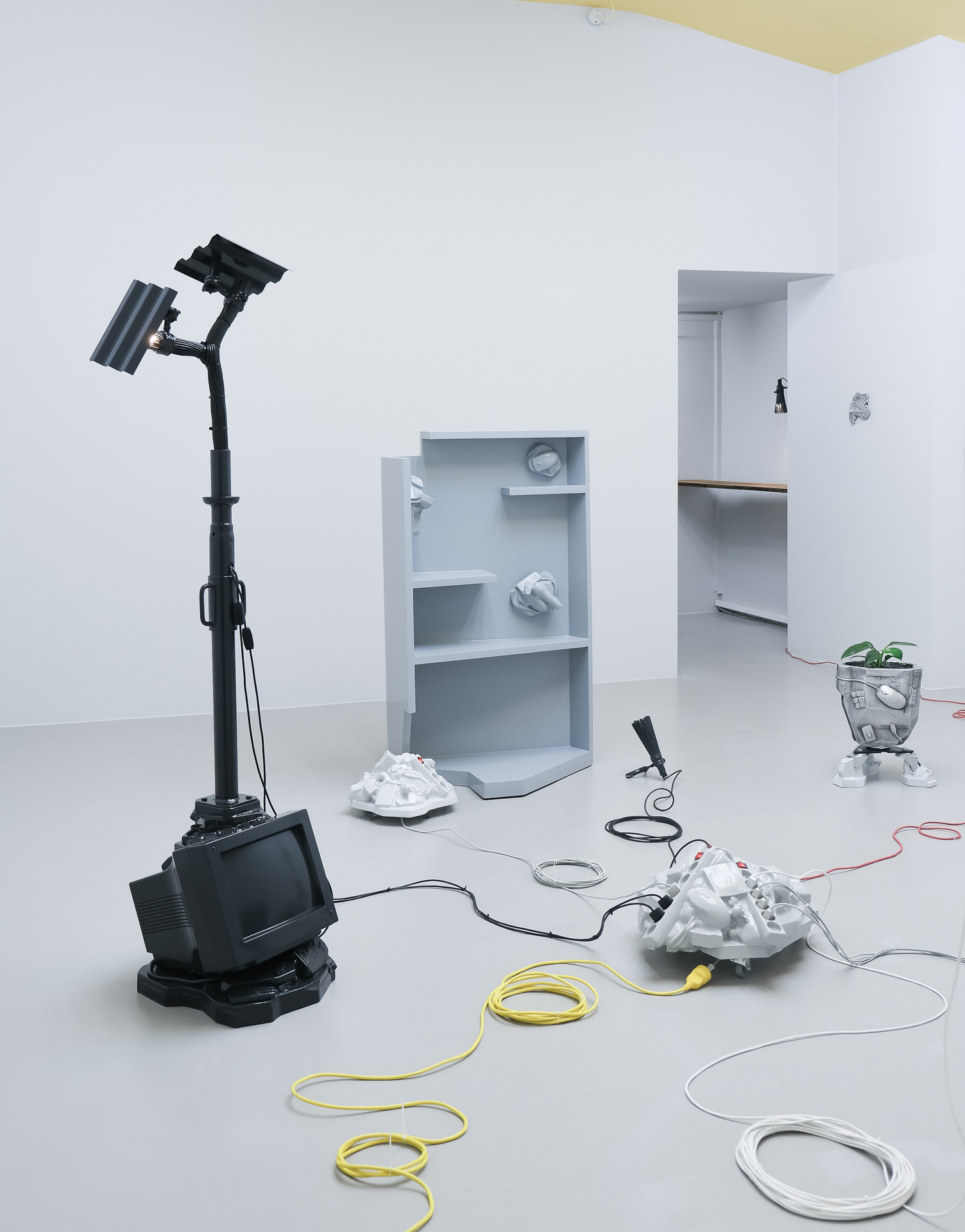 The exhibition consists of a number of sculptural, yet functional objects which incorporate a number of defunct electrical appliances and other industrial products which in this use, hopefully, obtains eternal life by being part of the works on display.