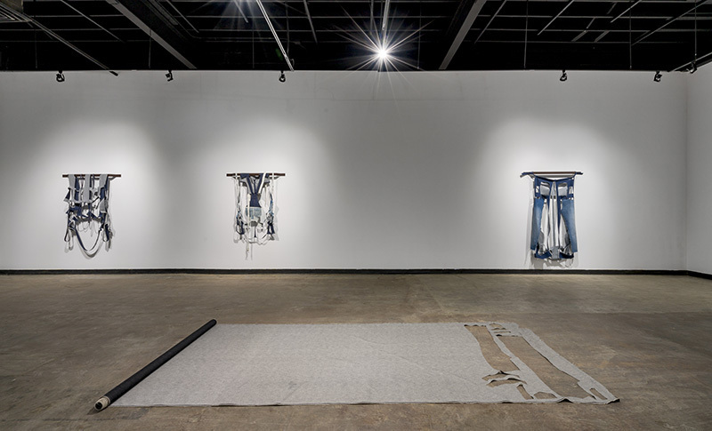 Kraven’s specific use of denim creates a connection to Edmonton’s famous Great West Garment company, and the history of denim as a rugged utilitarian fabric worn by workers. At this moment in time, it is the role of the often overlooked and under-appreciated workers whose essential labour is finally being recognized and understood.