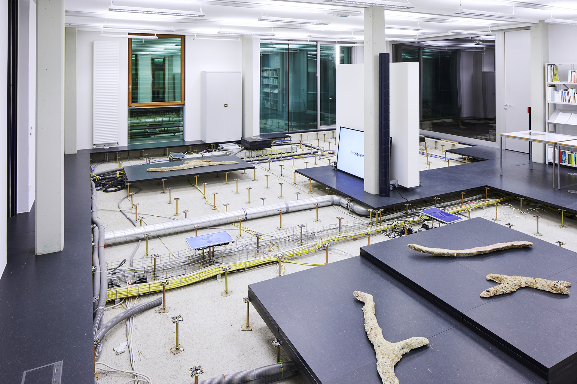 Latent Soils is an attempt to chart “the potential of practices based on sensory experience”, notes Katrin Hornek. The objective is not only to “rationalize the emerging archives of the Anthropocene” but to create formats that enable recipients “to imagine, feel, and connect with them”. The artist strives to “lend this rather inaccessible, complex, and everchanging artificial urban soil a body”. This spatiotemporal entity manifests in the reception of the Latent Soils exhibition, whose individual sections grant different access points and approaches.