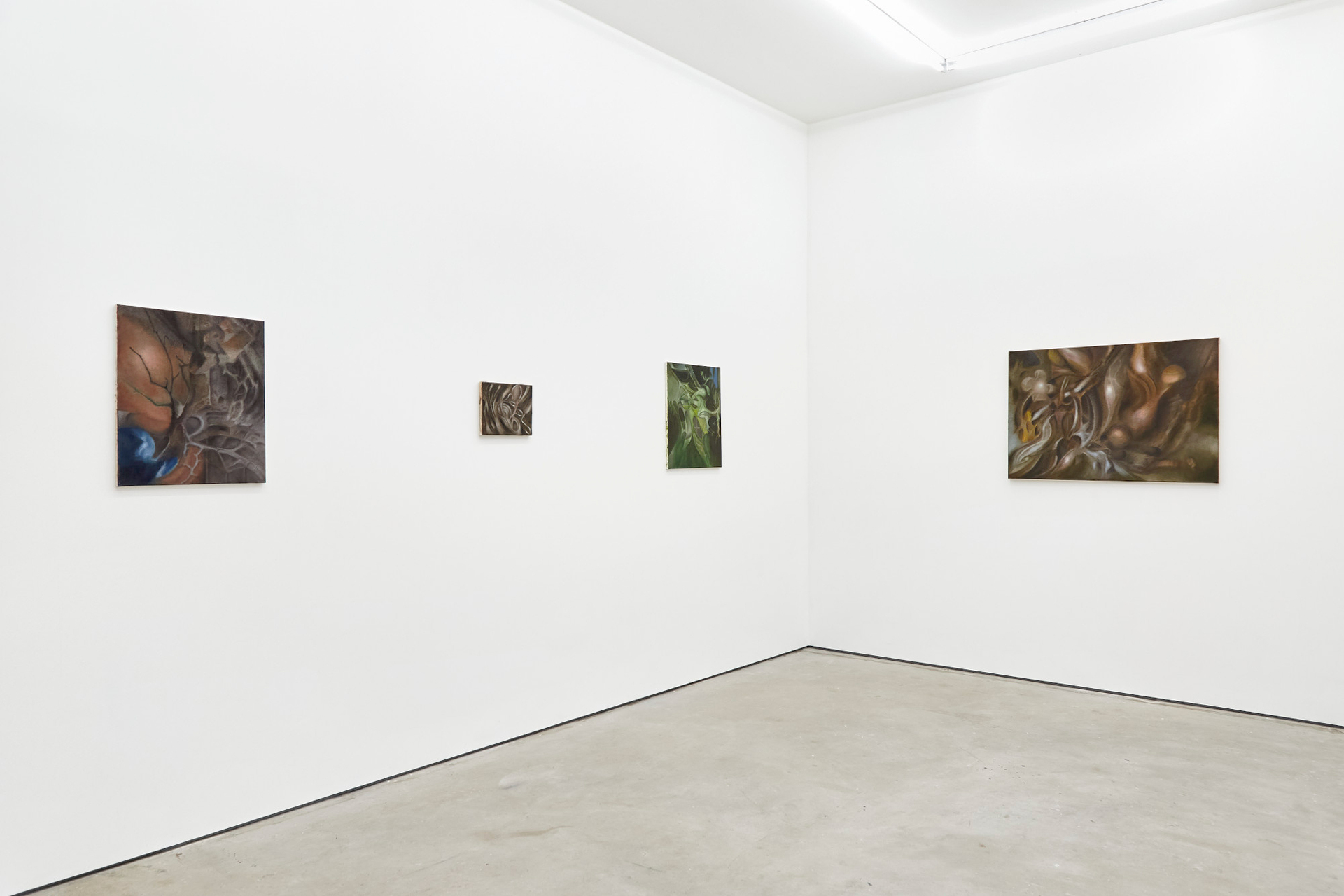 Situated between imagination and reality, Li creates evolving organic and inorganic structures that suggest both the microscopic and the astronomical. Li’s paintings synthesise departure points from daily life which range from observations of nature to literature and architecture. The dry and grainy accumulation of paint with which Li likes to work, creates a viscosity and friction that elicits new and unexpected forms. The protean renderings which shift and flow, make size and location uncertain and destabilise interpretation. By working on more than one canvas at a time, these magnified or reduced creations may be the interior or exterior of other paintings. The titles of each work reflect and dilate the space in which Li creates his work.
