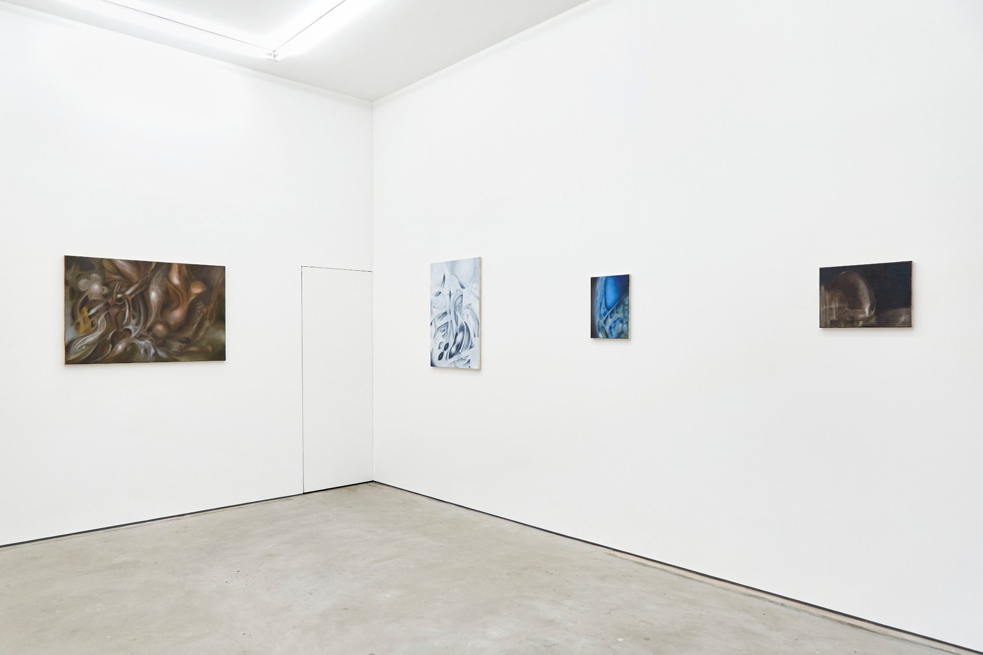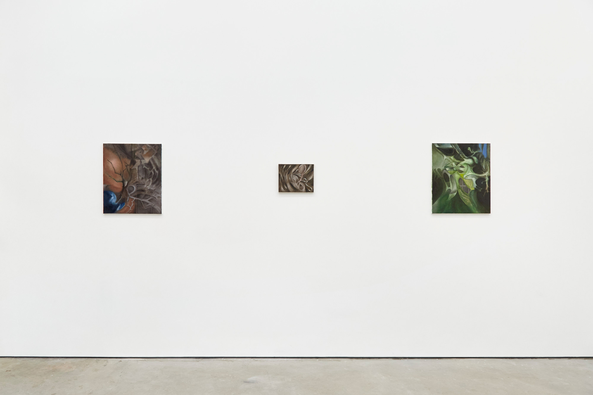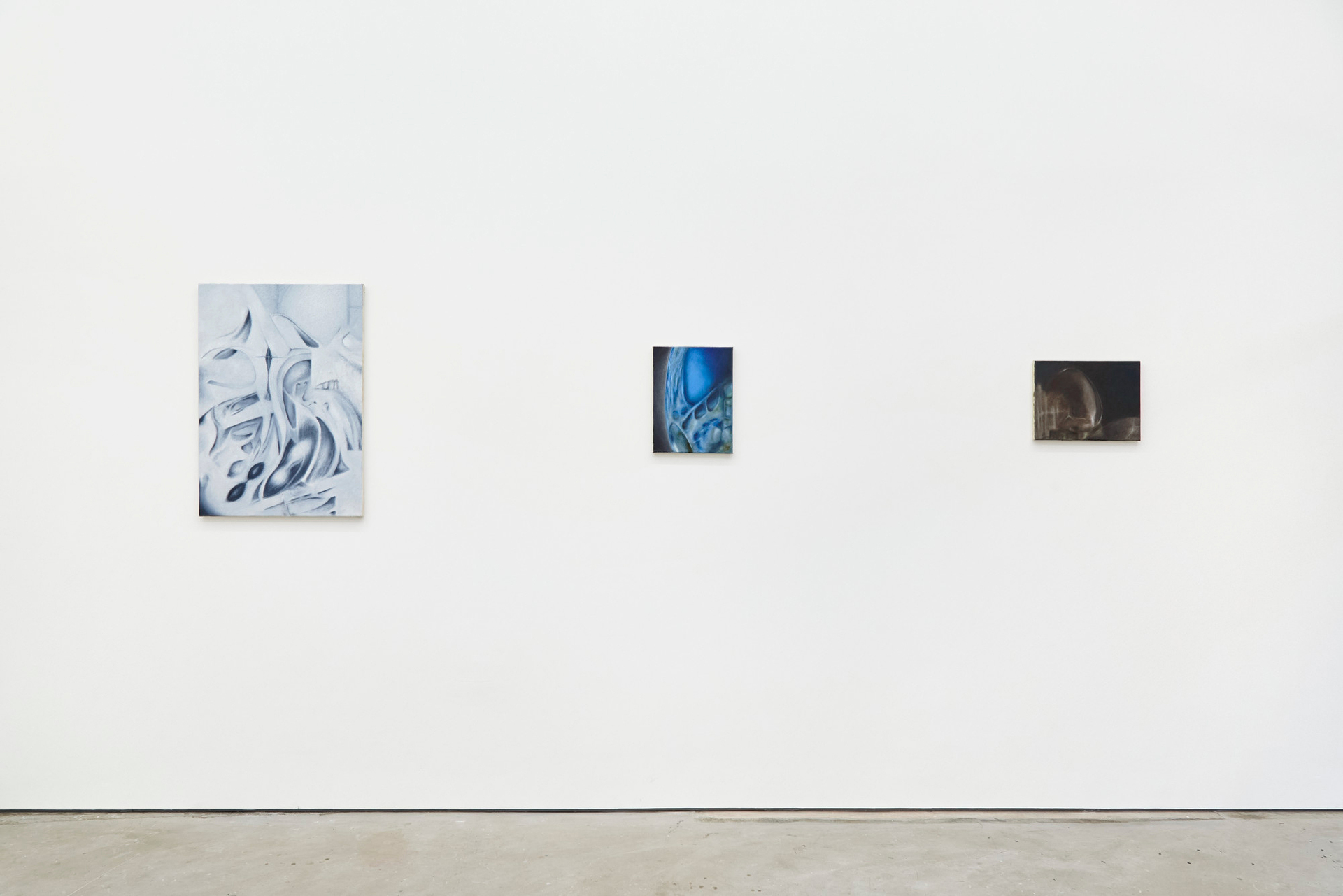 South Parade is pleased to present the first solo exhibition of Hong Kong born, London based artist, Kin-ting Li. Situated between imagination and reality, Li creates evolving organic and inorganic structures that suggest both the microscopic and the astronomical. Li’s paintings synthesise departure points from daily life which range from observations of nature to literature and architecture. The dry and grainy accumulation of paint with which Li likes to work, creates a viscosity and friction that elicits new and unexpected forms. The protean renderings which shift and flow, make size and location uncertain and destabilise interpretation. By working on more than one canvas at a time, these magnified or reduced creations may be the interior or exterior of other paintings. The titles of each work reflect and dilate the space in which Li creates his work. Kin-ting Li (b.1991, Hong Kong) lives and works in London and graduated from The Slade School of Fine Art (2019). Recent group exhibitions include Sky-blue and green, VO Curations (London, 2020) and Just as when the night, Light Eye Mind (London, 2019).Text