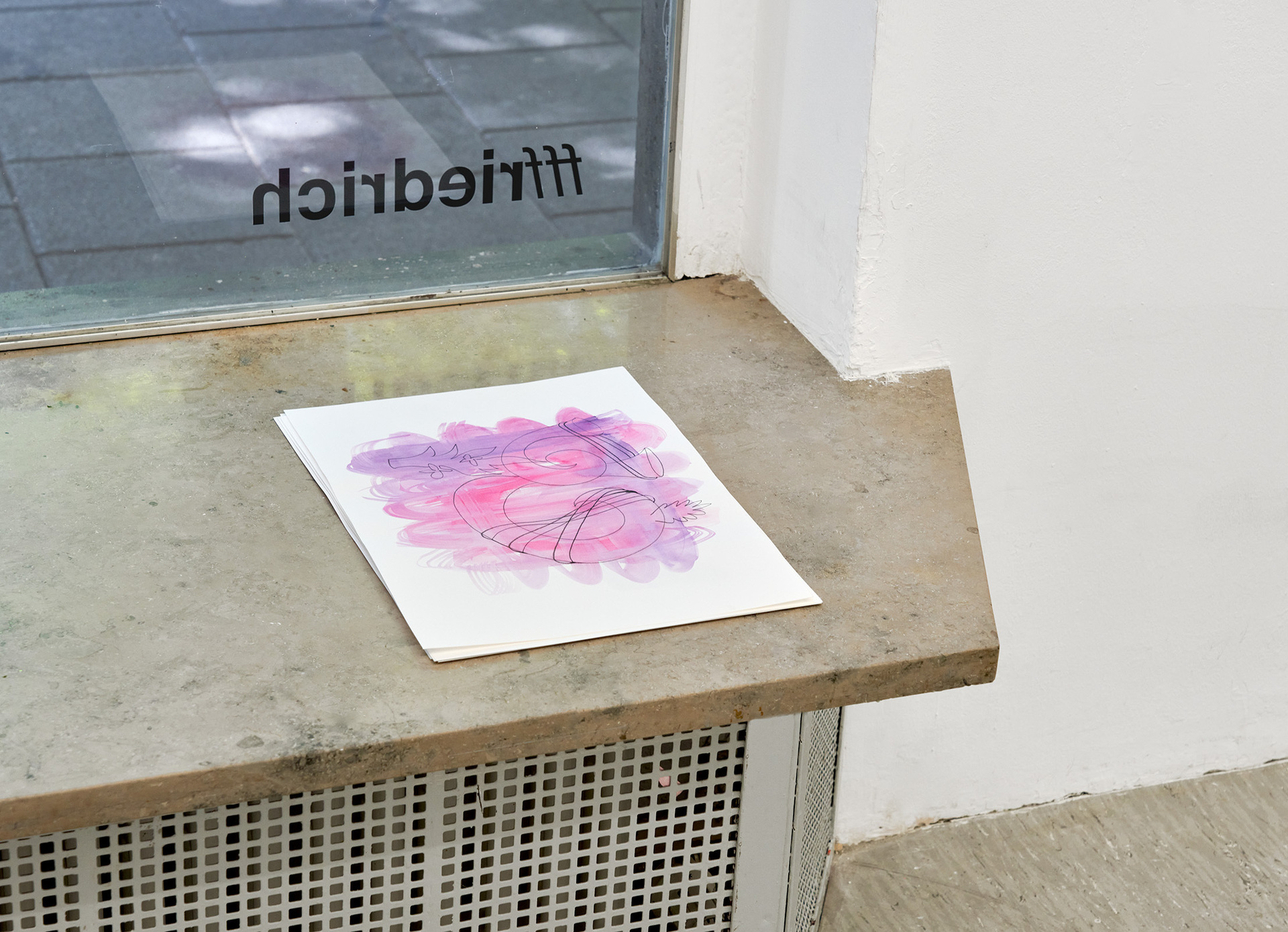 In her practice, Elisaveta Braslavskaja combines materials and techniques from seemingly diverging contexts. Ornamental embroideries, formally inspired by Persian carpet art and miniature painting, interweave two-dimensional layers to sculptural objects. By over-blending the coarse grid structure of prints - sometimes adding hand drawings - and then piercing them with coloured thread, printing technique, sketch and hand embroidery fusion in a new form. The underlying structure of the grid created by the print becomes the point of connection to the cited textile practices, where comparably screened fabric often forms the carrier. Yet, the manually produced embroideries diametrically oppose the reproduction strategies of the industrial printing techniques used. Like gestural marks, they trace the artists’ presence and indicate a specific current state, while also reflecting on entangled histories.