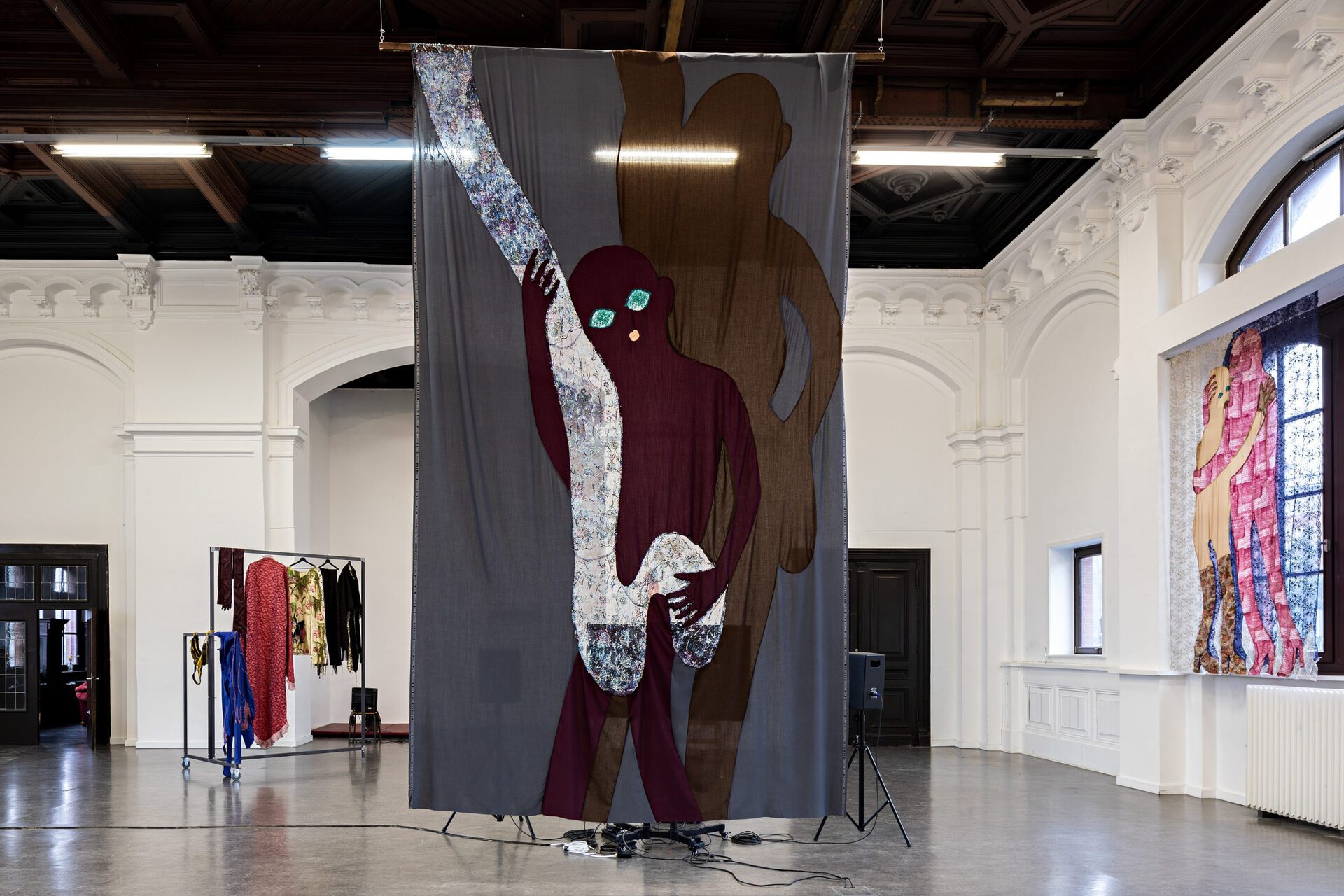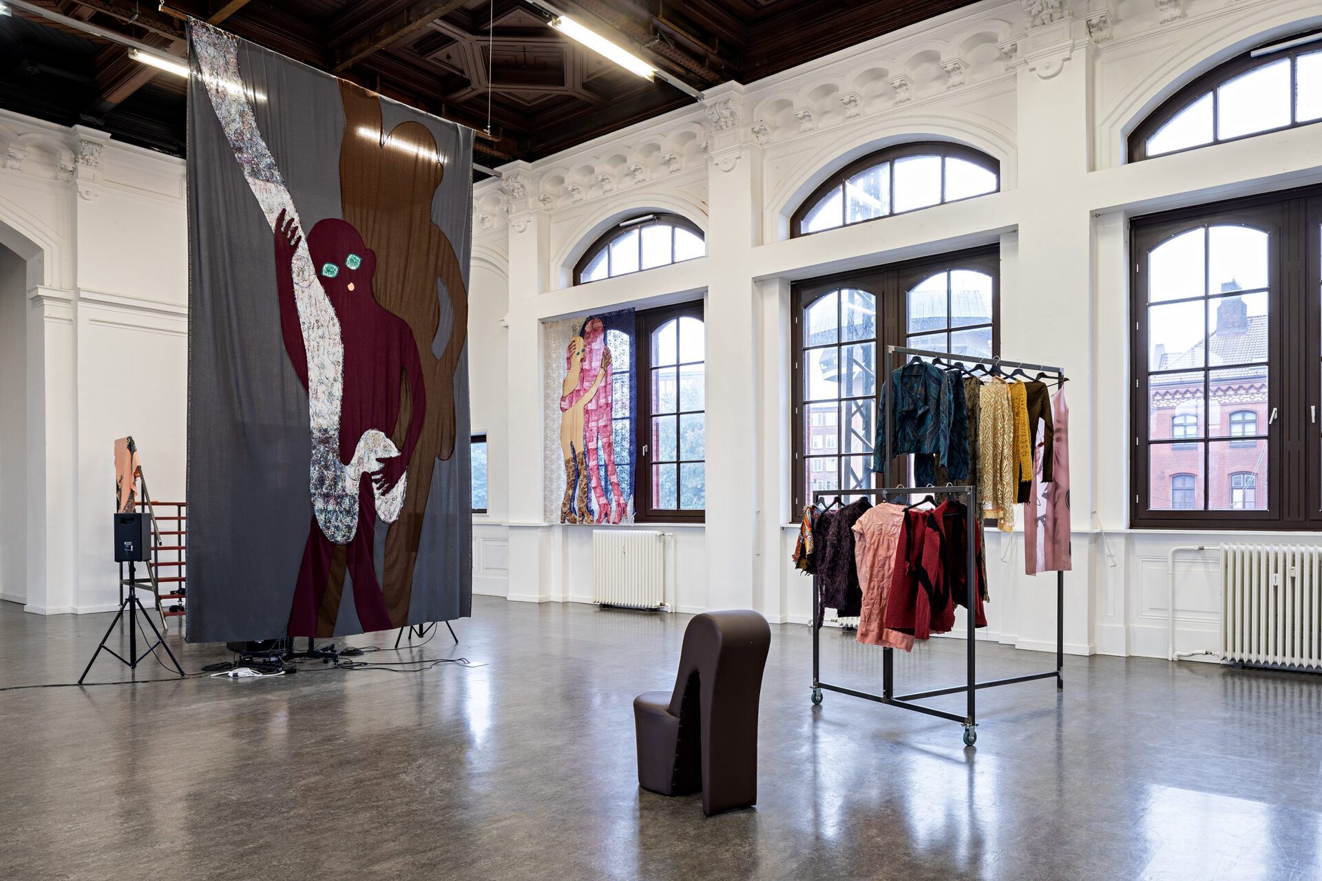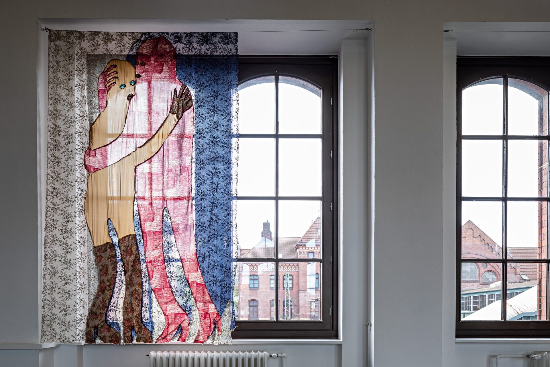 The exhibition is complemented by two earlier video works. Large-scale textile works made from patchwork complete the scenery. They show characters and scenes from Christensen's artistic universe - excerpted and allusive.