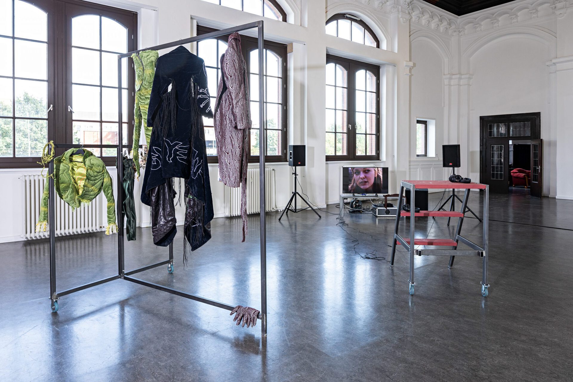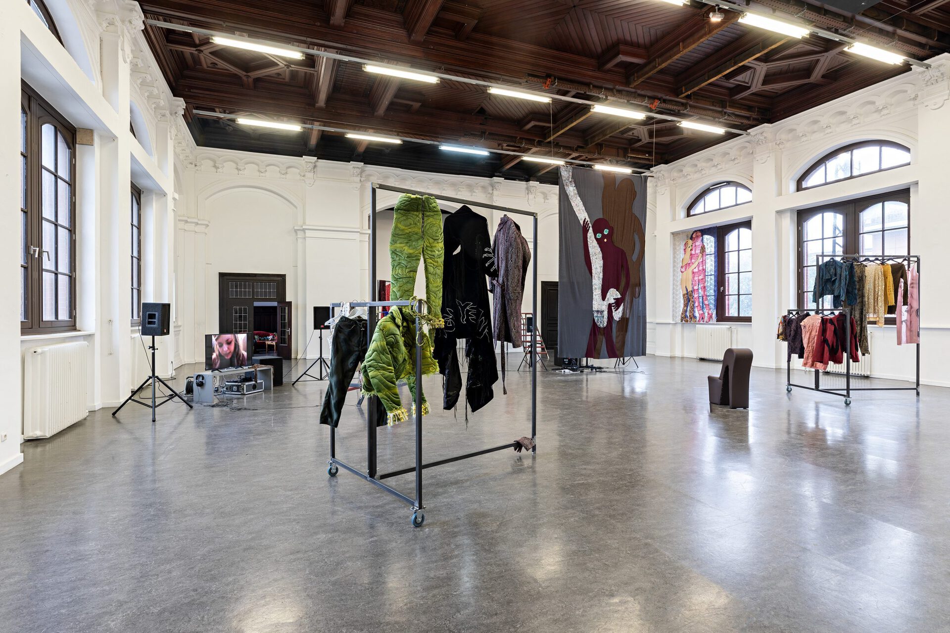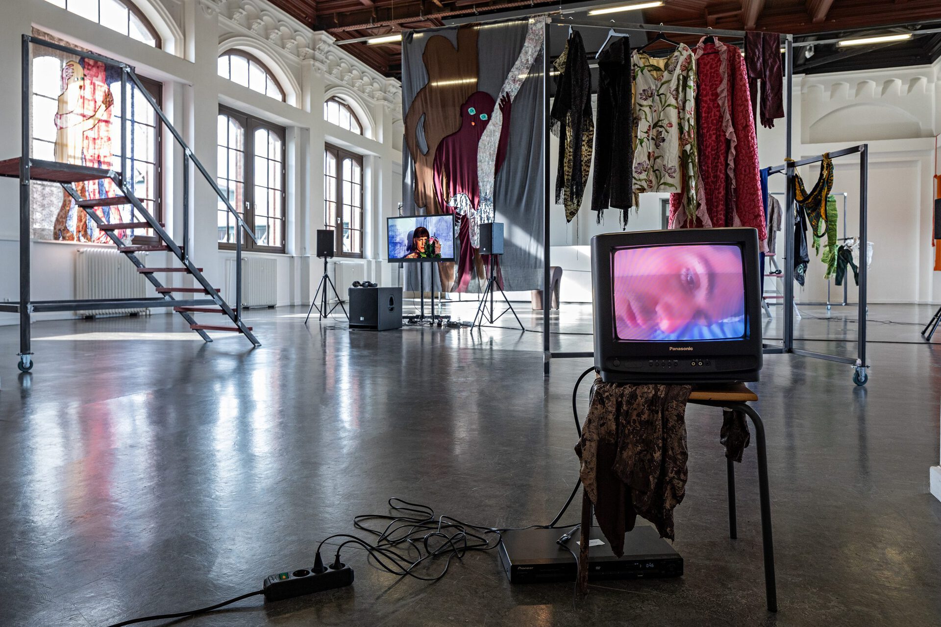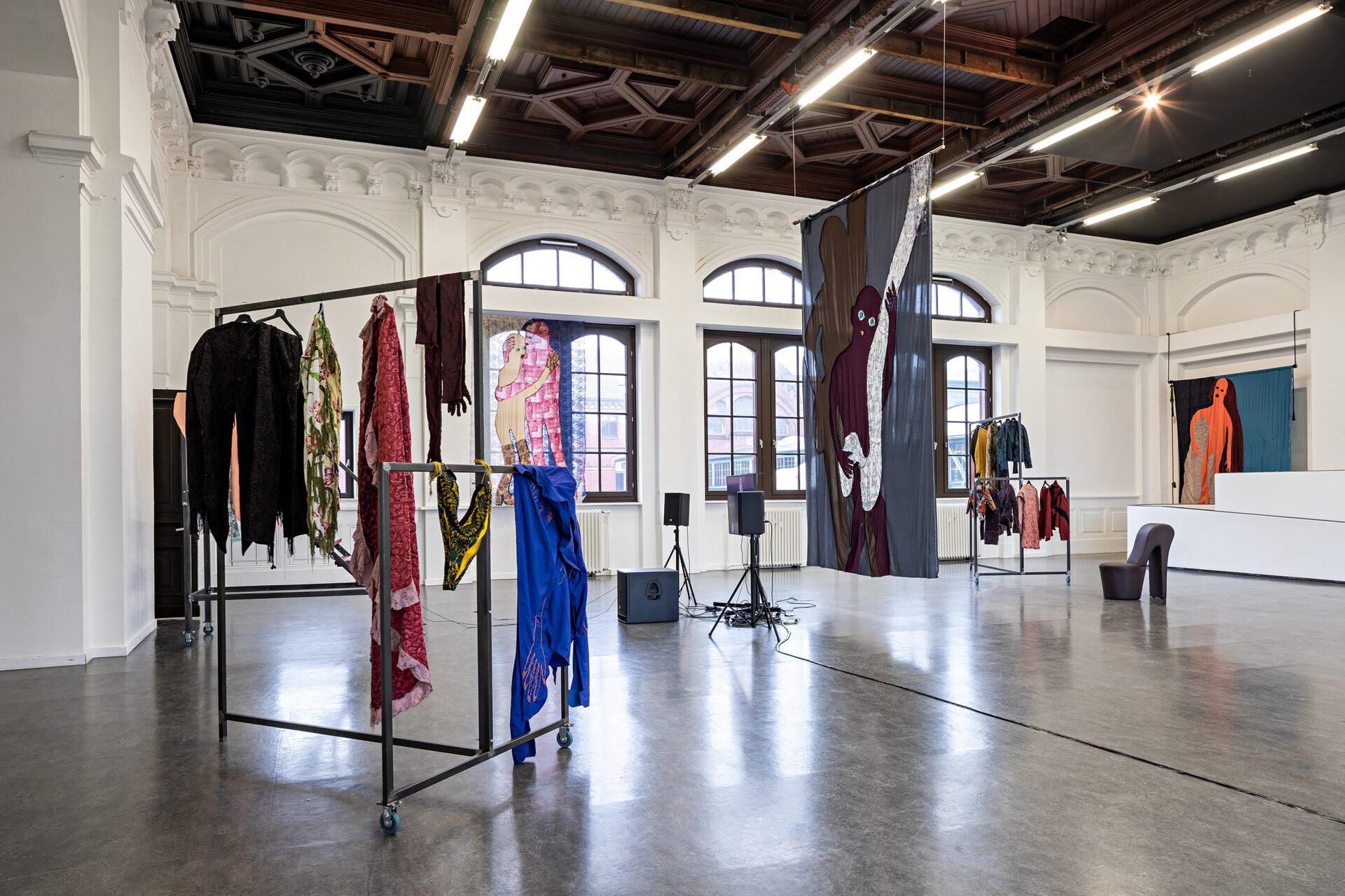 The exhibition is complemented by two earlier video works. Large-scale textile works made from patchwork complete the scenery. They show characters and scenes from Christensen's artistic universe - excerpted and allusive.