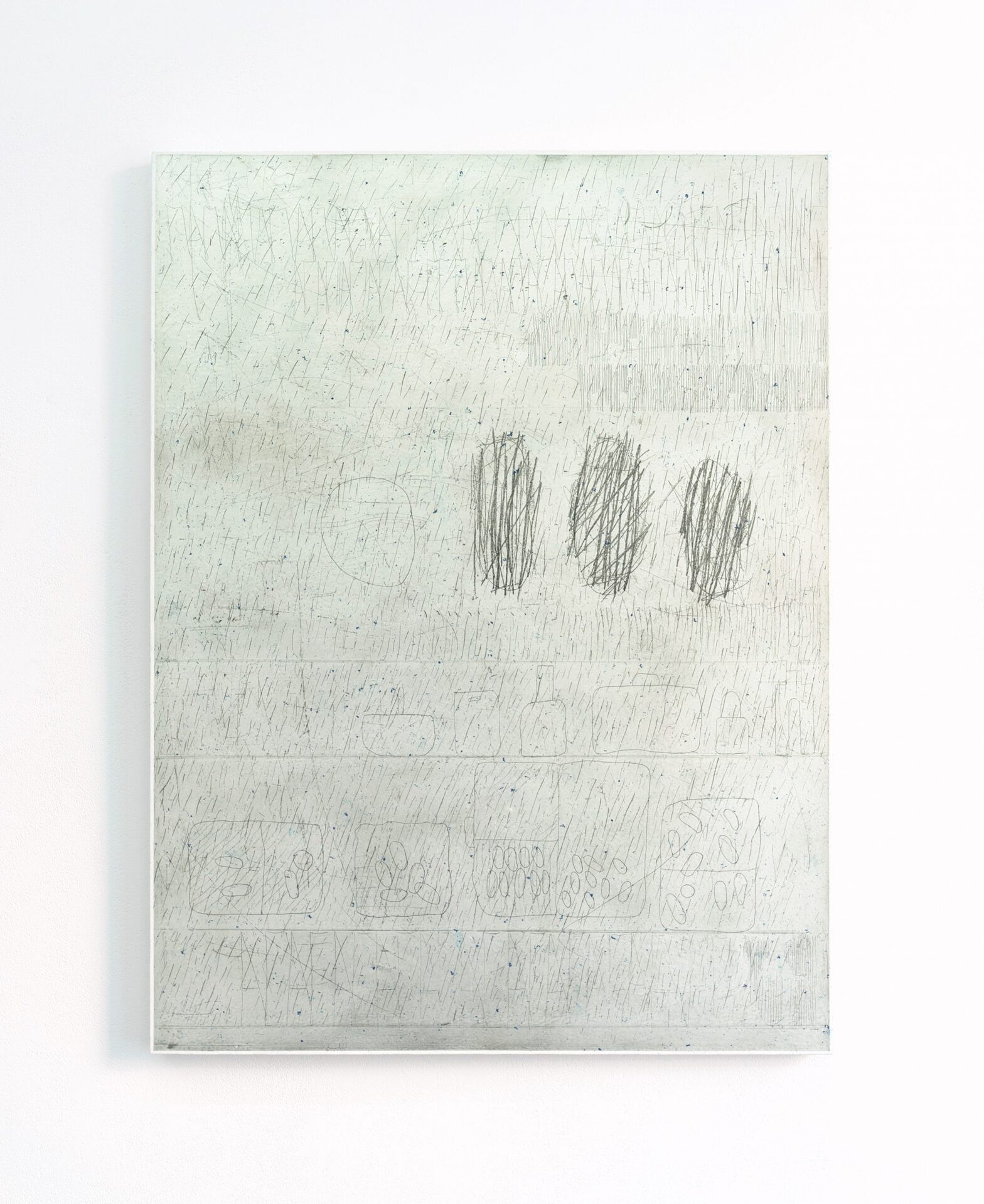 a layer of paint on canvas. Schwark’s new paintings remind us of fieldwork sketches, mere