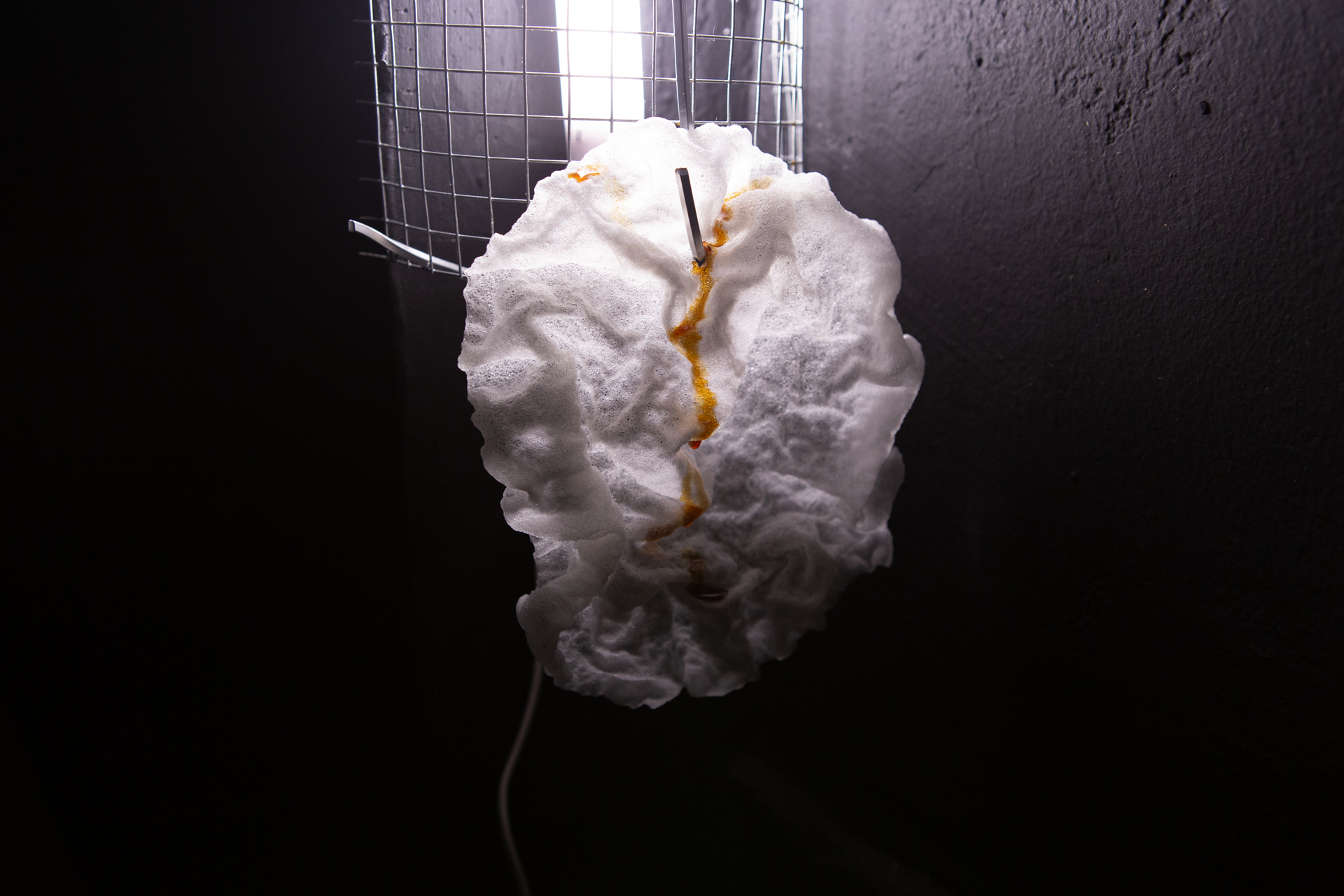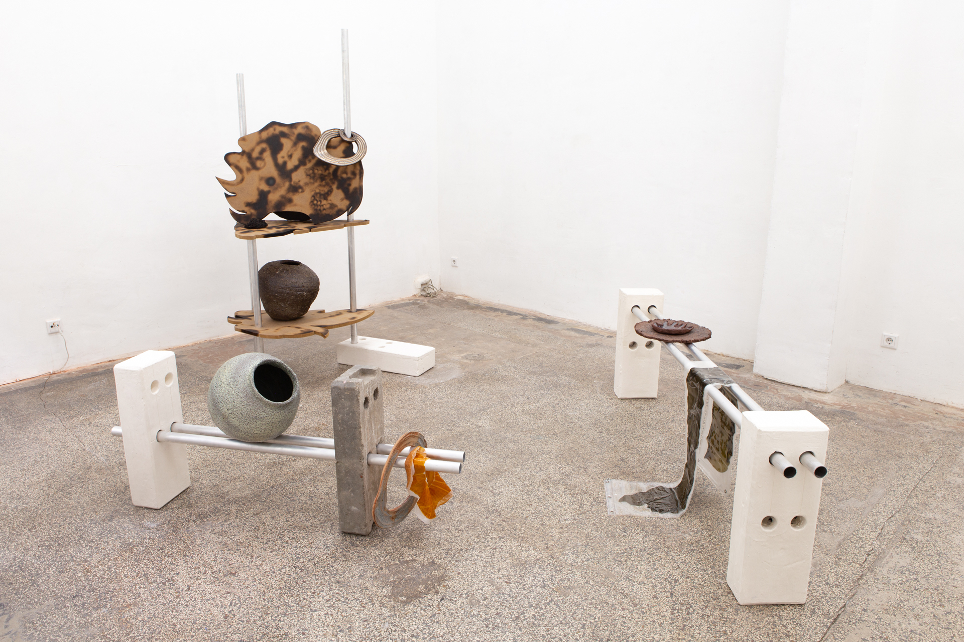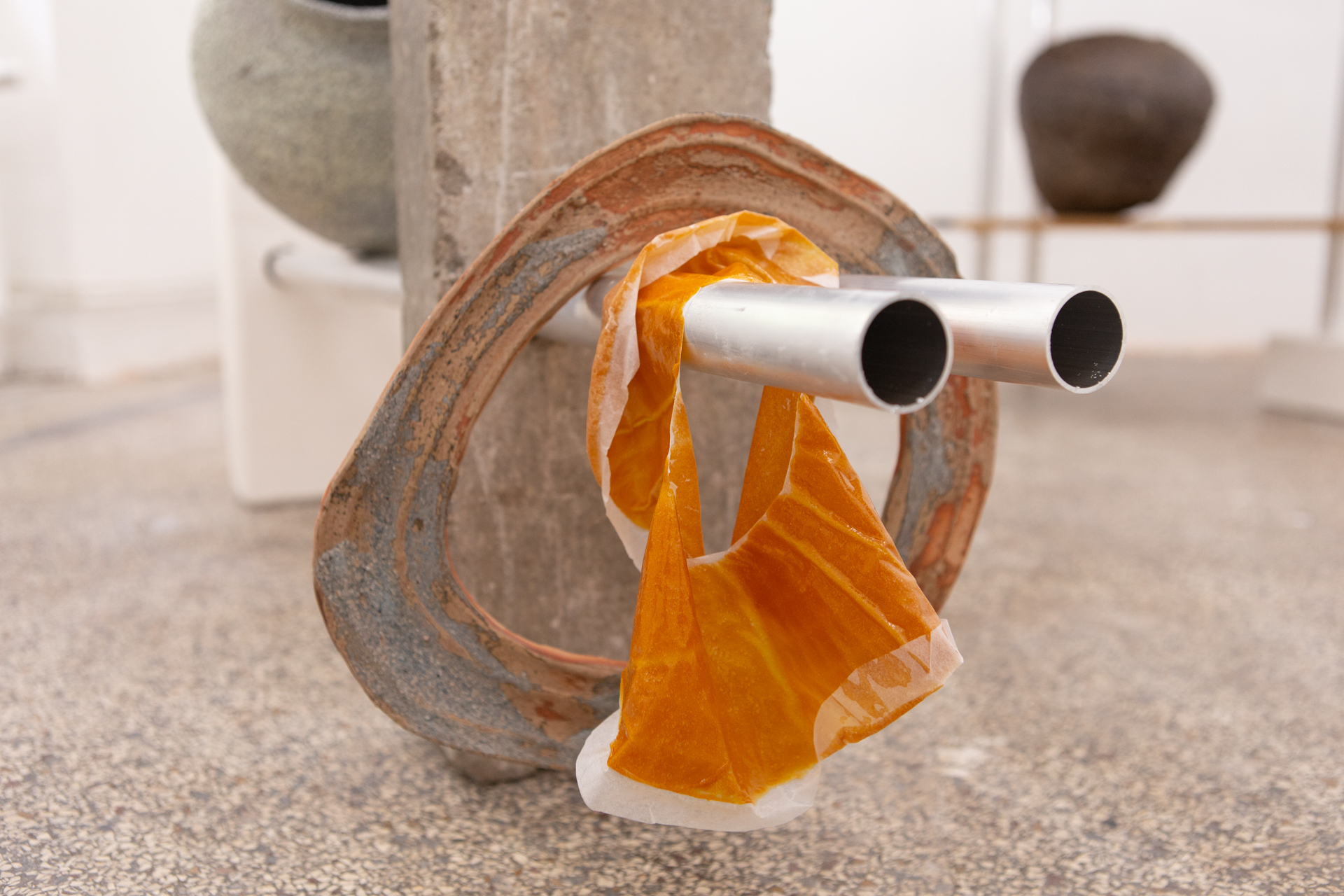 The 3 Viennese artists William Knaack, Steffi Parlow and Daniel Stuhlpfarrer develop a common working method, in which their approaches of fine art, design, ceramics and gastronomy are joined. A special devotion to materials is evident in their investigation and shaping: Excavated clay, vacuumed porridges, and hanging sugar objects meet each other here.