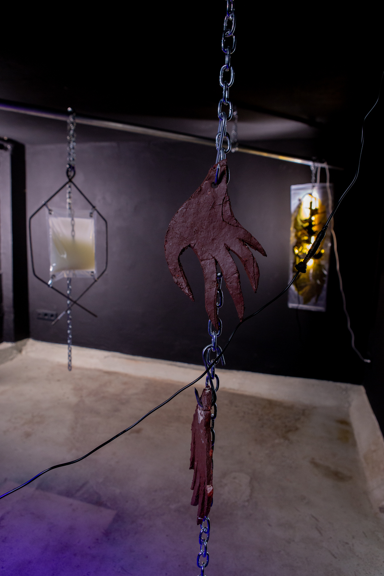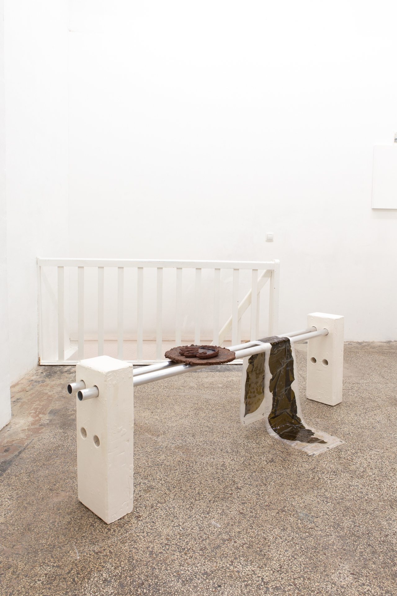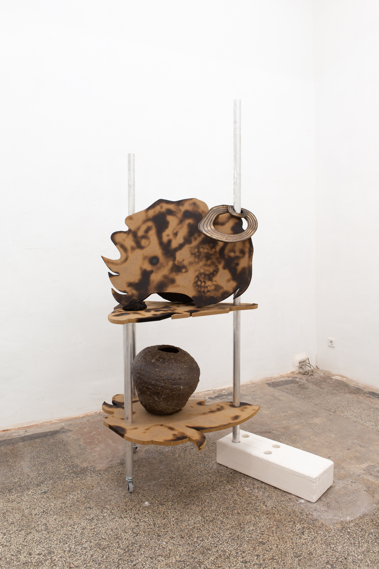 The 3 Viennese artists William Knaack, Steffi Parlow and Daniel Stuhlpfarrer develop a common working method, in which their approaches of fine art, design, ceramics and gastronomy are joined. A special devotion to materials is evident in their investigation and shaping: Excavated clay, vacuumed porridges, and hanging sugar objects meet each other here.