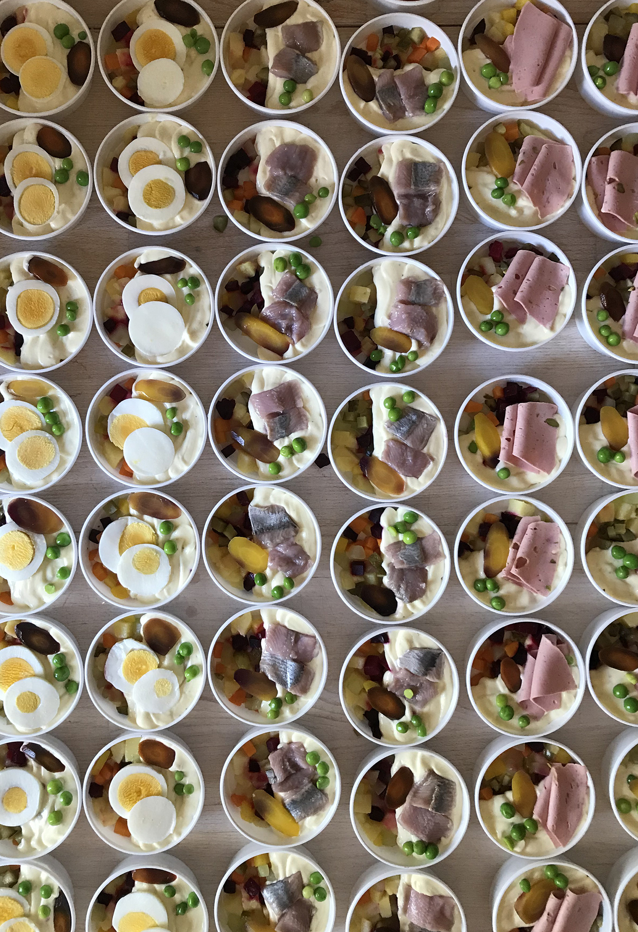 As an edible contribution to the exhibition a Wiener Gabelbissen is served.