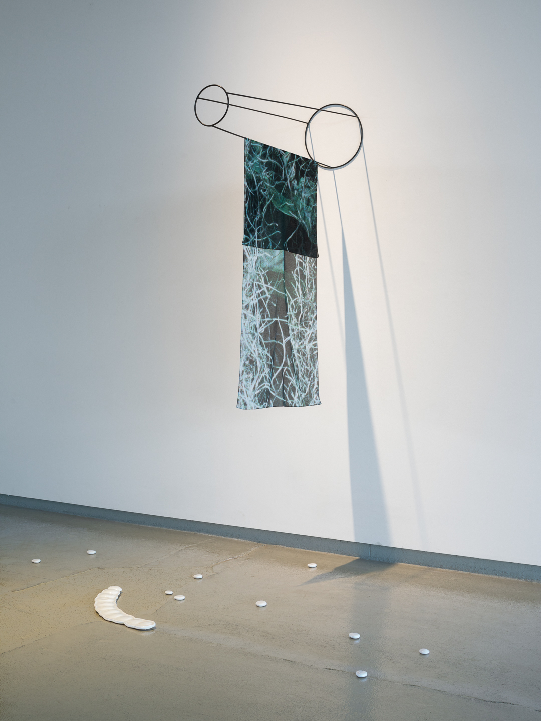 Telles attempts to answer to these questions through both critical and engaged perspective of the archive, looking to tradition and history, and establishing collaborations, like the one she did with (also) Brazilian researcher, educator, and artist, Pedro Oliveira. Abstracting music from speech borrowed from Gloria Anzaldúa and Édouard Glissant, Oliveira transforms dialogues and poetry into sound. Together with Telles’ porcelain sculptures, sound becomes a search for release. Like an exhaled breath: ethereal, dissipating, fluid, silently taking space, carried over through air. And through translating, transposing, transplanting, and transforming, new meanings are formed.