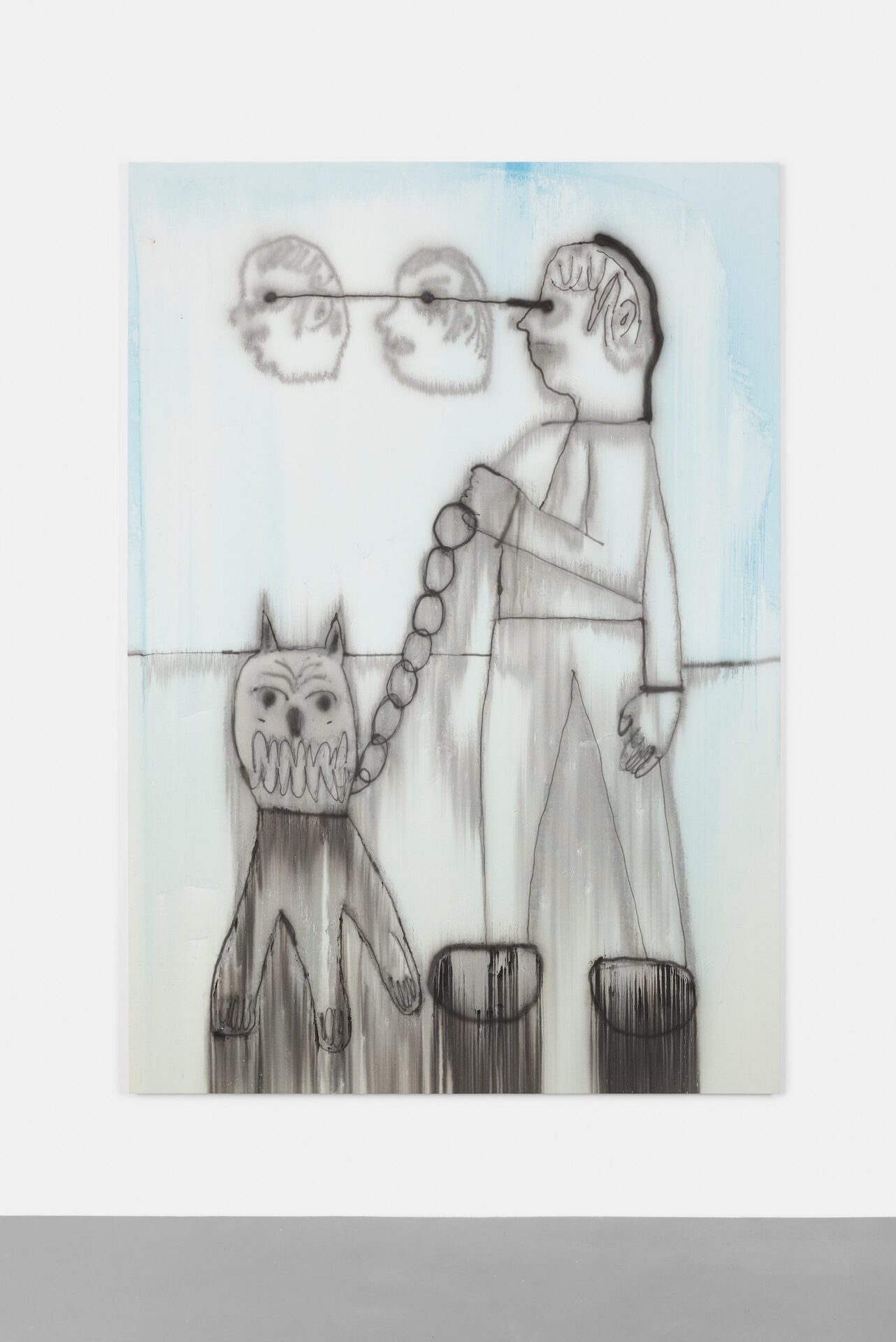 Roberto’s entire production is characterised by at least two distinctive movements. On one hand, there are figures of fantasy: a childlike attitude of disorientation, of stubbornly following a kind of childlike trait that chases after forms, portraits and scenes. On the other, the obsession with the repetition of elements. If we ask ourselves what a childlike trait is, we must think of a game of forced - but still likeable - sympathies. Which means not allowing things to happen, but rather imposing the reality of fantasy, and opening up adventures where it seems there are none - and here, if you want to imagine it, the figure of the horizon can return again. But the fact is that these dogs mostly have one thing in common. They are disproportionate, some too small and others almost deformed, some grotesque and others tender.