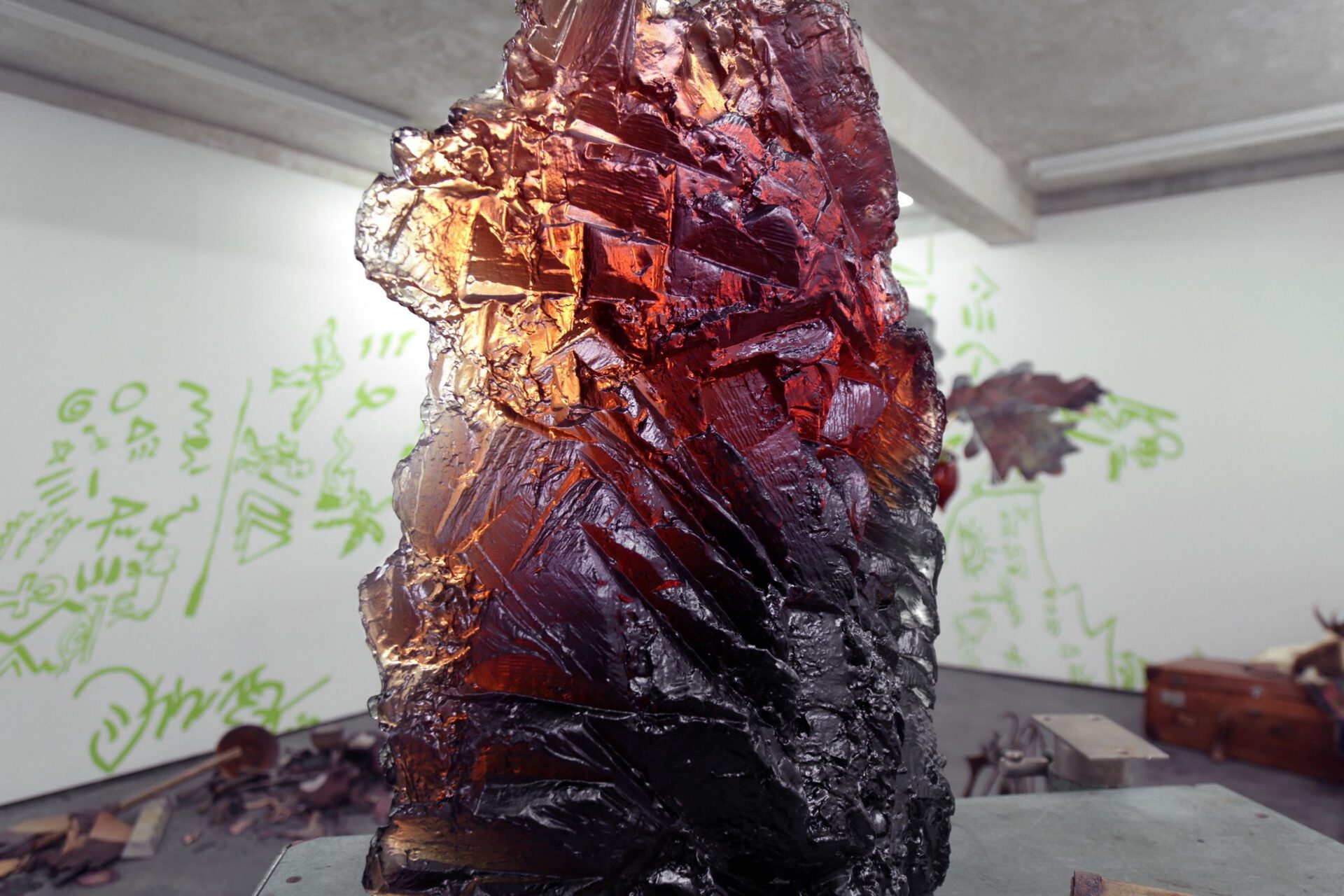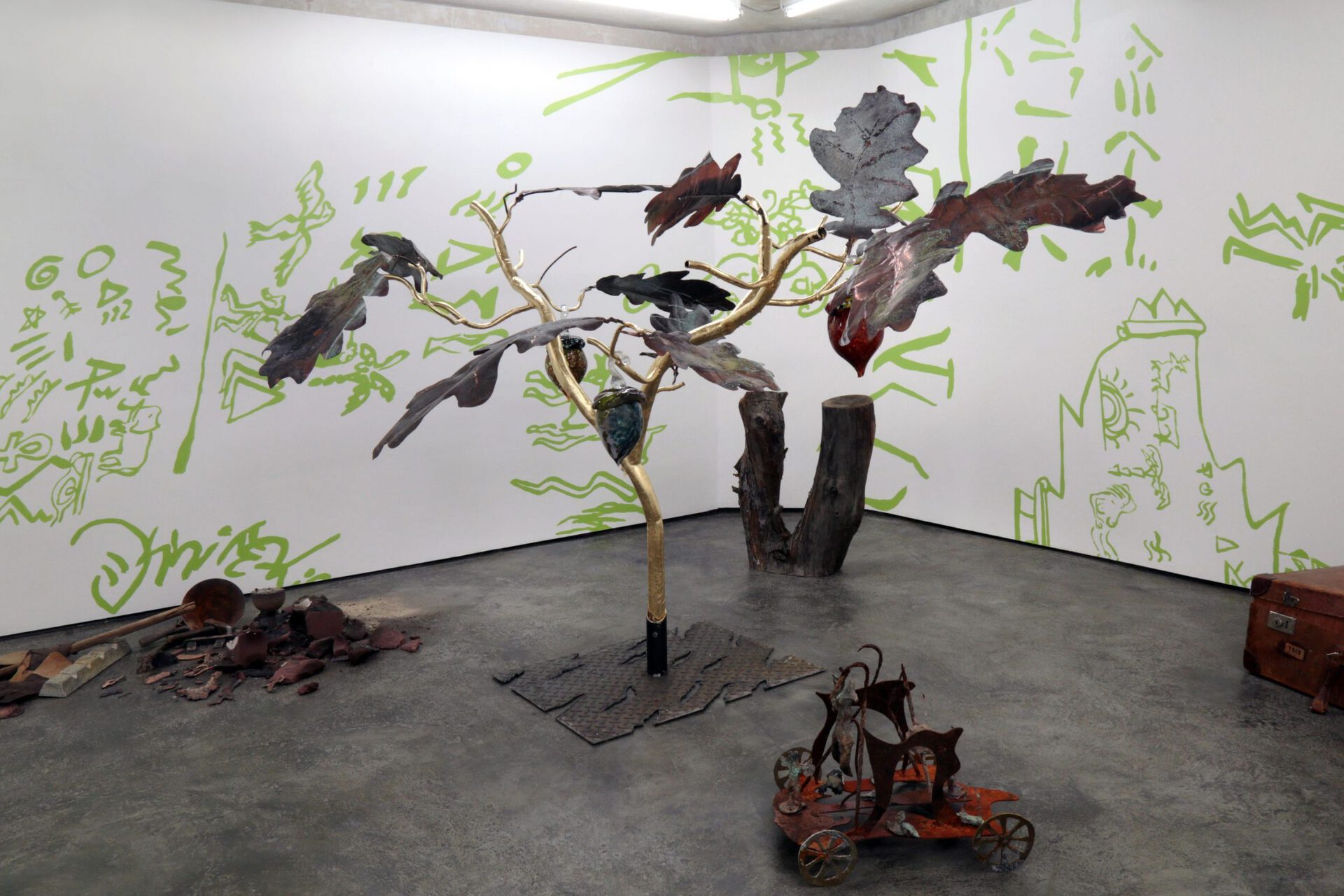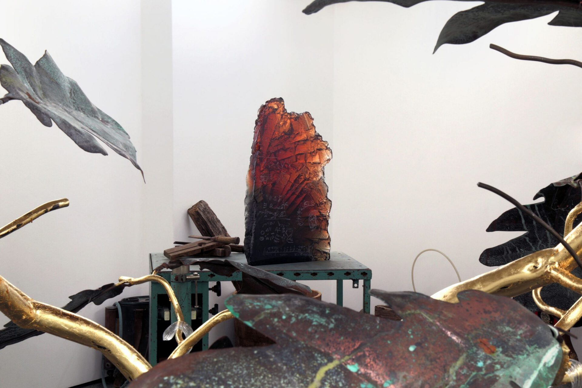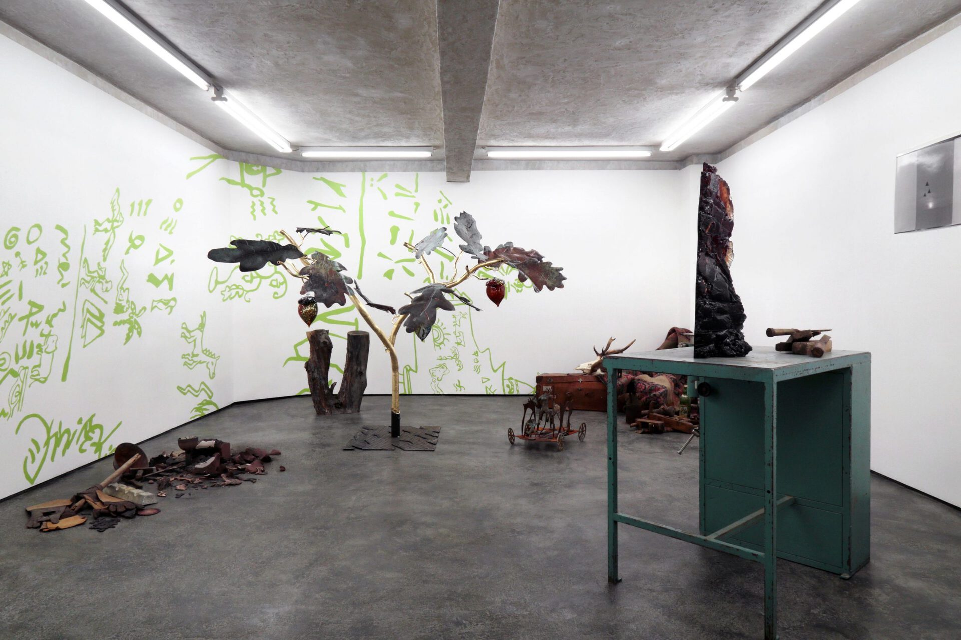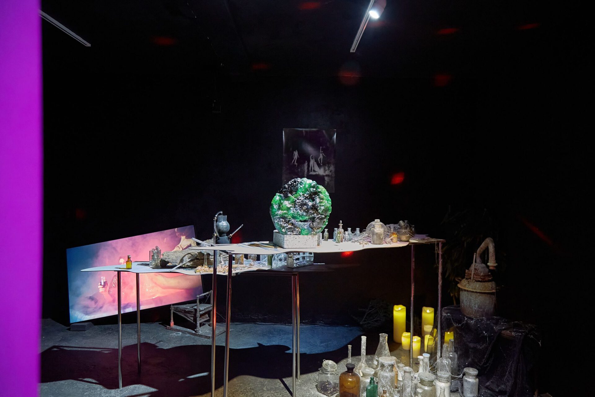 The Alchemist gestures towards a speculative return to a pre-intellectual era. Despite ongoing scientific progress which has defined the general consensus of human knowledge and understanding of the world, a number of alternative interpretations of reality and its principles of functioning have emerged. It is as if the magnification of the traditional Western rational philosophy, resulting in blind and careless misuse of the natural, material world around us, could only be reconciled by a dramatic turning back, which could be perceived as undiscerning, even naive, but provides comfort with its apparent simplicity found in references to nature and its elementary symbolism. A sidestep into a parallel reality, in which the clearly reason-based laws of physics and humans do apply, yet simultaneously magic and unknown forces are at work. This speculative view of what is and what is not "real" is becoming more and more relevant as our lived reality becomes increasingly more disorientating.