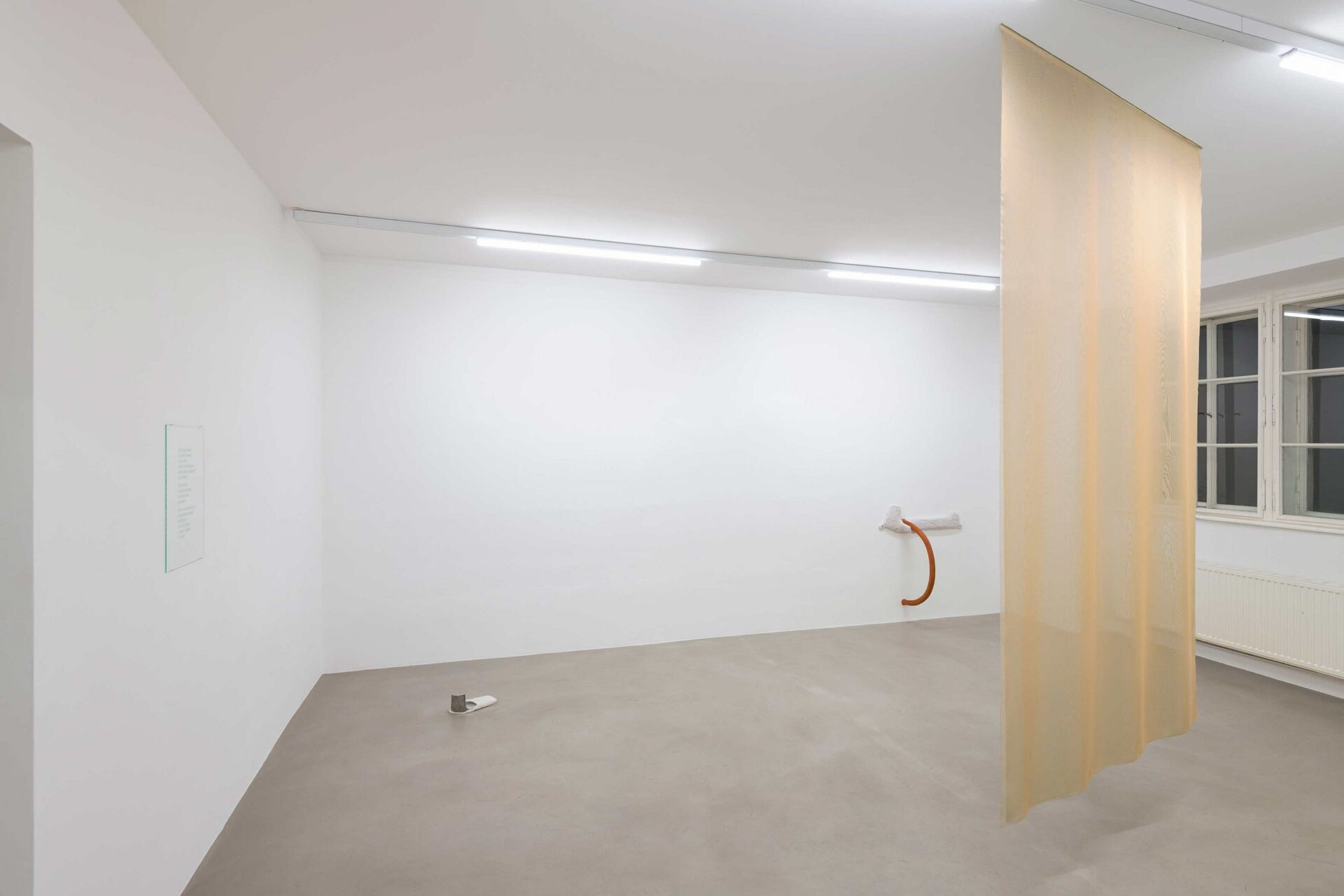 This aspect of overlapping levels of reality is a possible point of contact between Kyriacou’s works and the group of works titled “Friction in Plain Sight” by Nadia Guerroui. The French artist also likes to operate in the space between shifting systems of contemplation and interpretation. Despite, or perhaps as a result of, the formal simplicity of the works, a play between different direct and indirect modes of experience opens up in the complex network of relationships between the various conditions of their presentation. A central role is played by the framing conditions of perception, as given by light, time of day, and architectural as well as natural surroundings. Her manipulations of the materials as well as the placements of her works, which are often conceived in a site-specific manner, are sometimes situated so close to the lower threshold of perception that one only recognizes them at second glance. Another dimension of reception is contributed by the lyrical texts with which Guerroui often accompanies her works, or even incorporates them into them. A declared intention of the poetic intimacy of Guerroui’s subtle interventions, promoted by these strategies, is to exert a decelerating effect on the viewer - not, however, in the sense of a relaxing wellness therapy for tired eyes, but as a means to generate friction in the processing of visual information, which is too often set to rapid categorization. In the age of the economy of attention, in the face of the spectacle of the digital world, this presents an urgently necessary alternative.