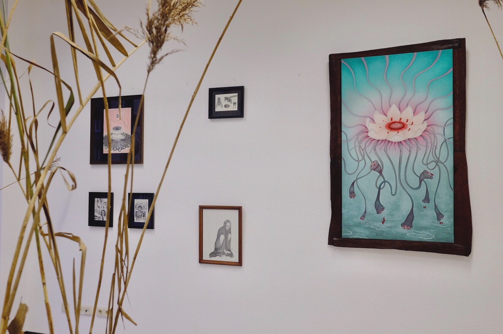 Born in Hanoi, Nalie Liên is showing her drawings and paintings for the first time to a larger audience in Arrival Room. With her exhibition "The hands are chirping, the crickets are smoking" she wants to transform the exhibition space into what she calls an "intermediate location". Her works show influences from two worlds, from her two homelands, Vietnam and Germany. The tranquil Bliesgau, with its marshes, plays a major role in Nalie Lien's young work.Text