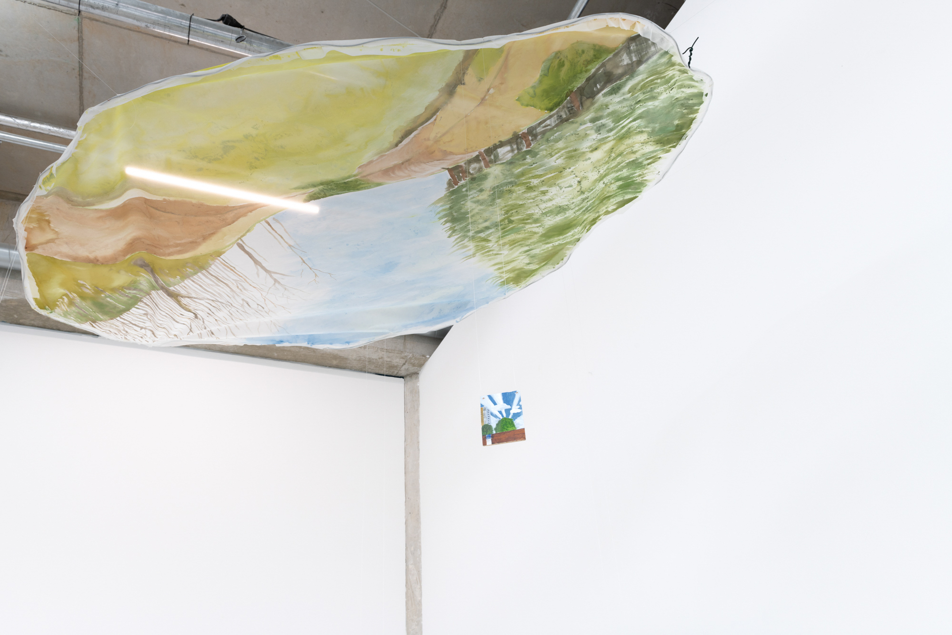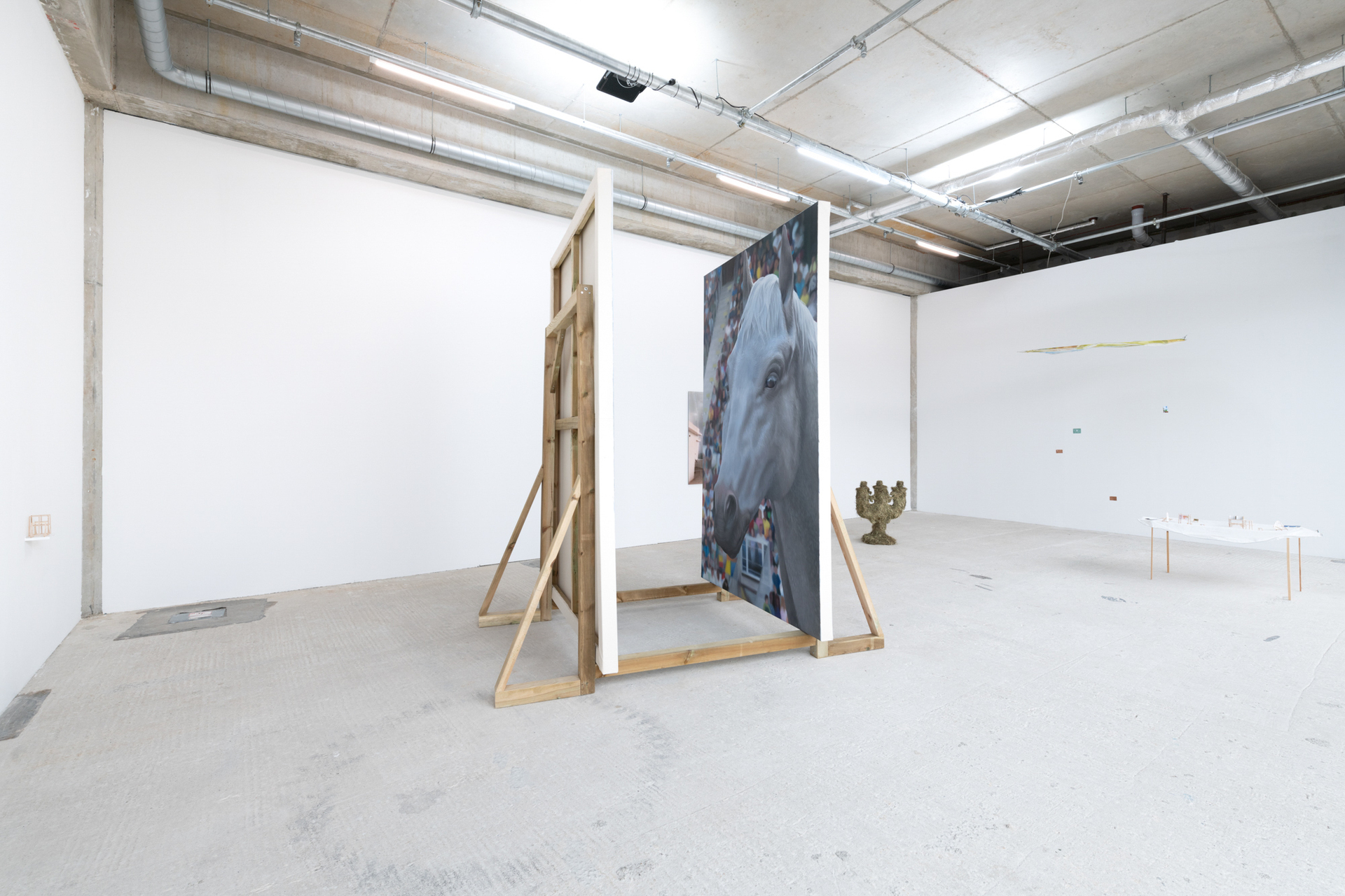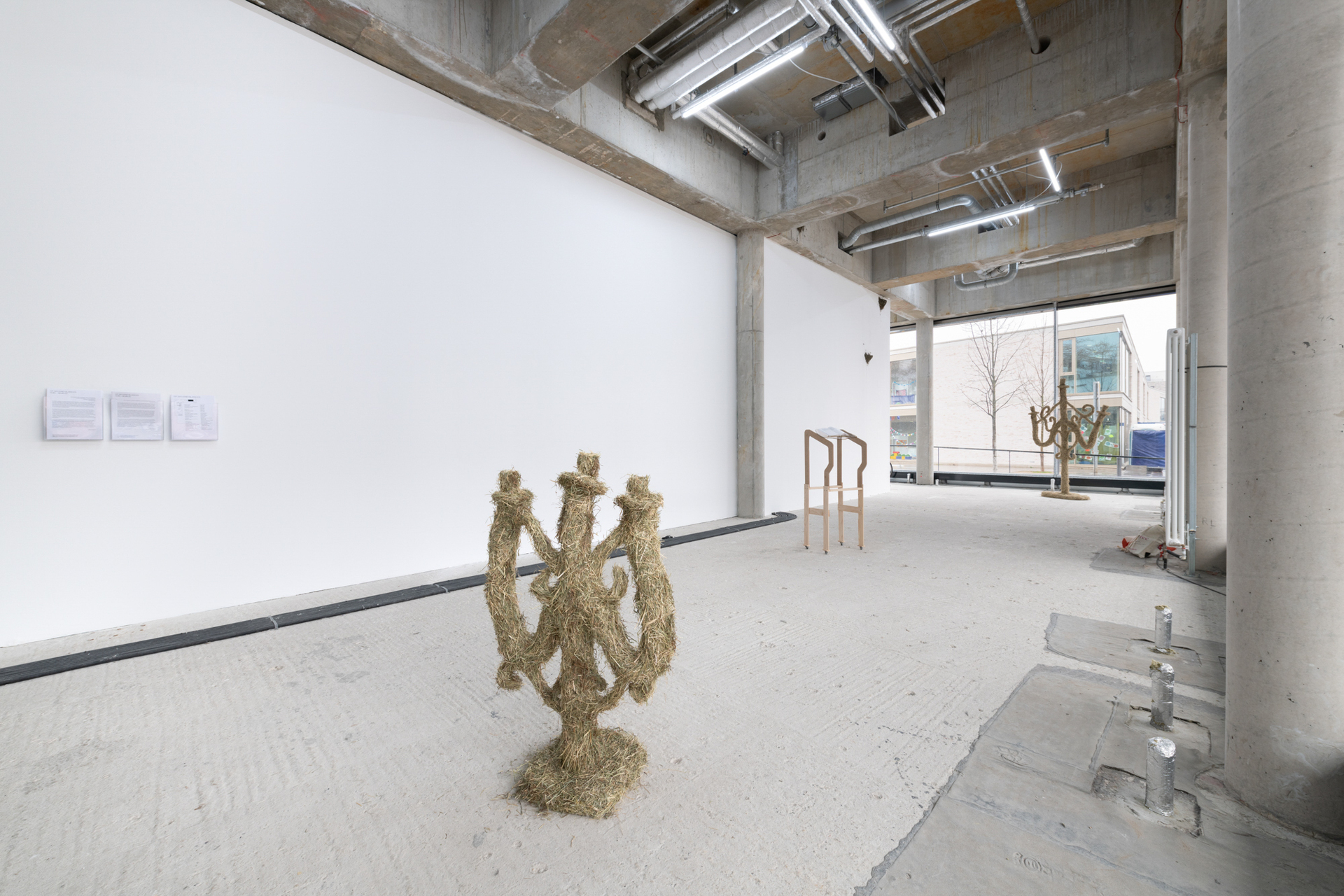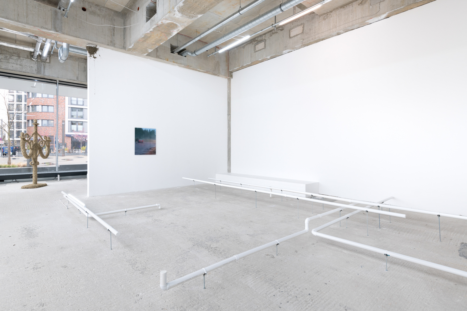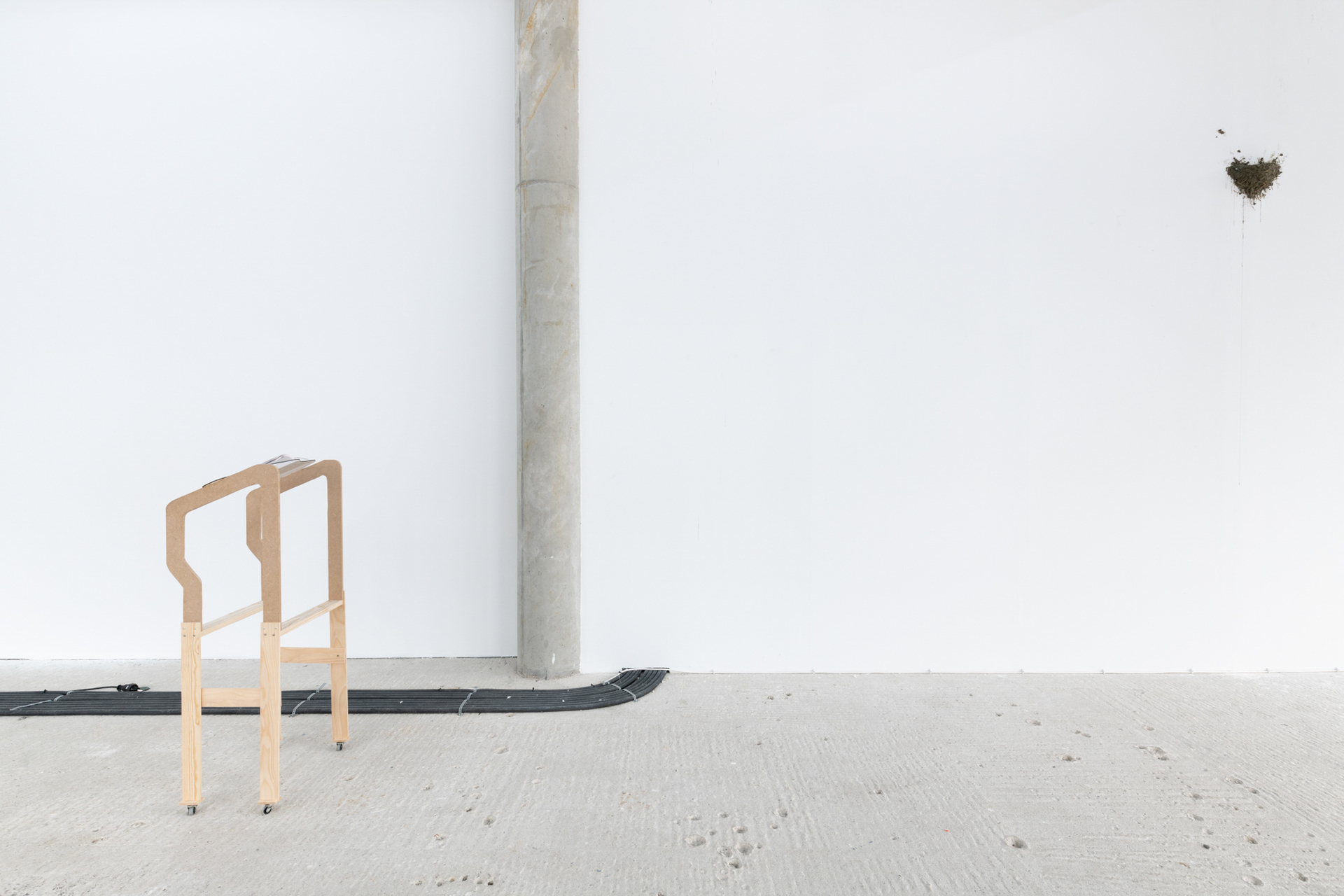 The gaze drifts along the contours of the room - under the pipes and conduits, between the gaps and behind the heaters. A whole ensemble of aberrations; swarming. We are familiar with the feeling when something is missing, when only a trace remains, which all at once seems to dominate the entire space. This intense moment, when the gaze falls in between things and reaches the most remote objects, is when we are made fully aware of the absence of a function. It is a paradoxical form of presence in that something seems present through its absence.