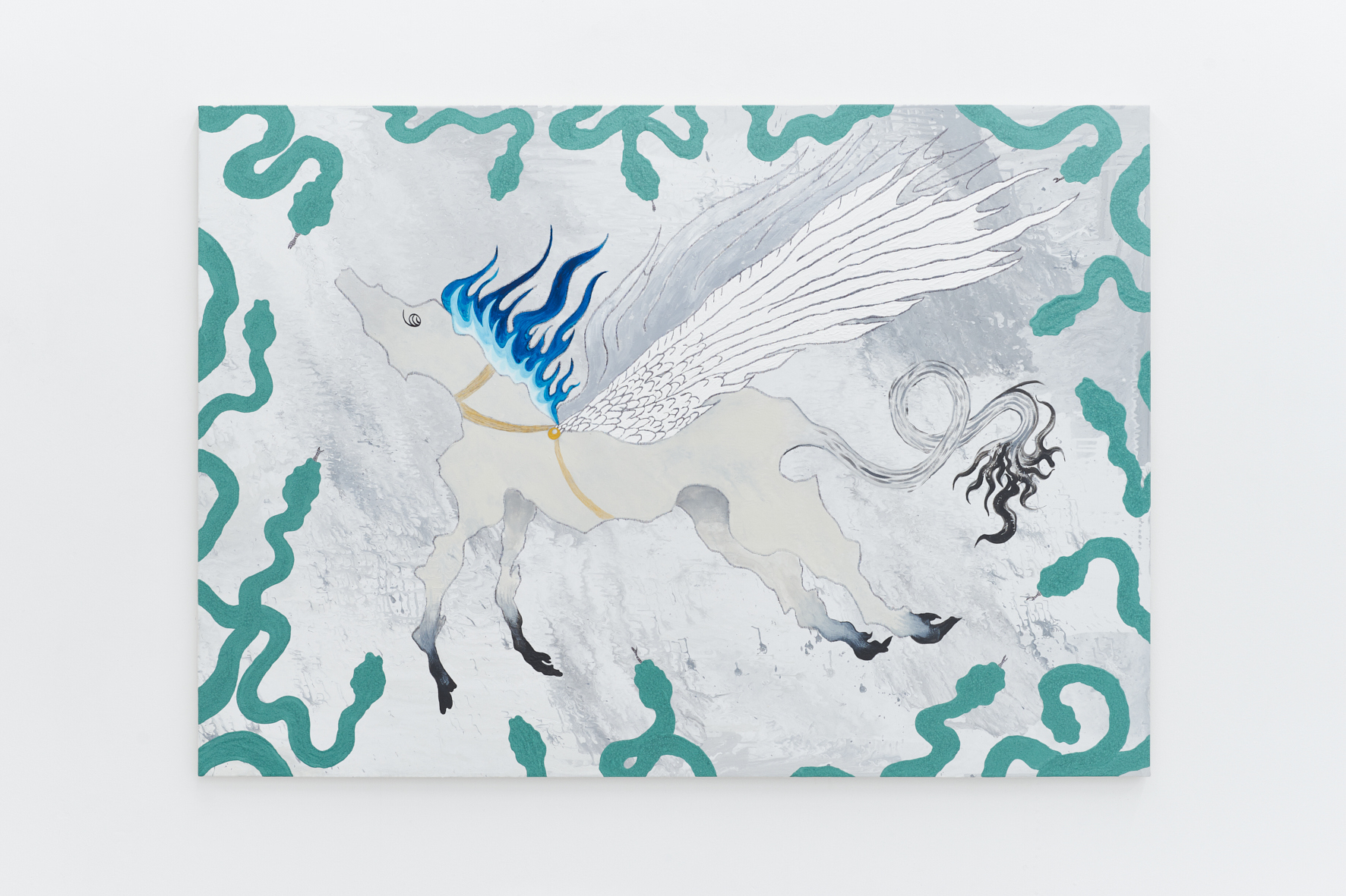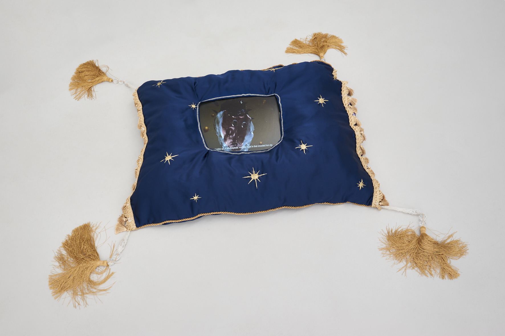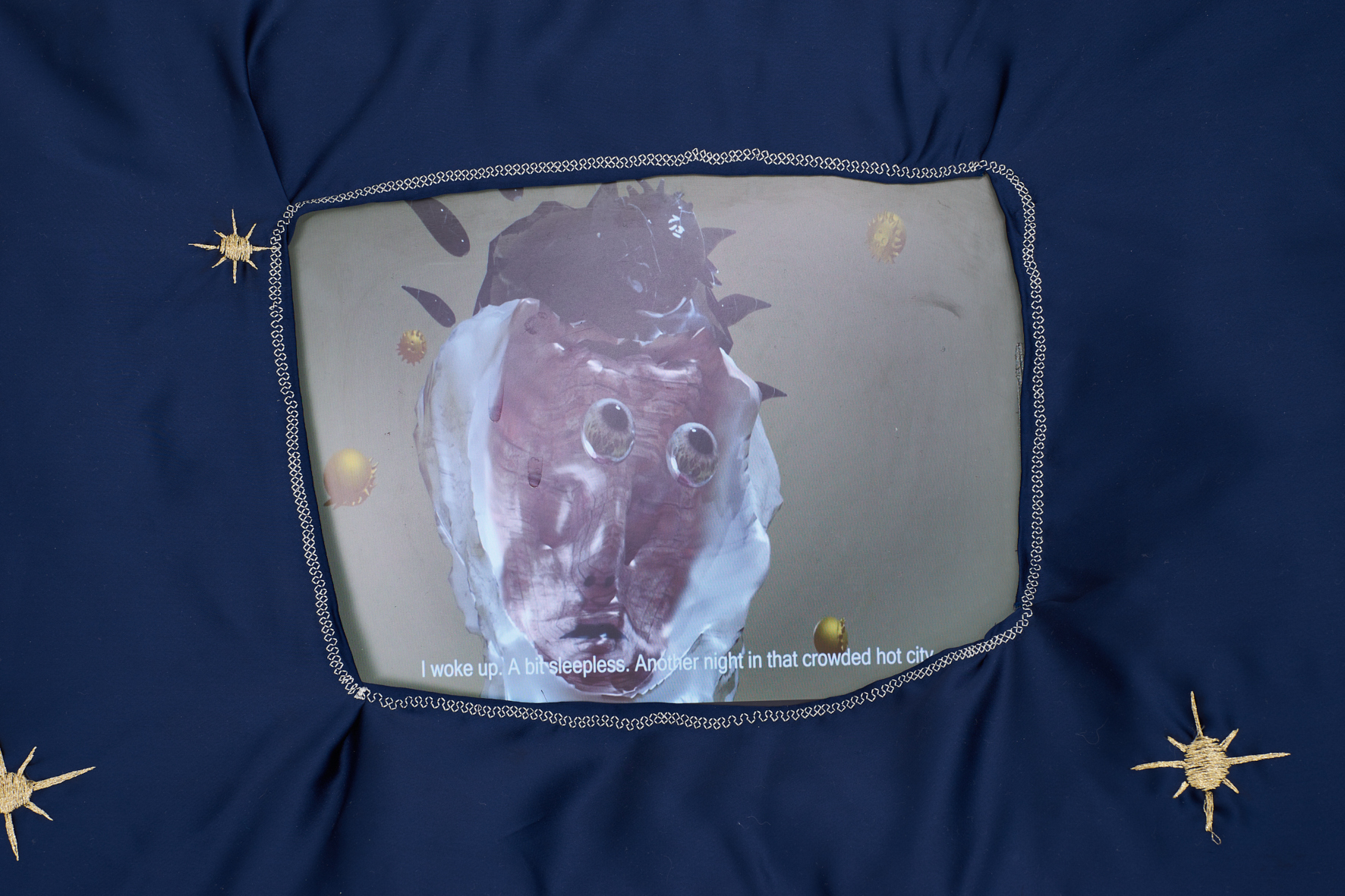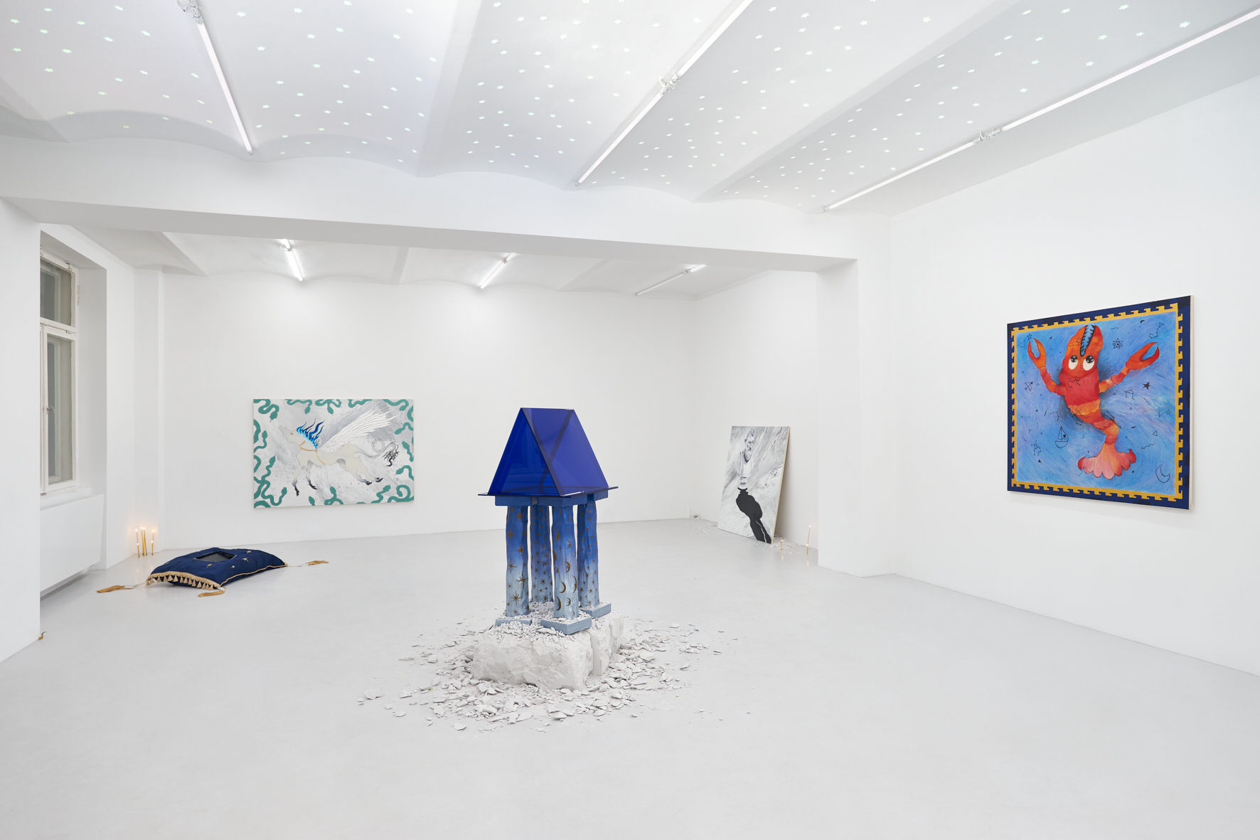 Watching the exhibition, we experience the disintegration of the planet, although the landscape shown is not quite a brutal, pre-apocalyptic vision of the world. Øleg&Kaśka, thus, create a funny, cartoon character of a dazed boy whose bulging eyes gaze up at the night sky (Astral Prayer, object, 2019). For them, astral elements are a symbol of blind faith. As the artists say: “Being dreamers, we search for hope in the stars.” It is somewhat illusory and disturbingly reminiscent of the passivity of the main characters of The Dreamers (dir. Bernardo Bertolucci, 2003), whose isolation (through complicated, sex-based relations) from the French strikes in May 1968, ultimately, still ends in a clash with the protest reality. In the case of Ashes to Ashes, the artists resort to cosmology. When the nearby Noteć River dries up, they look for answers in stories, dreams, and the proverbial stars. They resemble the naive Little Prince on LSD (The Insane Dreamer, painting, 2019). Similarly to Saint-Exupéry’s protagonist, they seek/find a solution to their problem on other planets. And so, Øleg&Kaśka are on the run – above all, from the cataclysm which is already happening (the manifestations of the ecological catastrophe, which includes the pandemic of the coronavirus decimating mankind). The message of the duo is important: current small apocalypses are too big for visual art.