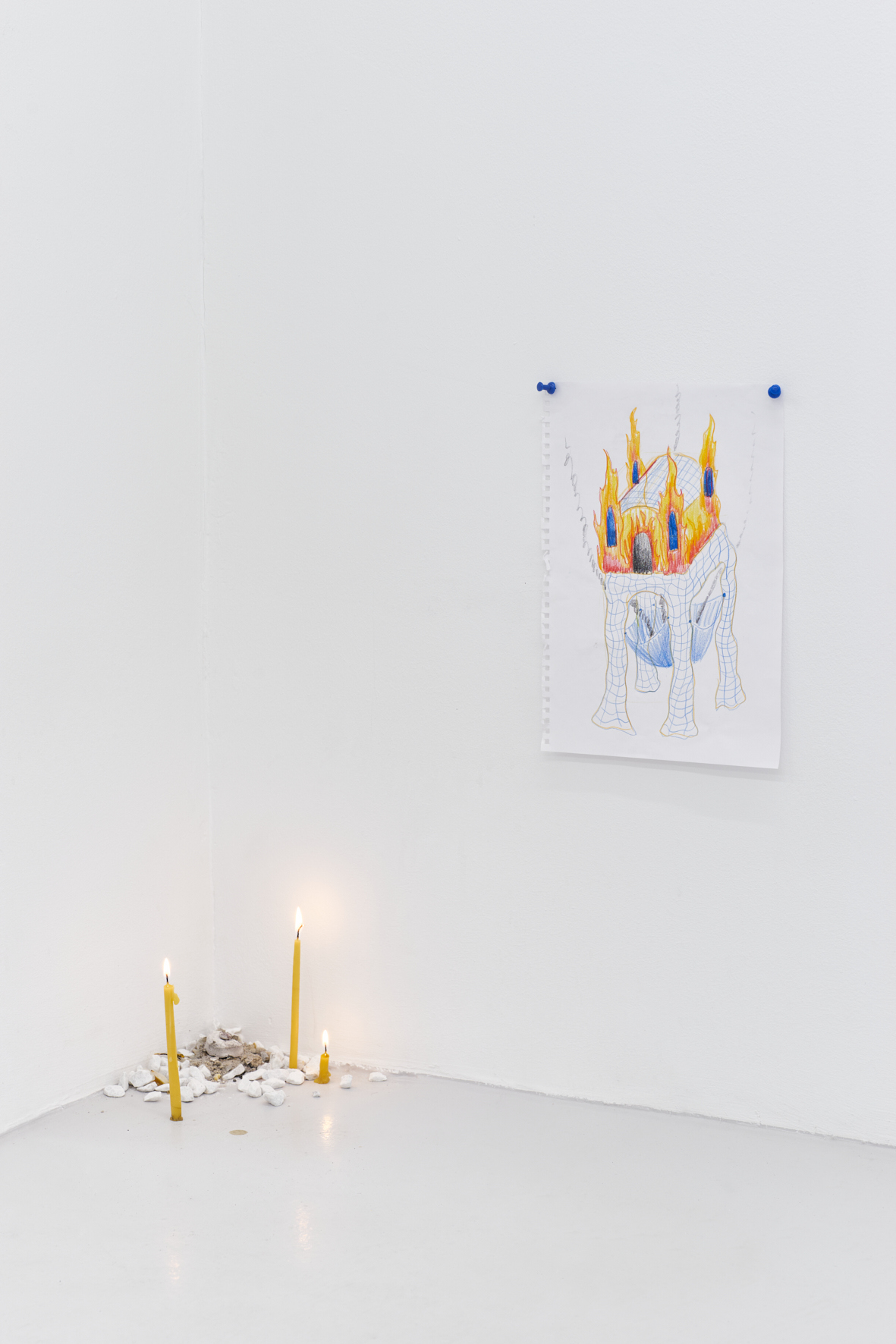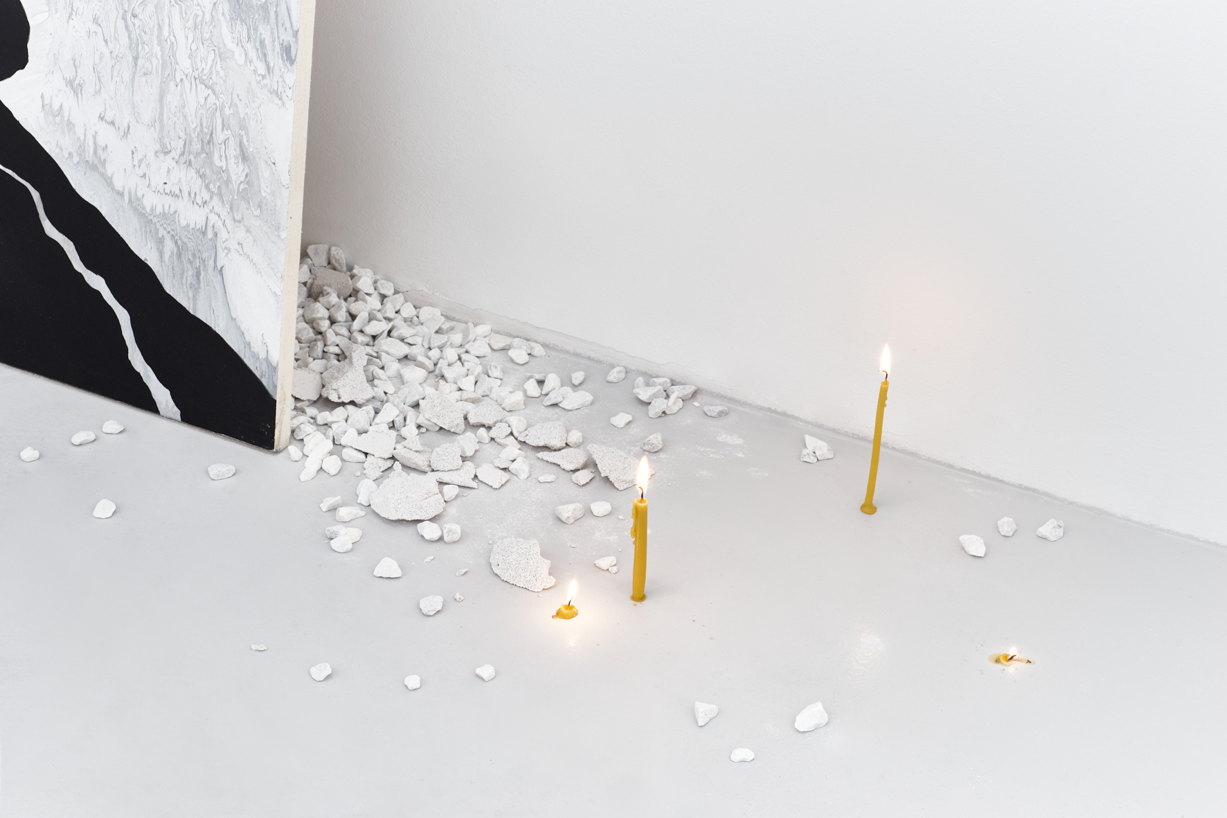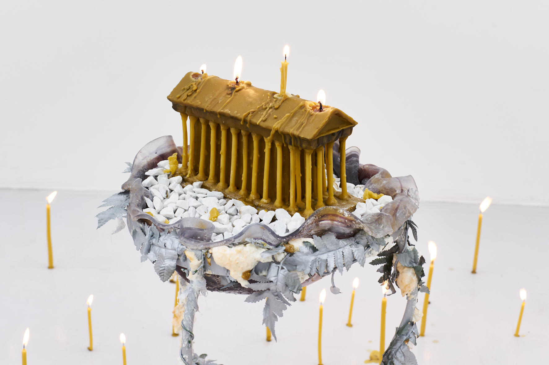 Øleg&Kaska, a Poznań duo who identify themselves as an individual and singular superorganism, was founded in the summer of 2018, at a time, when Greta Thunberg organized her first protest under the Swedish parliament, and the ecological disaster was ignorantly referred to in the mainstream as a mere “crisis.” The exhibition Ashes to Ashes is nothing more than a pleading cry from Millennial artists who are being slowly killed by the present. The collapsing colonnades of ancient buildings, the heat of the Earth, the smell of burning plastic – the apocalyptic imagination engages all the senses, seizing our thinking completely.Text