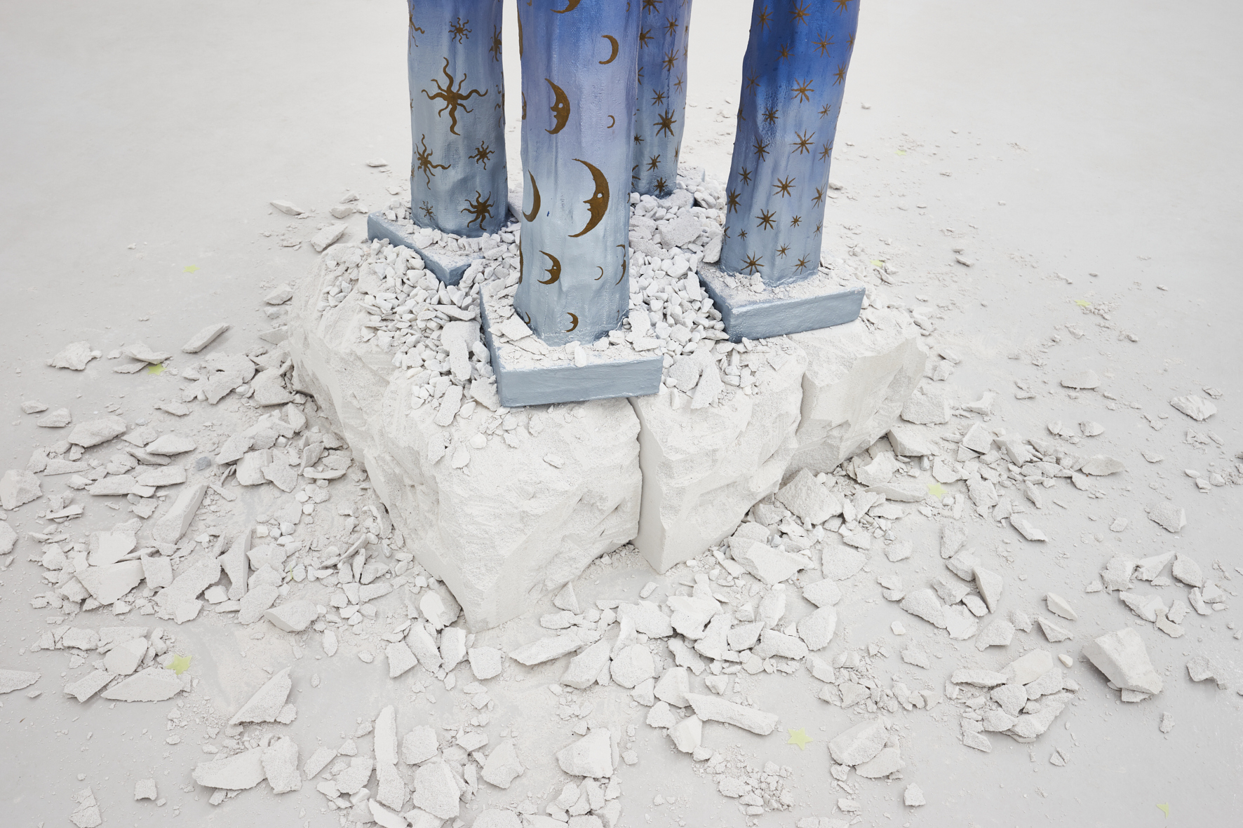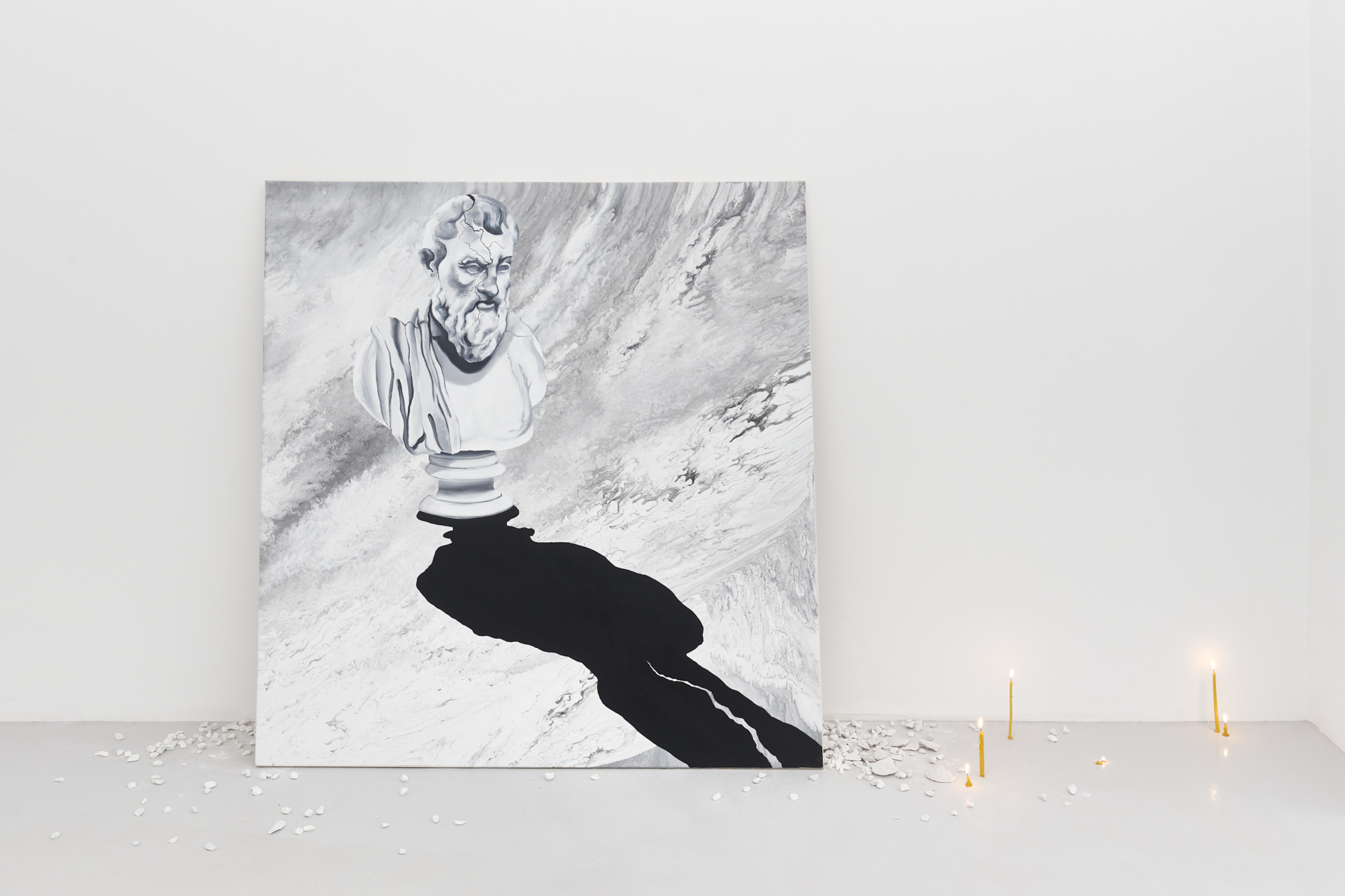 Øleg&Kaśka, a Poznań duo who identify themselves as an individual and singular superorganism, was founded in the summer of 2018, at a time, when Greta Thunberg organized her first protest under the Swedish parliament, and the ecological disaster was ignorantly referred to in the mainstream as a mere “crisis.” The exhibition Ashes to Ashes is nothing more than a pleading cry from Millennial artists who are being slowly killed by the present. The collapsing colonnades of ancient buildings, the heat of the Earth, the smell of burning plastic – the apocalyptic imagination engages all the senses, seizing our thinking completely.