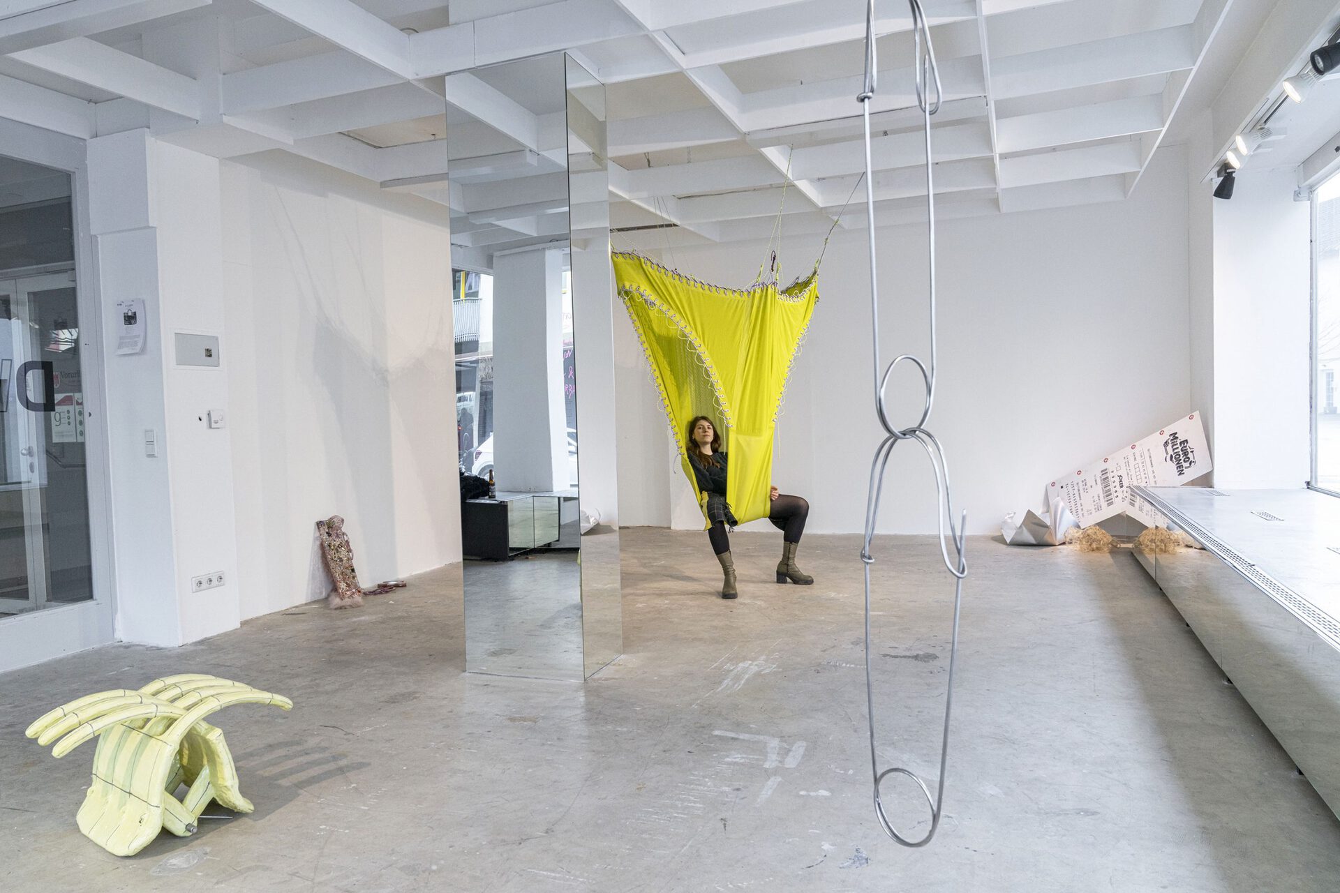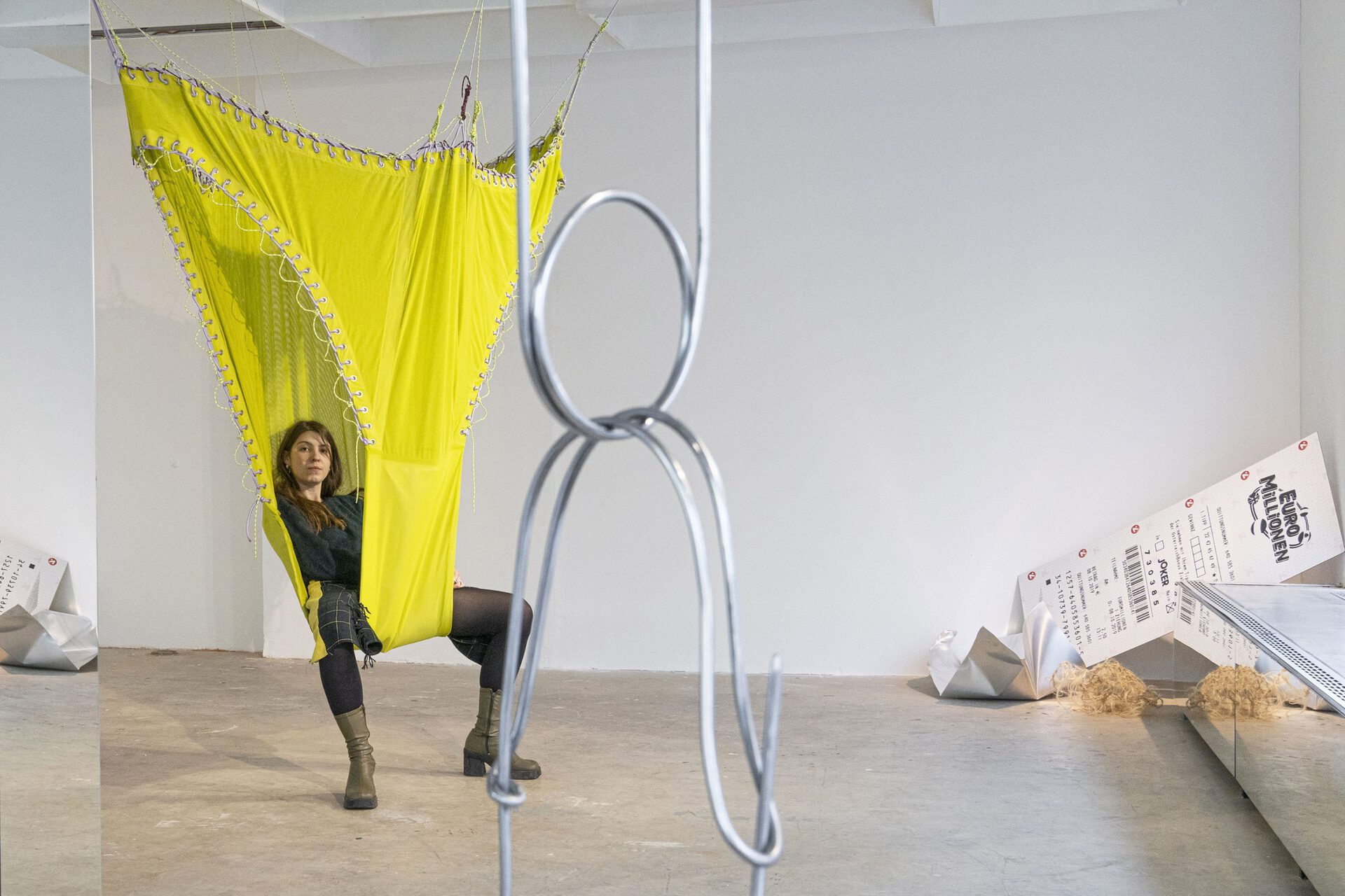 "Out of proportion- pick me up!" opens a handbag and reveals its contents. The space becomes the bag itself, container and recipient, and gives visitors the opportunity to view the normally inconspicuous objects "rolling around" in size of furniture pieces. An "Alice in Wonderland" feeling sets in: objects such as hair clips, safety pins, hairballs and others are proportionally inflated, ten times larger than in reality. This enlargement causes a shift. The usefulness and value of the individual objects elude the usual system of classification, from the small cheap hairclip,which can easily be lost, to an object which can take up space and can shine in a new function. Artists: Flora Lechner with contributions by Norma Kiskan, Lukas Matuschek and Miguel Parrrra Space: DWDS in Bregenz, AustriaText