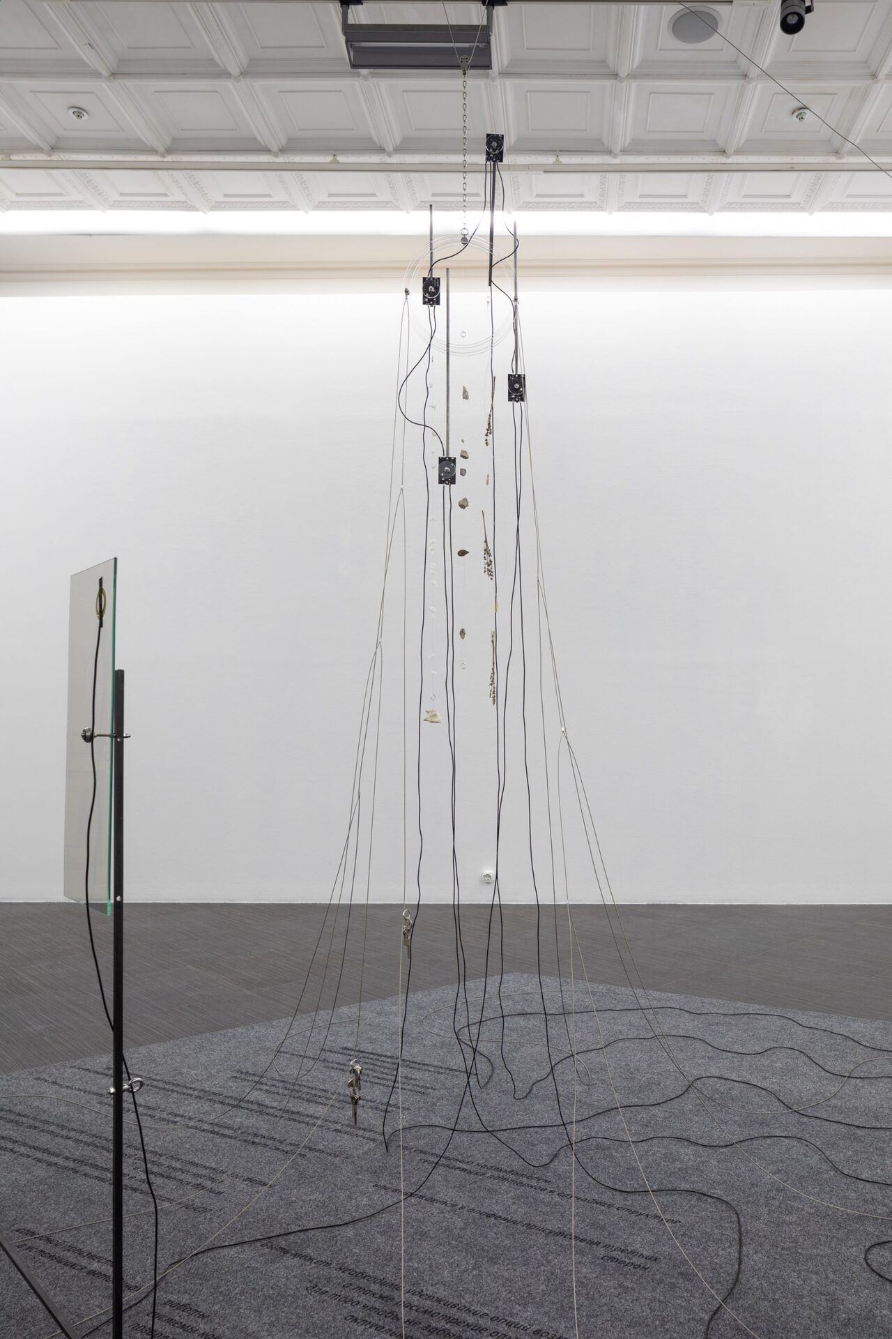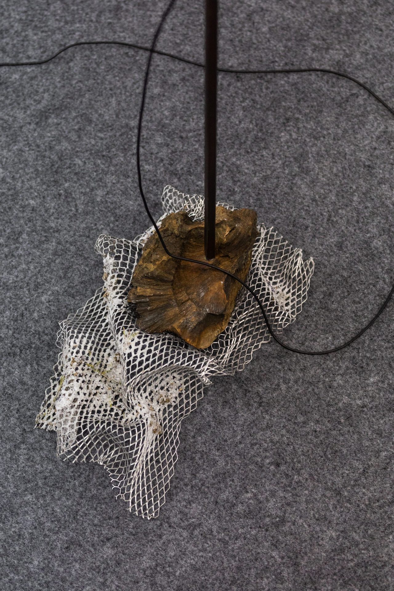 The installation reveals the relationship between the military and the civilian in terms of concepts such as pseudomorphism and plasticity. Pseudomorphism is a geological term for changing the original structure without changing its shape. Plasticity is a neuroscience concept, the ability of the brain to radically change with the subsequent preservation of a new structure. The artist uses these concepts to show how strategies of civilian resistance are changing the ways of surveillance and power control. The arms race between the military complex and guerrilla resistance resembles the processes of pseudomorphism and plasticity. They allow the political and the social to fit into the materiality of geology and brain structures.