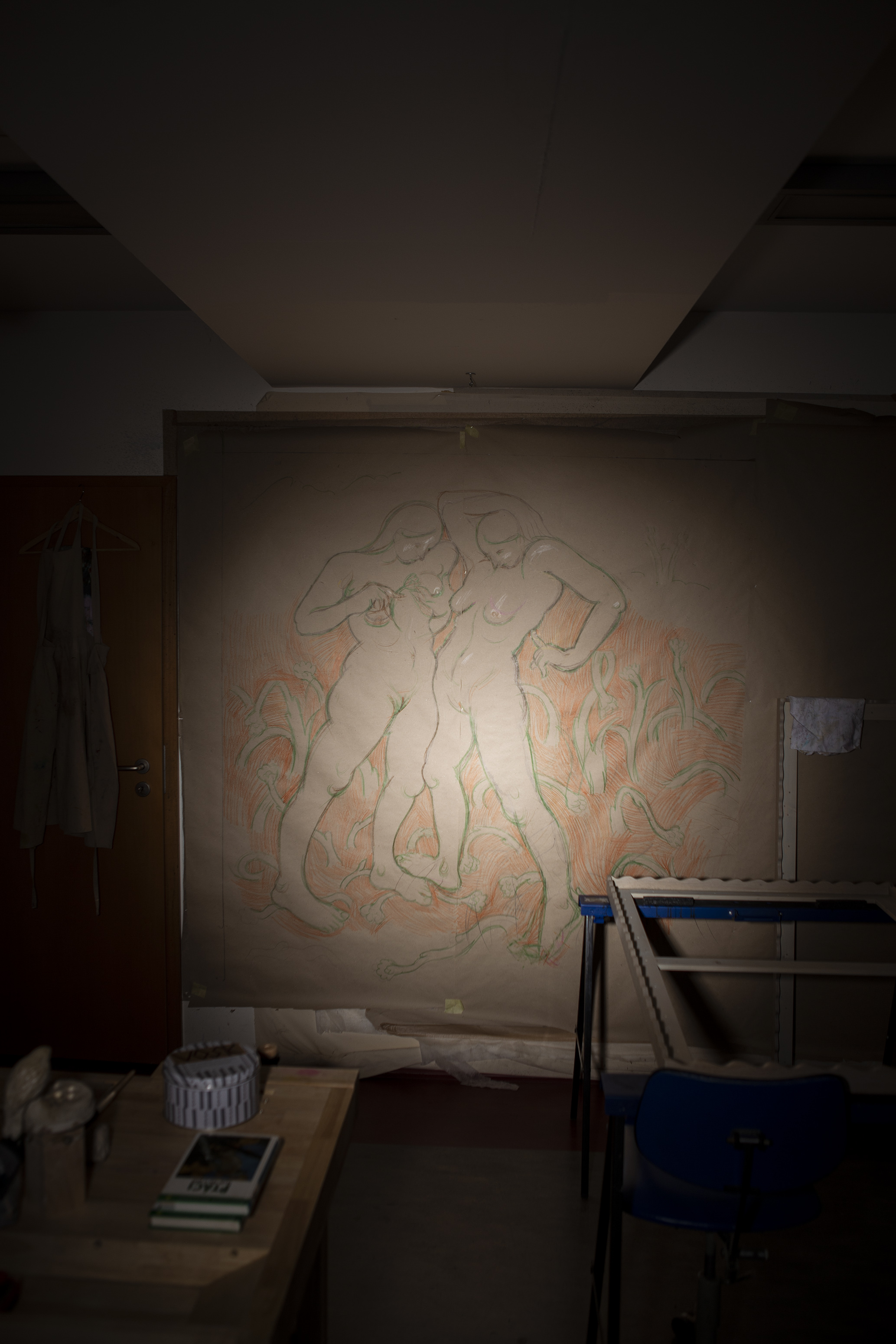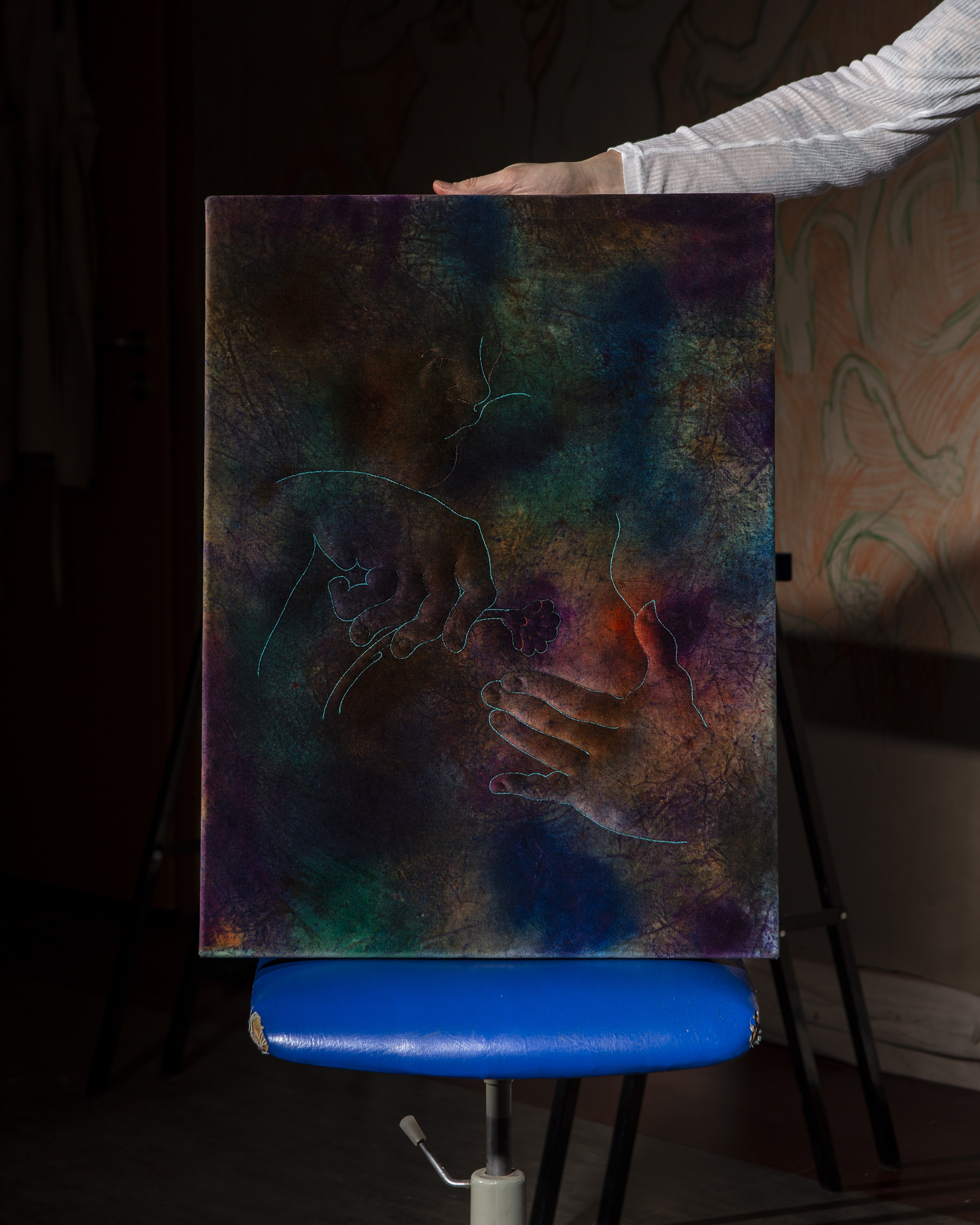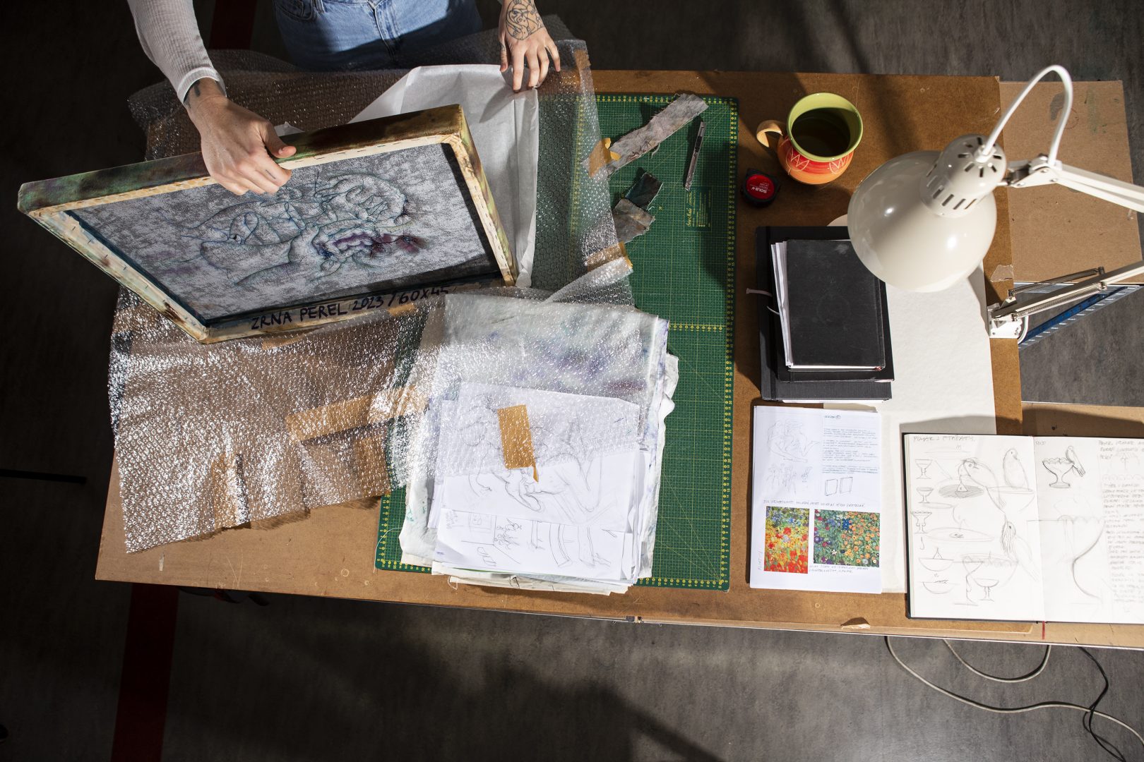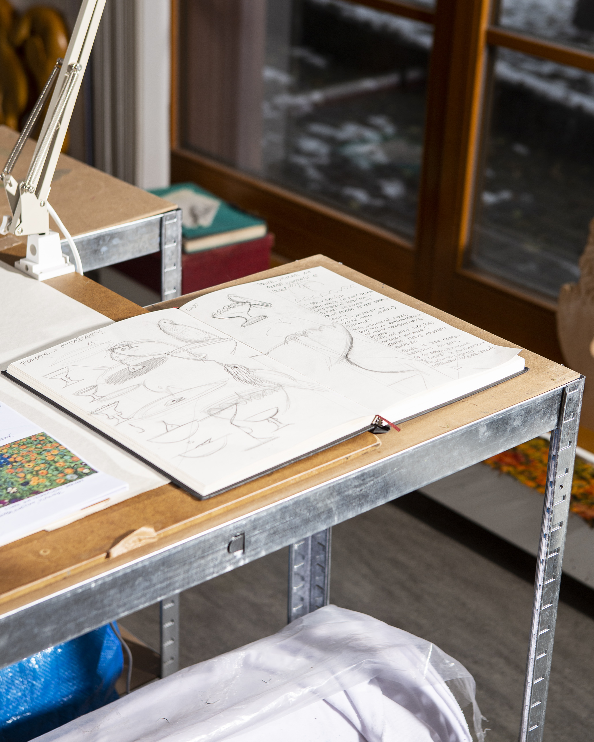 Creating itself, but if the question is which part of creation, then I can’t say for sure, as these feelings change. However, I currently enjoy drawing the most, which by its very nature is a very fast medium. Next to handmade embroidery, it seems the speed is even greater. I guess I like these two positions next to each other. I enjoy slow embroidery after weeks of fast drawing and vice versa. (; You will not enjoy the impression of roundness if you cannot perceive angularity and vice versa;) I describe it as the principle of pickled ginger in Japanese cuisine. It will cleanse your taste buds so you can then enjoy the familiar taste again as for the first time. Which, by the way, is a greatly important principle for me, this rediscovery of something notorious.
