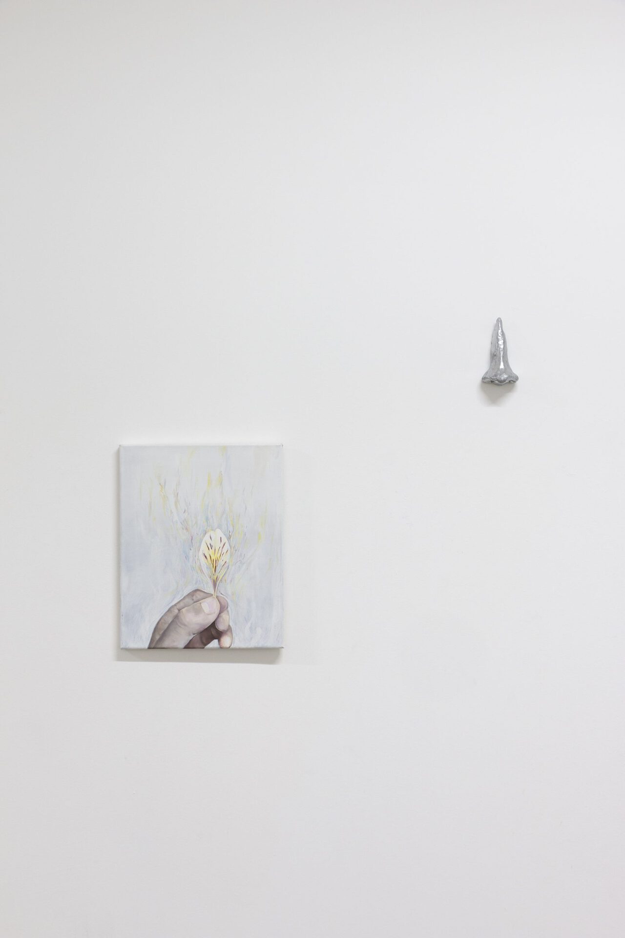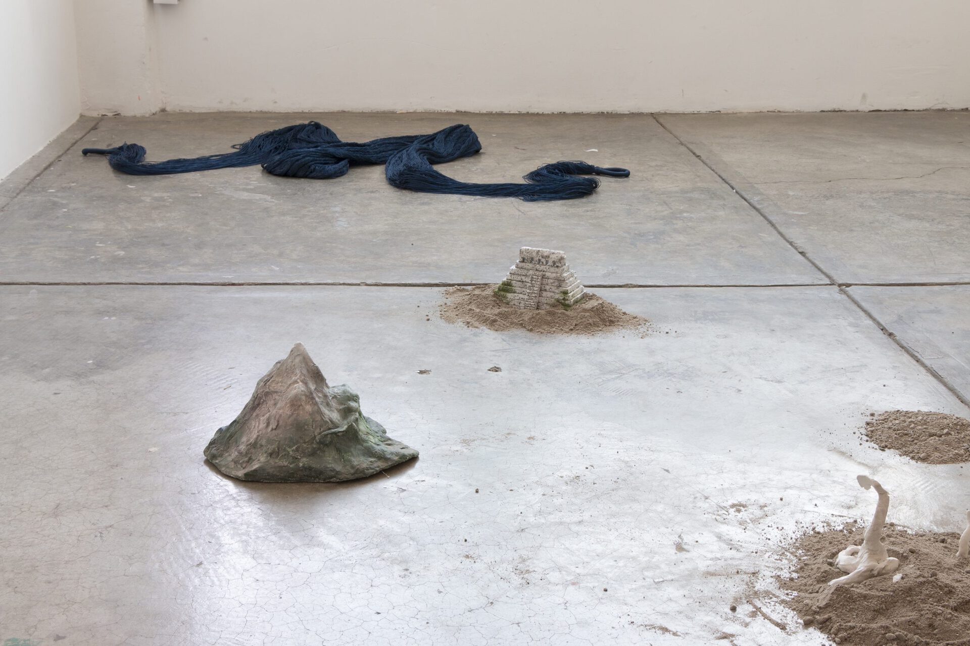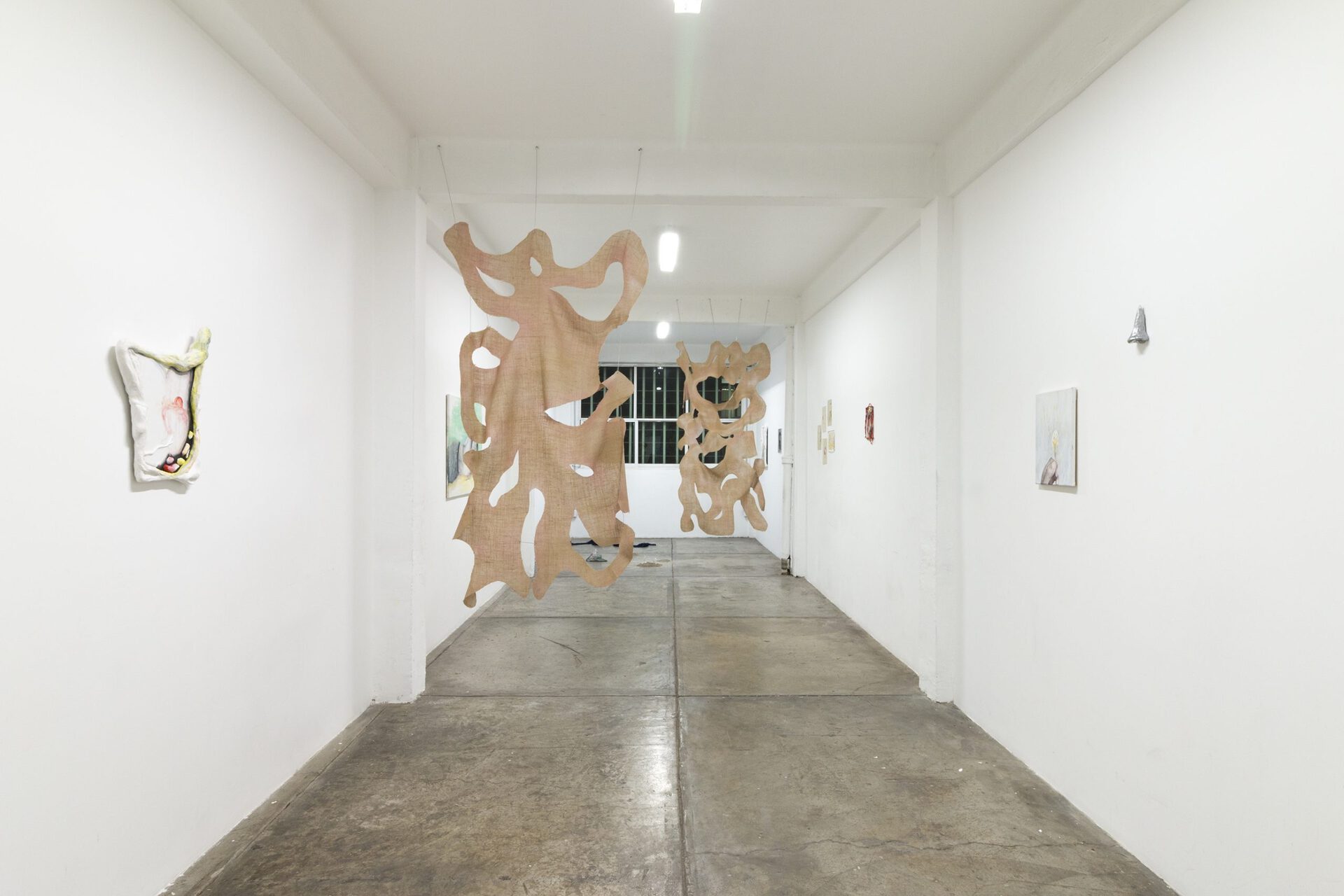 Together they initiated a specific dialogue between their works while collaborating for the first time. The studio exhibition contains sculptural details made of plaster, sand and remastered ready mades that contextually engage with the oil paintings. The paintings blur the boundaries between painting and sculpture. The hanging cut-outs made of jute mark a fluidity and fragility which can also be observed in the small sized drawings. The artists worked site specifically and also included materials found through in their cultural research while being in Mexico City.