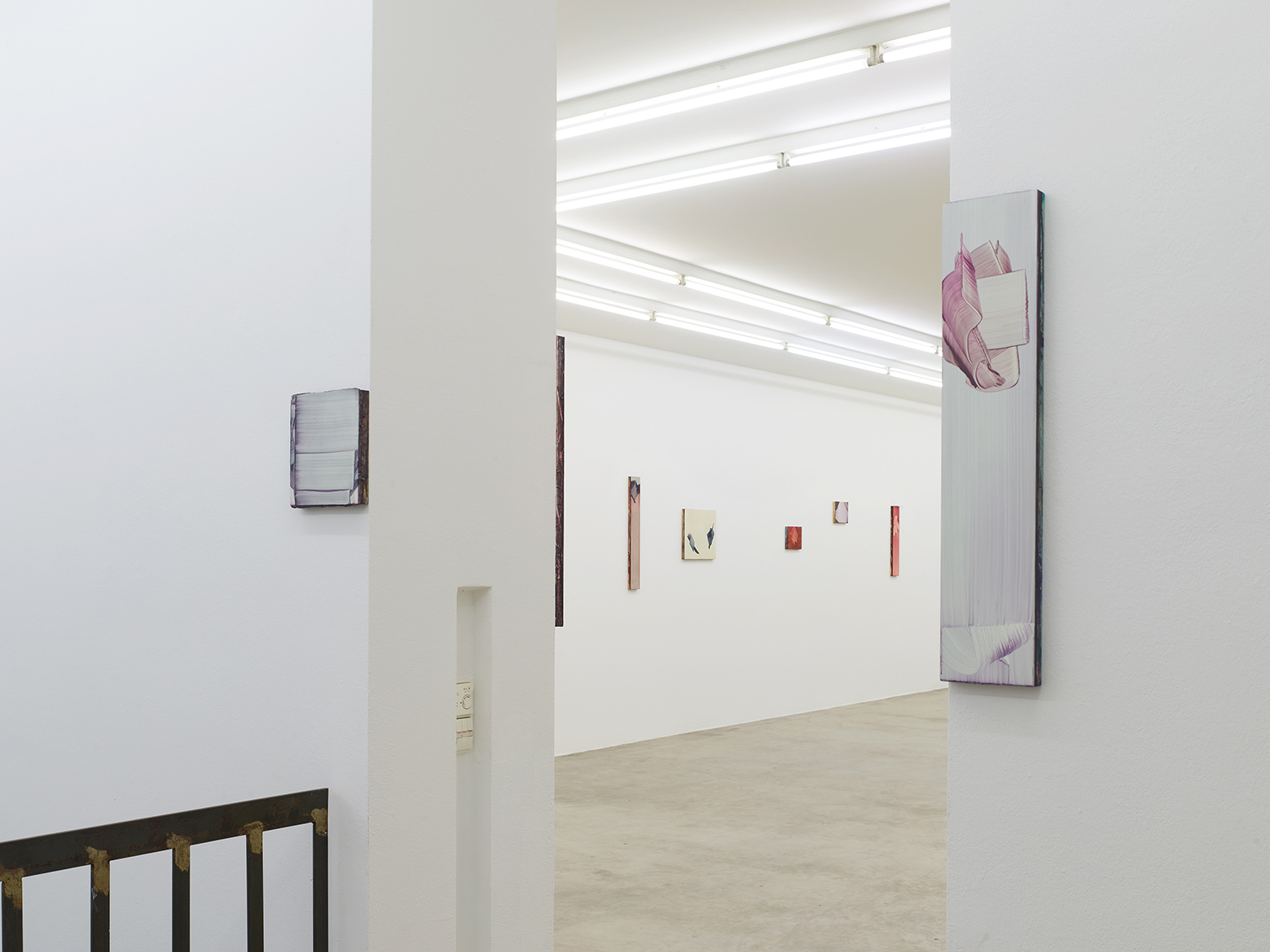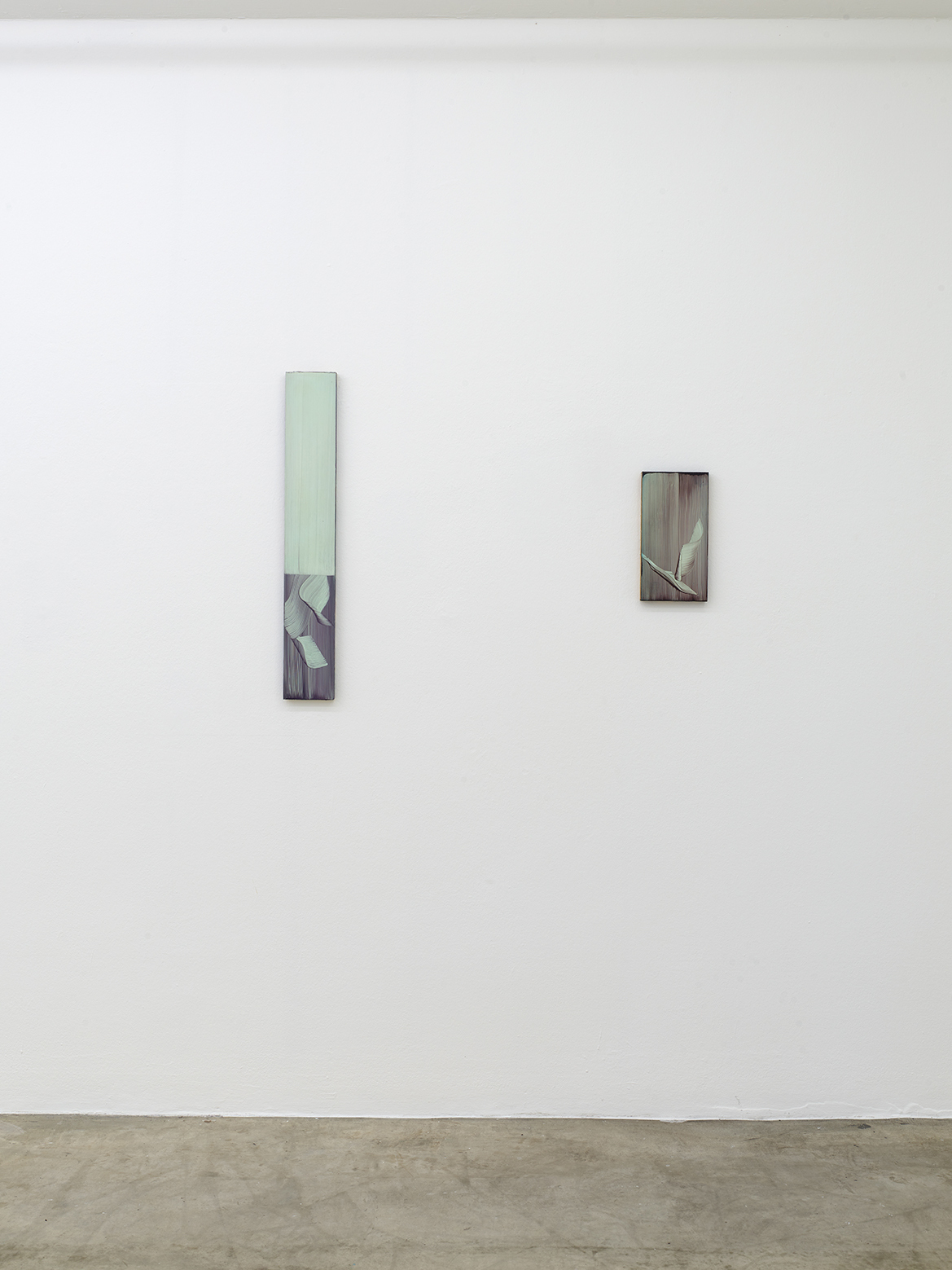 The edges of the image carriers with their layered color deposits bear witness to the process of the work’s creation. The picture is always also an object at the same time, whereby Saile is interested precisely in the tilting moment between these two modes. The question of the object character that painting can assume is posed by the artist in the exhibition in a particularly targeted manner with the pipes in their narrow, stretched formats. Their proportions go to the limits of what is generally still perceived as a picture surface.
