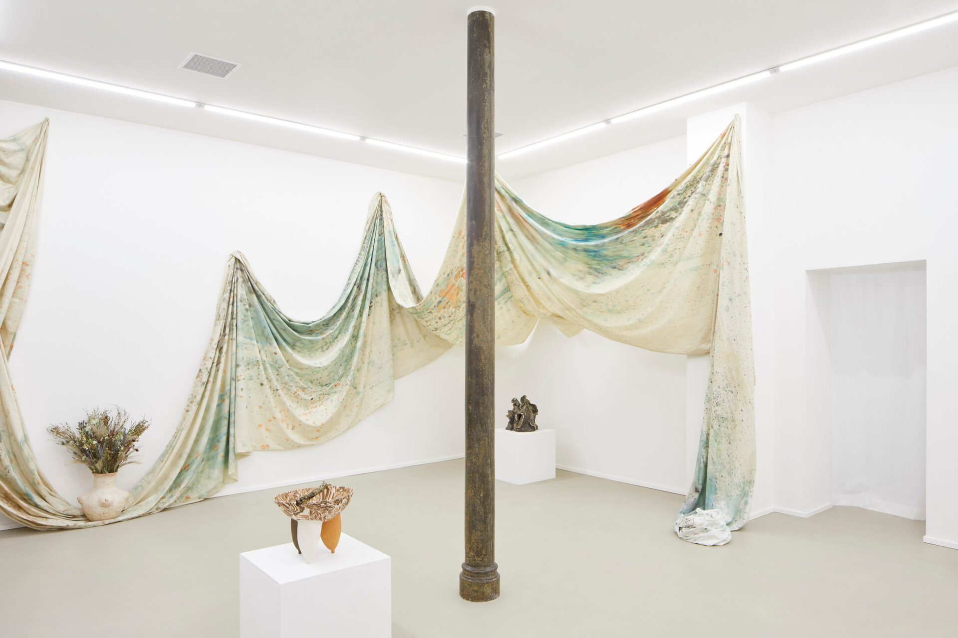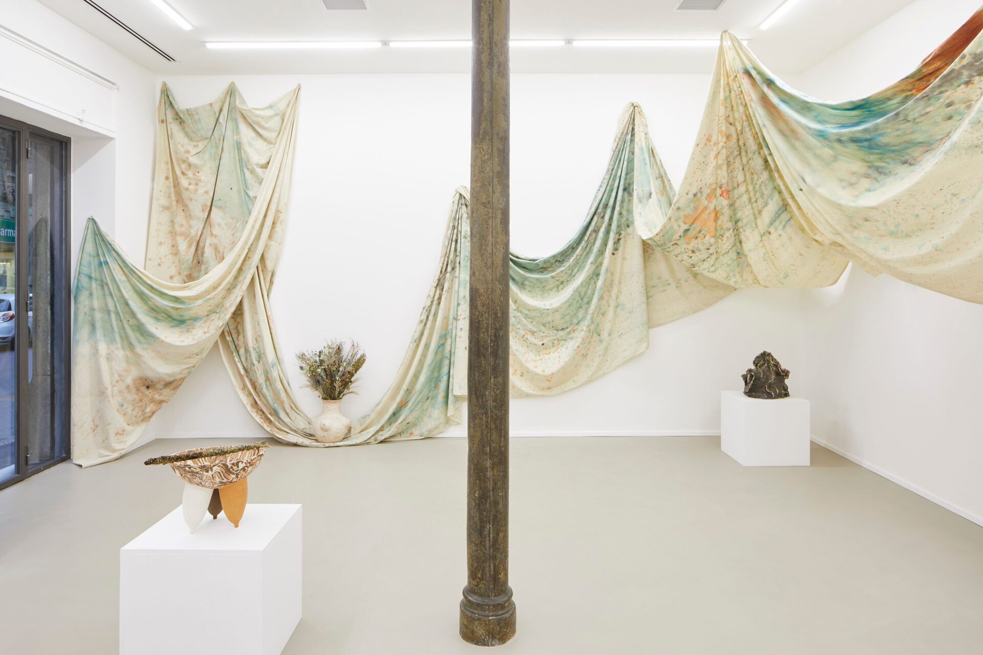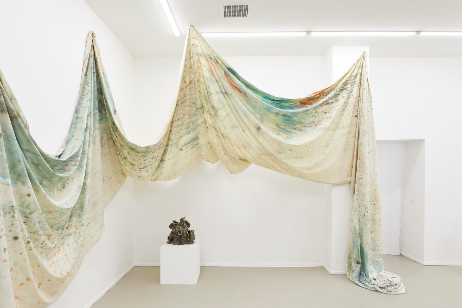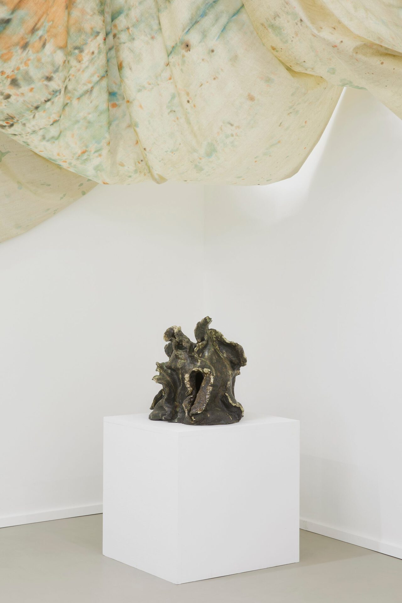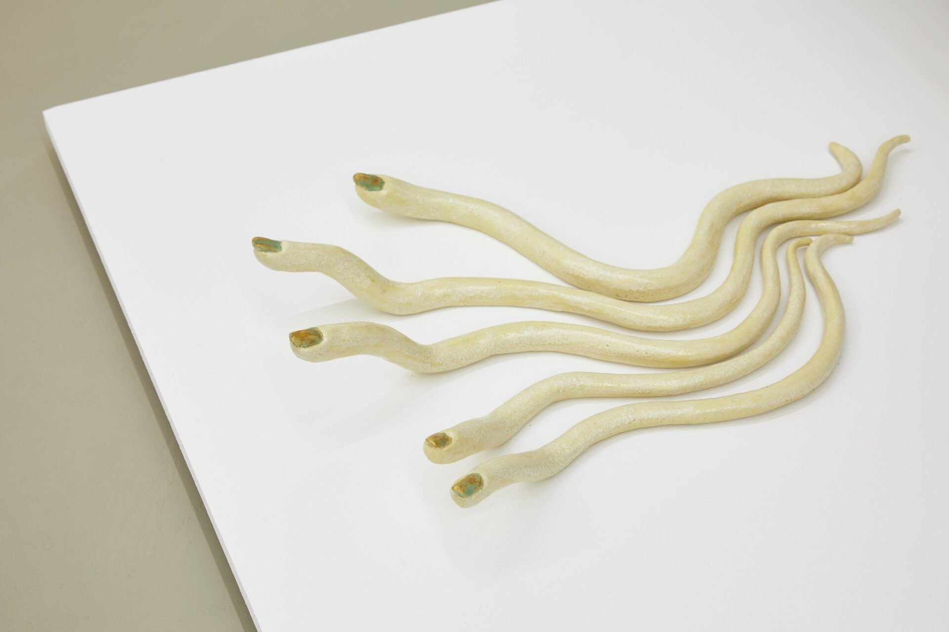 Immersed in the mystical and otherworldly dimension, the exhibition ‘So remember the liquid ground’ presents a series of Brzeżańska’s ceramics, textile works and paintings mostly inspired by the water’s historical, social, cultural, and ecological significance. Here, the concept of water becomes life’s matter and matrix, mother and medium. An endless reservoir of symbols, myths and metaphors. This unique universe is built by Brzeżańska through the use of different registers of knowledge, from Slavic mythologies and philosophy to systems of cognition marginalized by modern science, such as alchemy, parapsychology, esotericism, native knowledge or matriarchal traditions.Text
