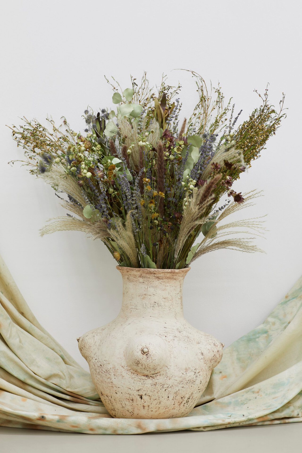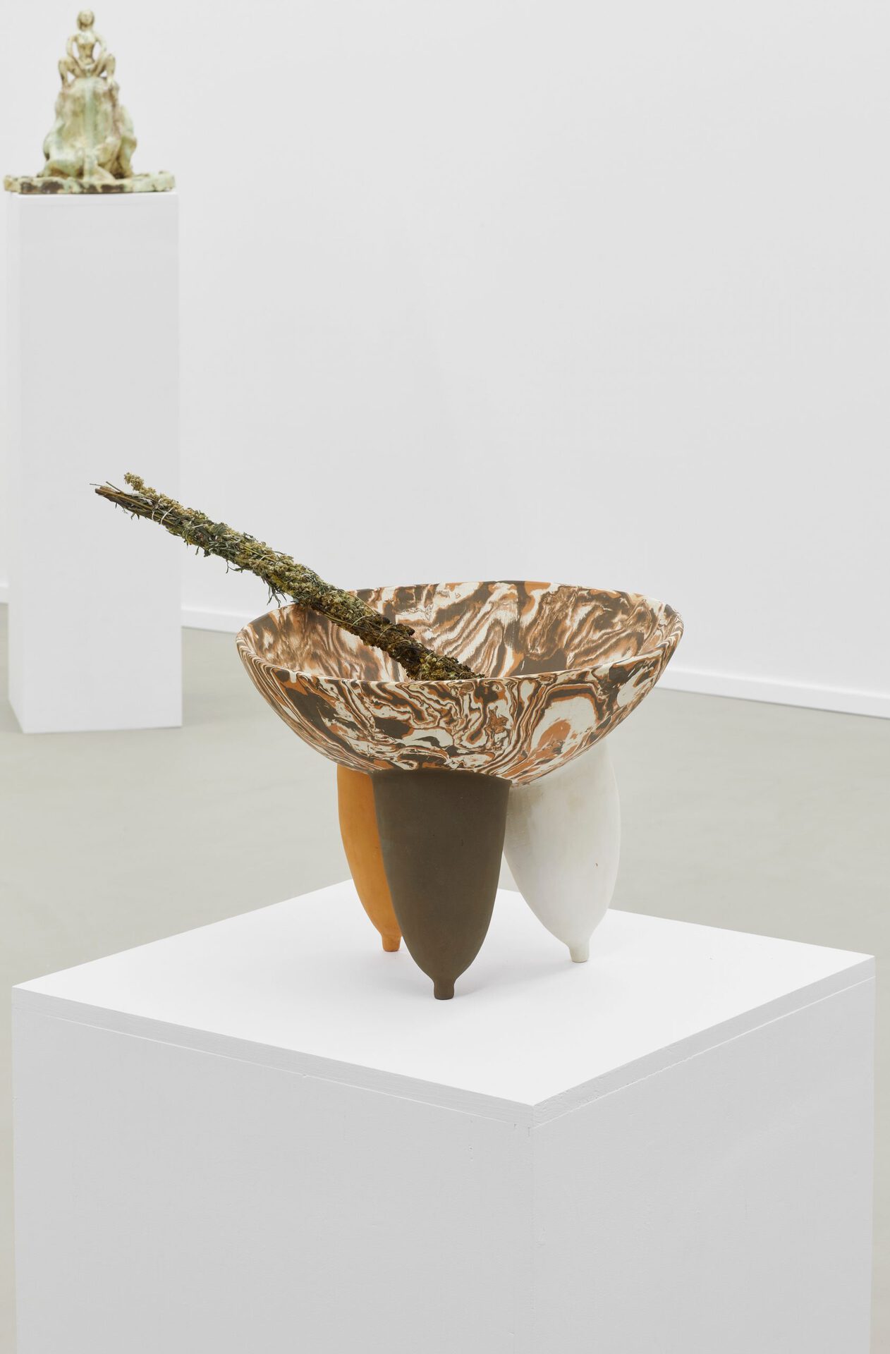 These works, incensers in primis, also call our attention to the necessity and need to care for oneself. Brzeżańska is interested in the plant world and appreciates the healing value of medicinal herbs which she knows well and cultivates. Choosing to create a tool in which to collect these herbs is also a way to allude to the possibility of actively relating to existence; to reiterate the importance of one’s autonomy, agency, and subjectivity.