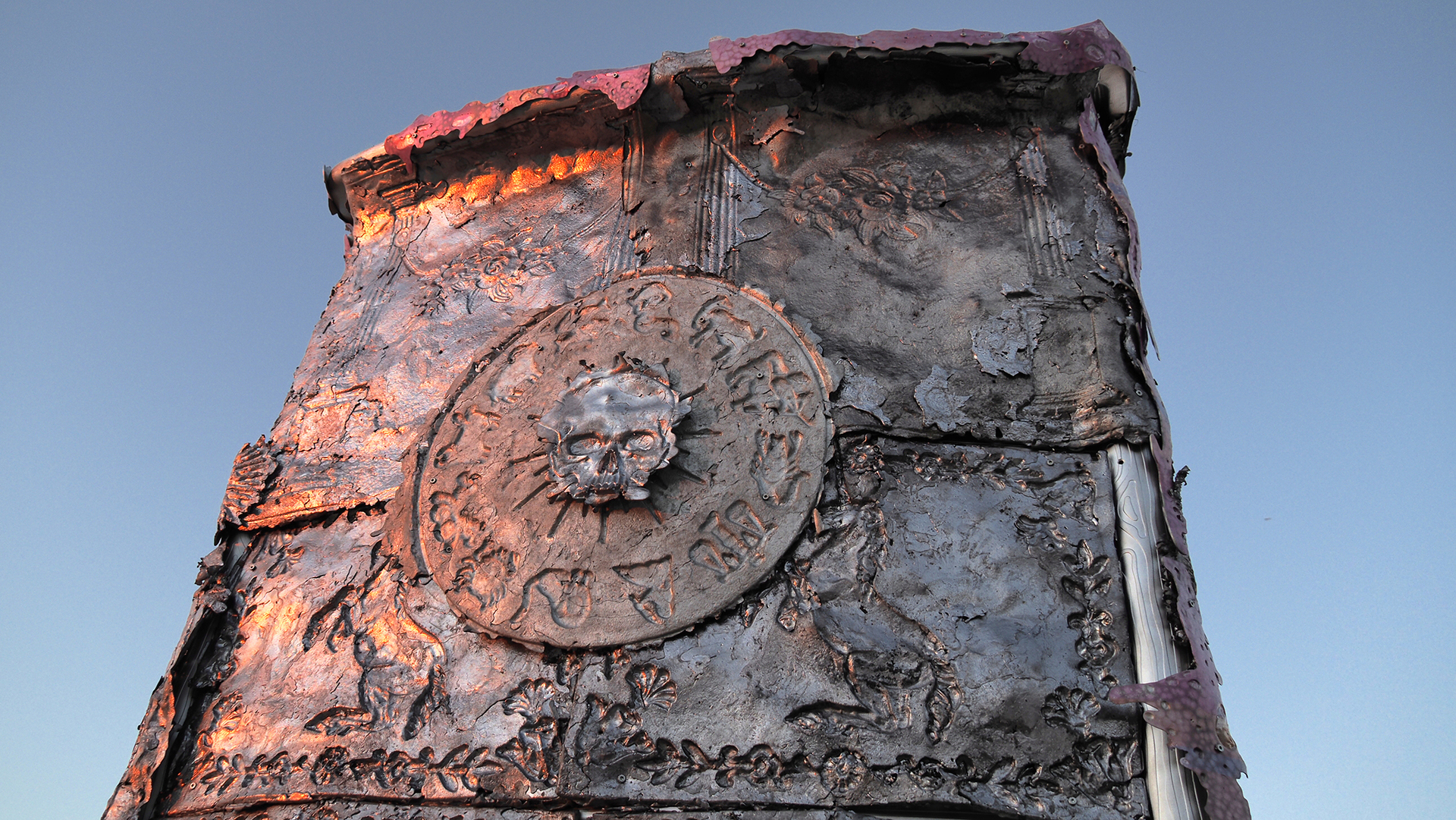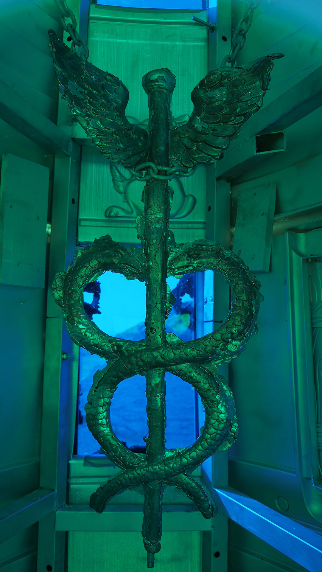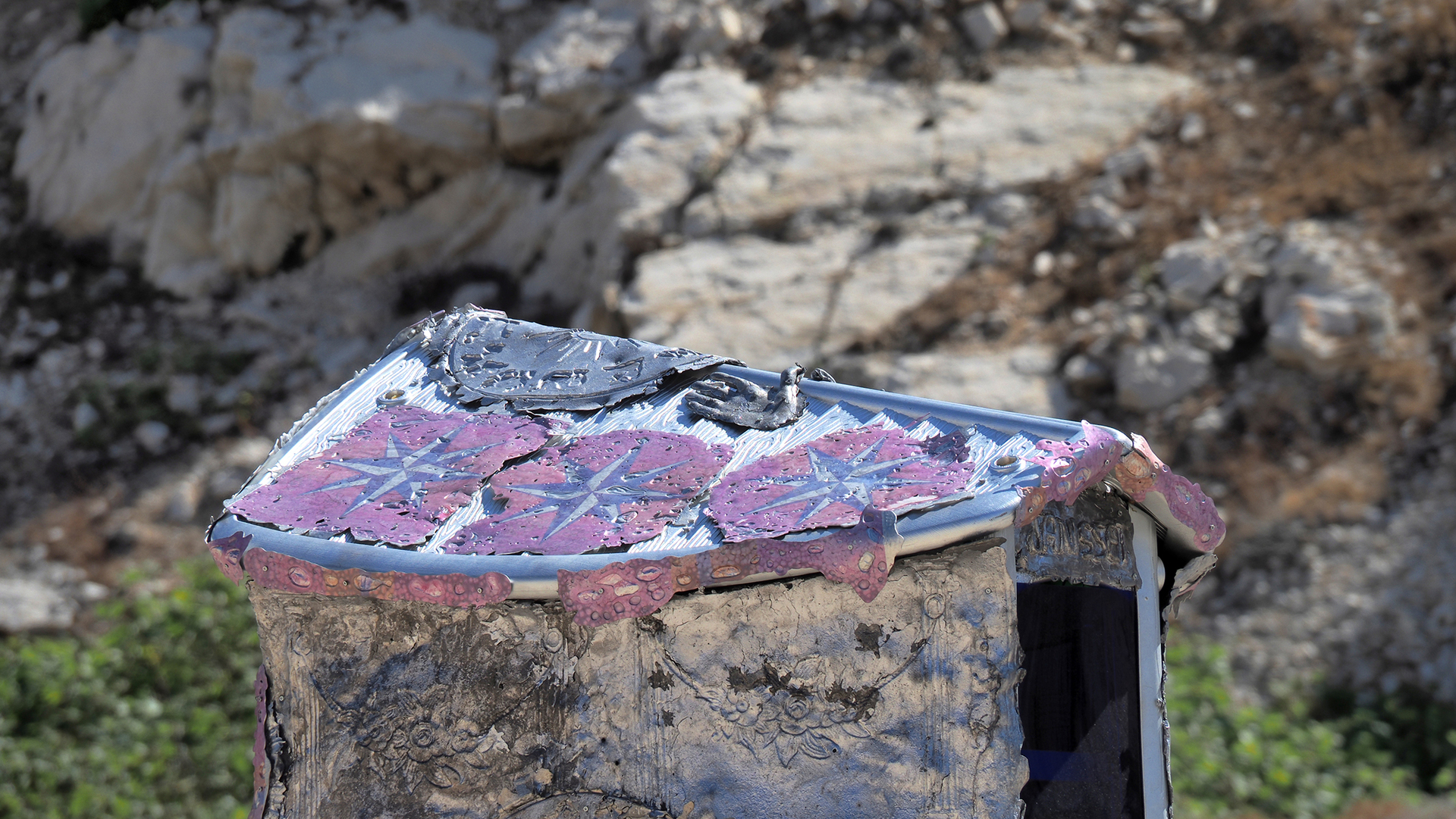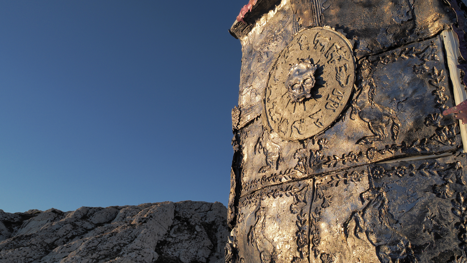 On this building, Jean-Baptiste Janisset came to place symbols and memories relating to different myths and religions. The most discreet of them is placed inside the monument. It is a seal of Saturn, a talisman that he himself made for its protective qualities and which he sleeps whit every day. All these objects are for him vectors of elevation. They motivate a finer consciousness and thus a dialogue with what he calls "the underworld".