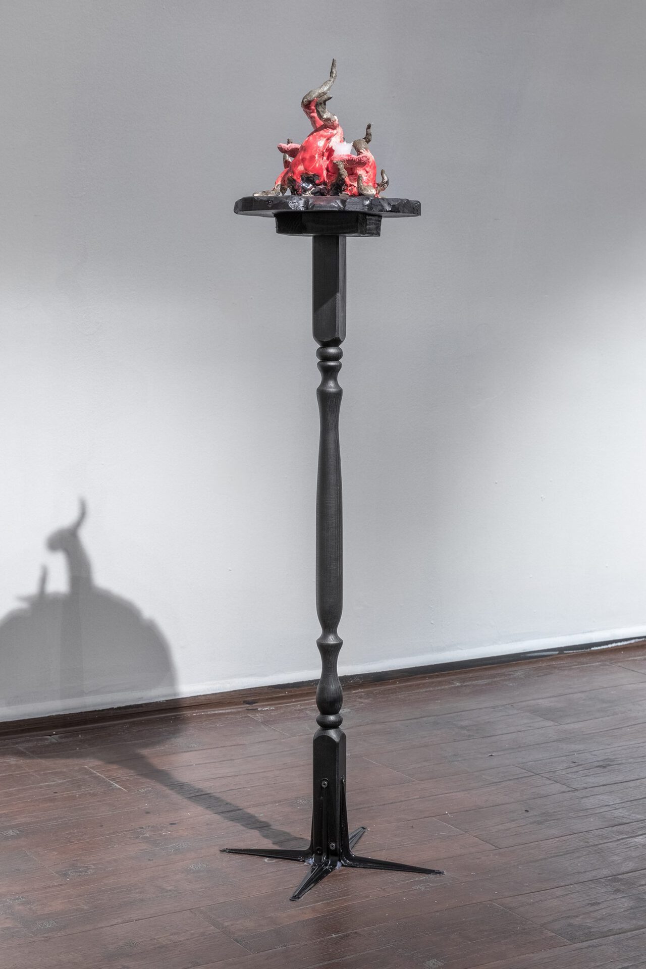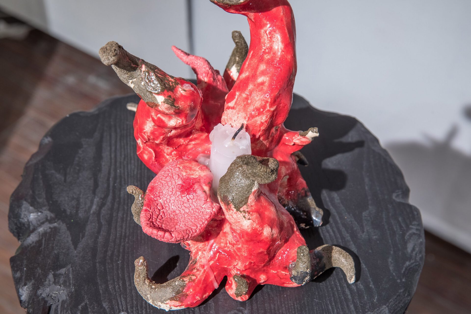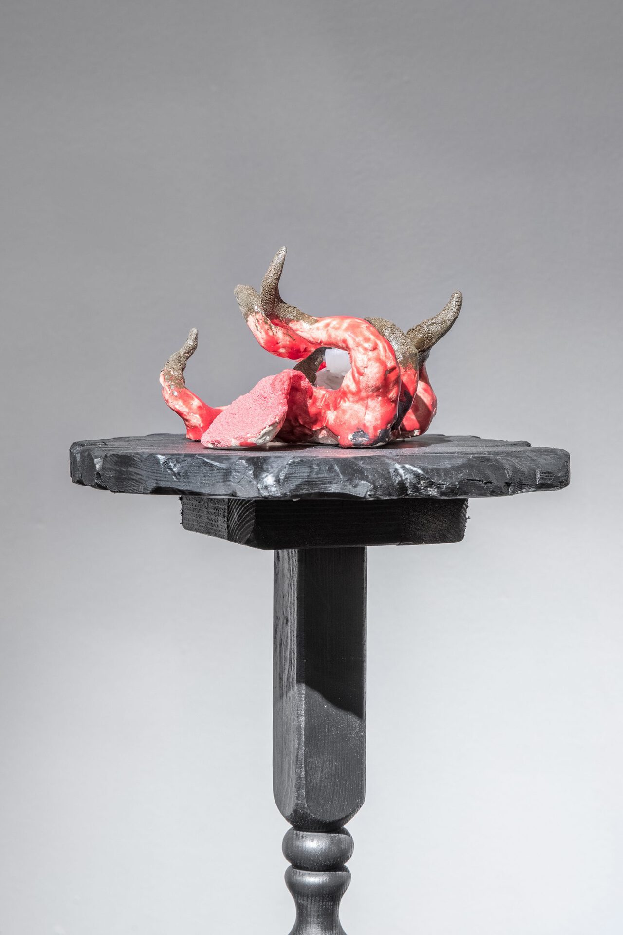 The antecedence of matter, the interconnection of animate and inanimate nature, alchemy and the cult phenomenon are the key themes Alexey Zhuravlev brings up in his Sticky Metal Cut project. The artist makes the case that objects of inorganic nature are a fundamental part of the human environment. Since humans tend to be anthropocentric, they deem alive only those natural objects whose essence resembles their own. Thus, the notions of animate and inanimate nature are only too relative. The artist explores both material as such and its decay process. Taking deconstruction as his approach, he seeks to subvert stable and specific interpretations of symbols. Here the author goes on a premise that symbols always allude to other symbols. The exhibition features styrofoam sculptures in mixed media, as well as ceramic and gesso art objects, drawings, paintings on cardboard, and prints on synthetic fabric. Oxana ChvyakinaText