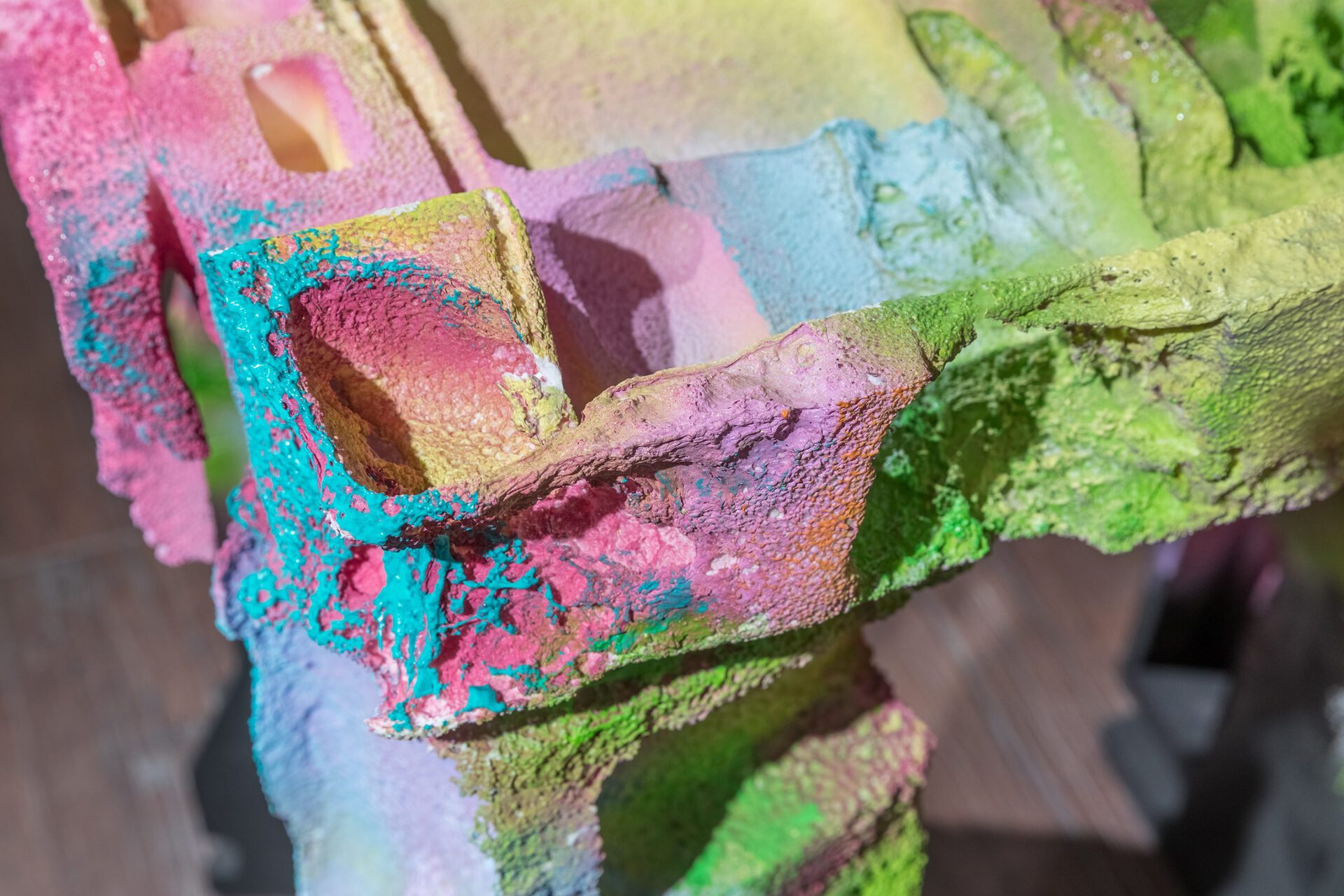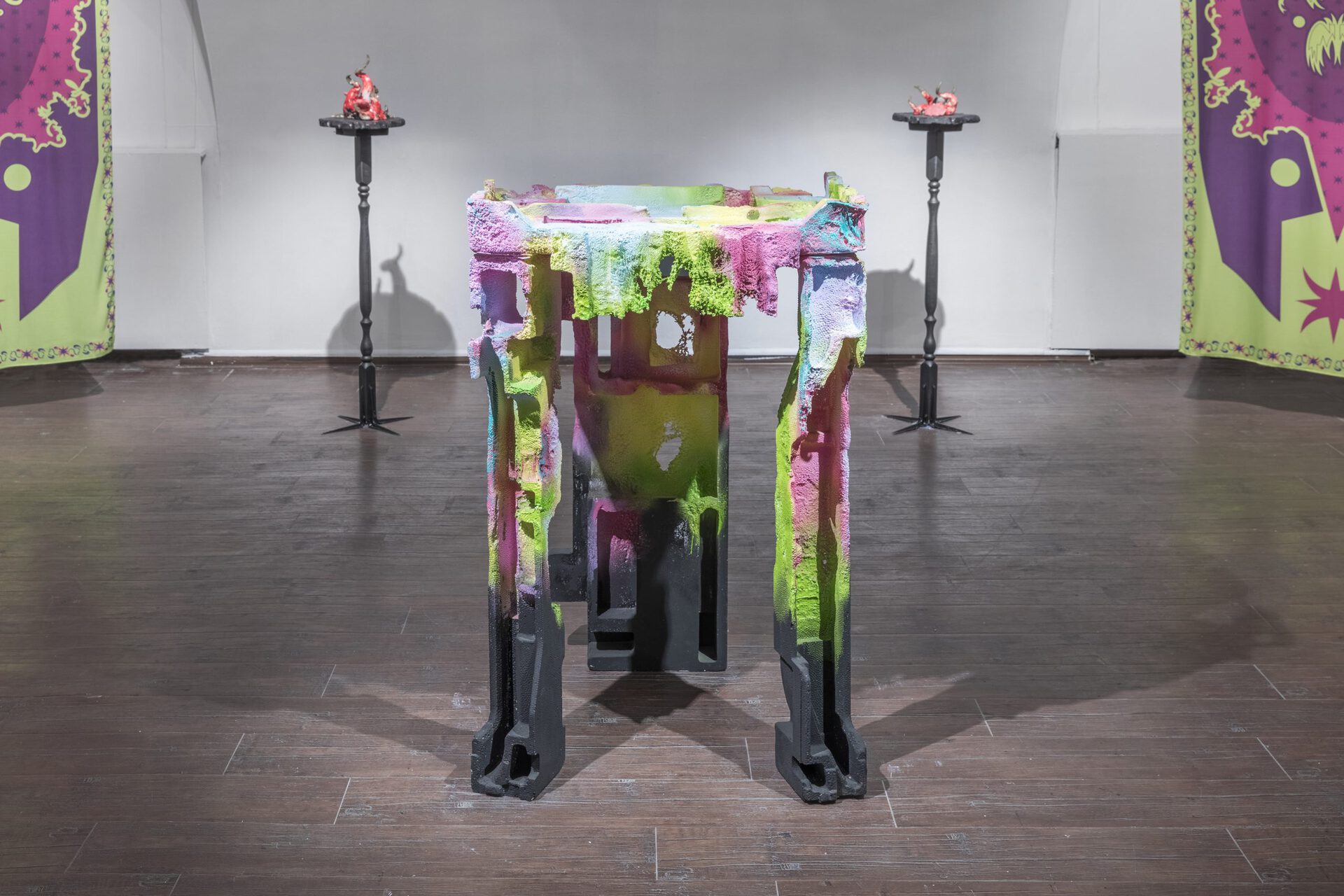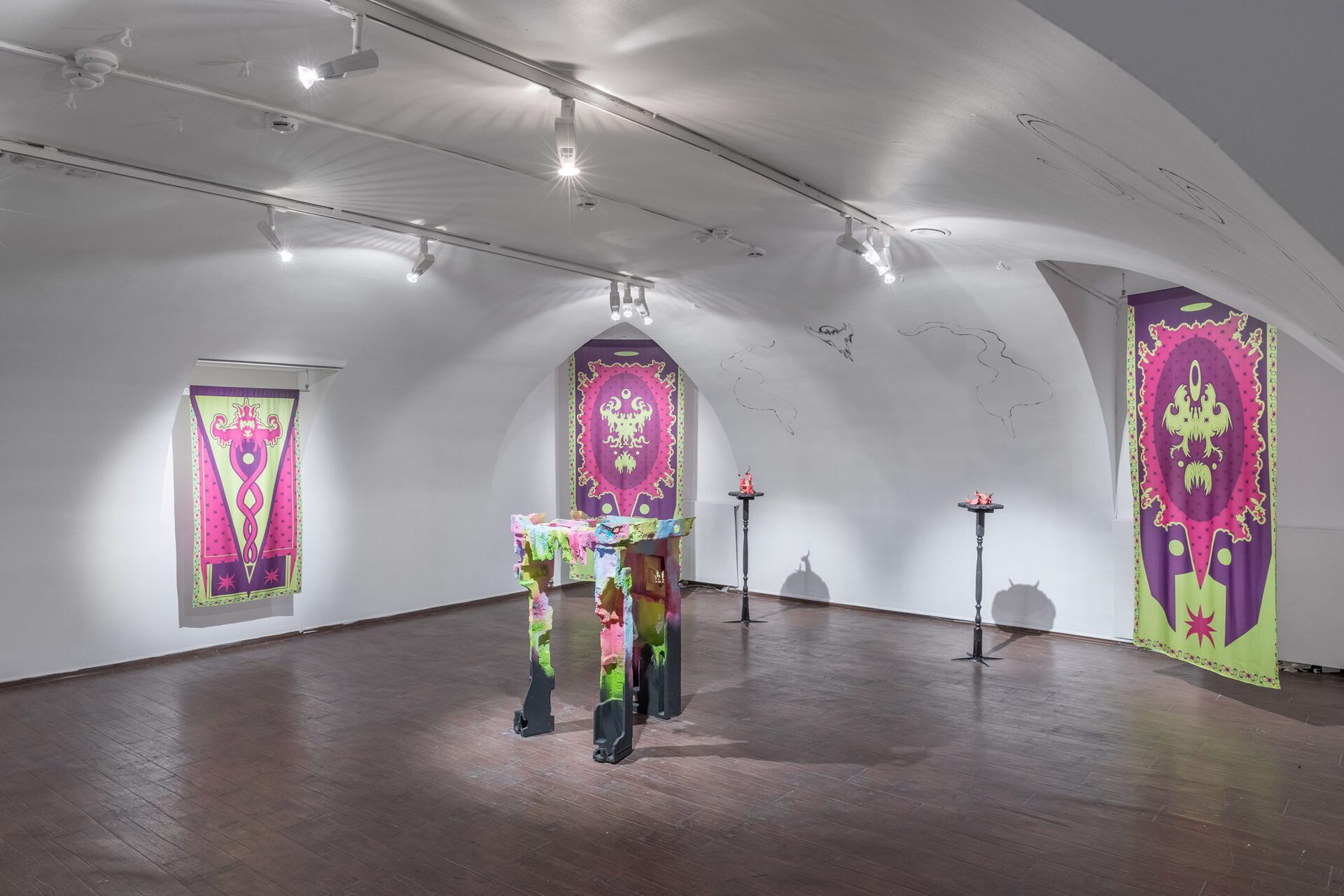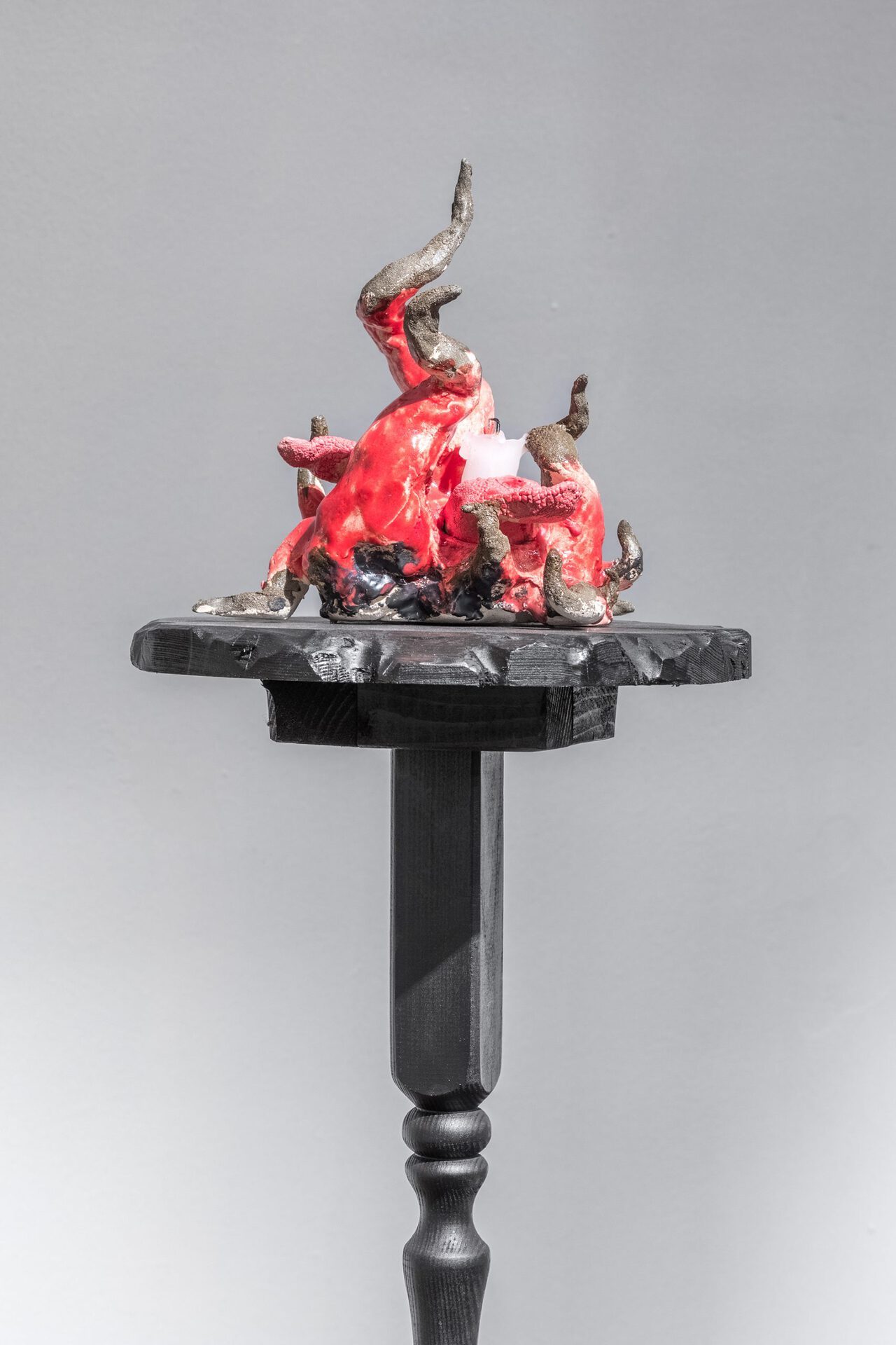 The antecedence of matter, the interconnection of animate and inanimate nature, alchemy and the cult phenomenon are the key themes Alexey Zhuravlev brings up in his Sticky Metal Cut project. The artist makes the case that objects of inorganic nature are a fundamental part of the human environment. Since humans tend to be anthropocentric, they deem alive only those natural objects whose essence resembles their own. Thus, the notions of animate and inanimate nature are only too relative. The artist explores both material as such and its decay process. Taking deconstruction as his approach, he seeks to subvert stable and specific interpretations of symbols. Here the author goes on a premise that symbols always allude to other symbols. The exhibition features styrofoam sculptures in mixed media, as well as ceramic and gesso art objects, drawings, paintings on cardboard, and prints on synthetic fabric. Oxana ChvyakinaText