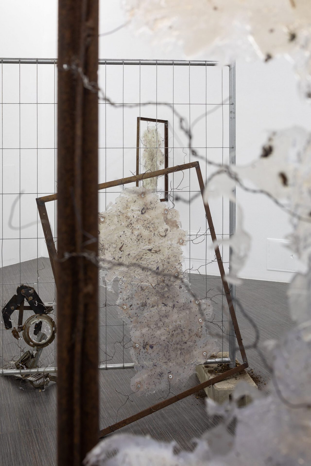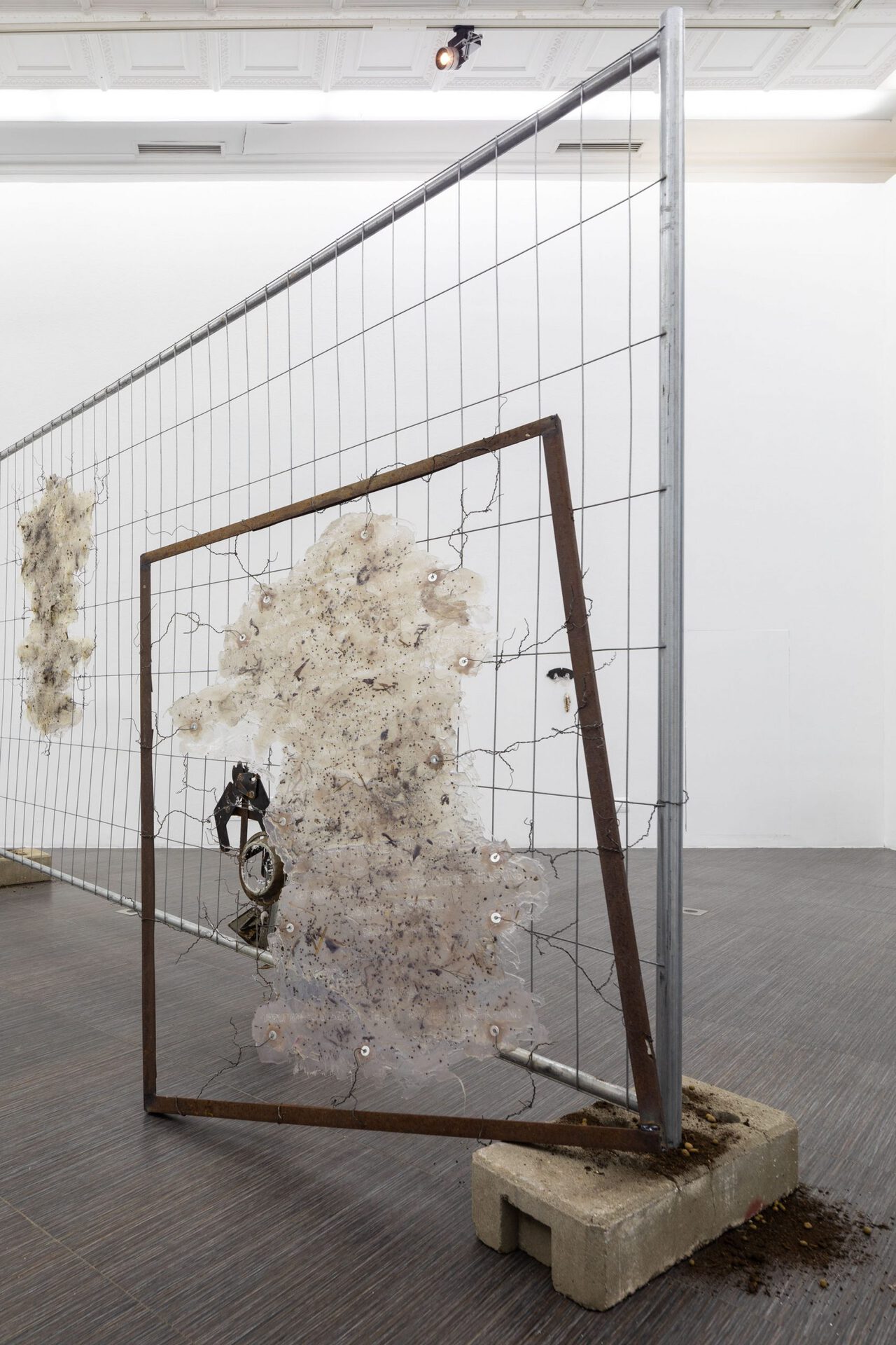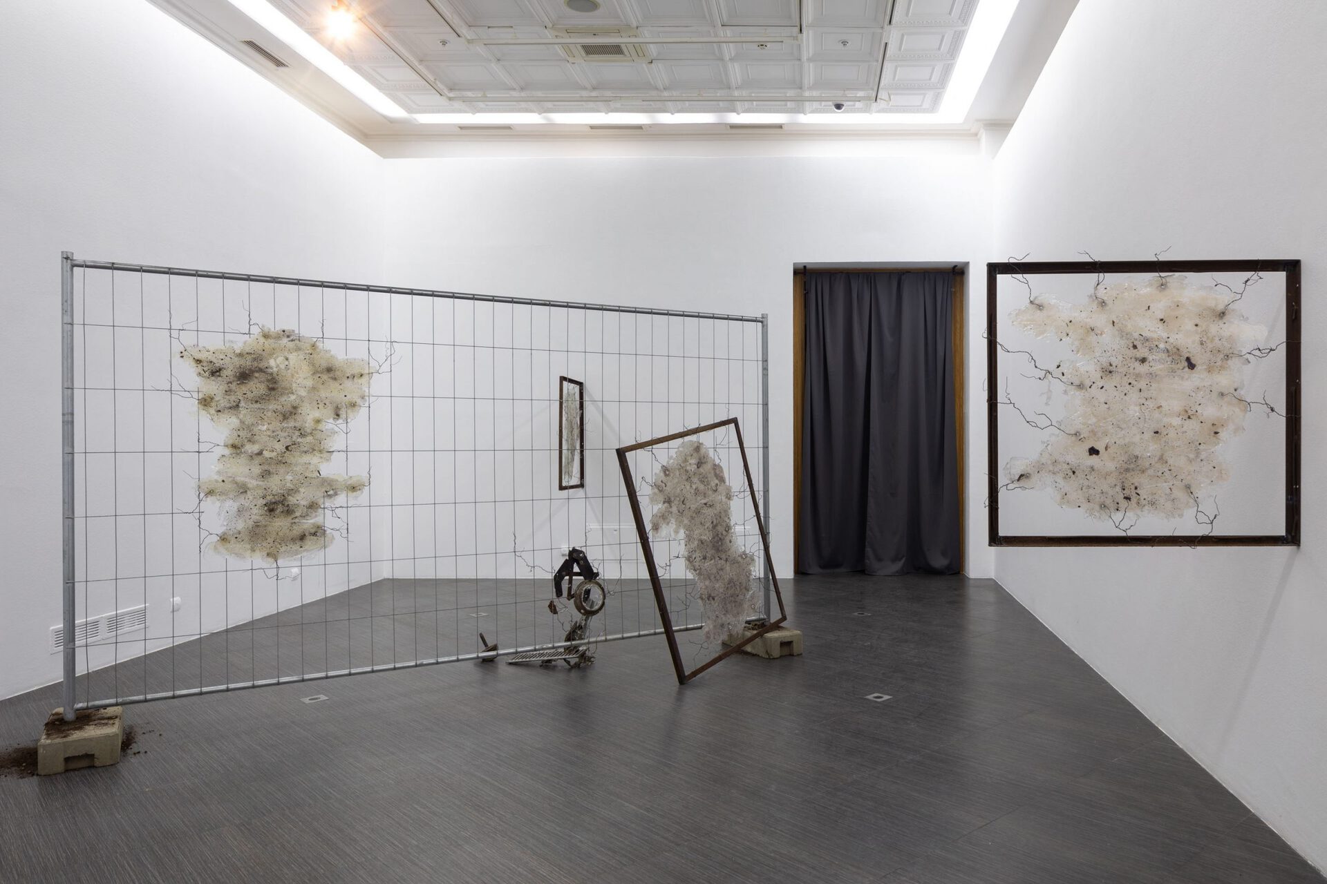 “Stone Dilapidation - Bodily Viscosity” is quite a personal but at the same time very political project. Its' core fueled by a poetical play, dedicated to such ambiguous topics as mortality and limits (their absence) between continuous and temporary. The main actors of the play are abstract structures such as Sponge Cake, Broken Smartphone, Wooden Barque, Wandering Promise, Death, Hyperlink, Shooter, and Slap In Your Own Face. They auratically represent voices of social norms, political statements, prejudice, and suppression. As they are not vocalized, they become an itching schizophrenic monologue in a viewer's head. Taken as a whole the project is an attempt to emancipate a voice of one through the fermenting multitude of psychosomatic mutations.