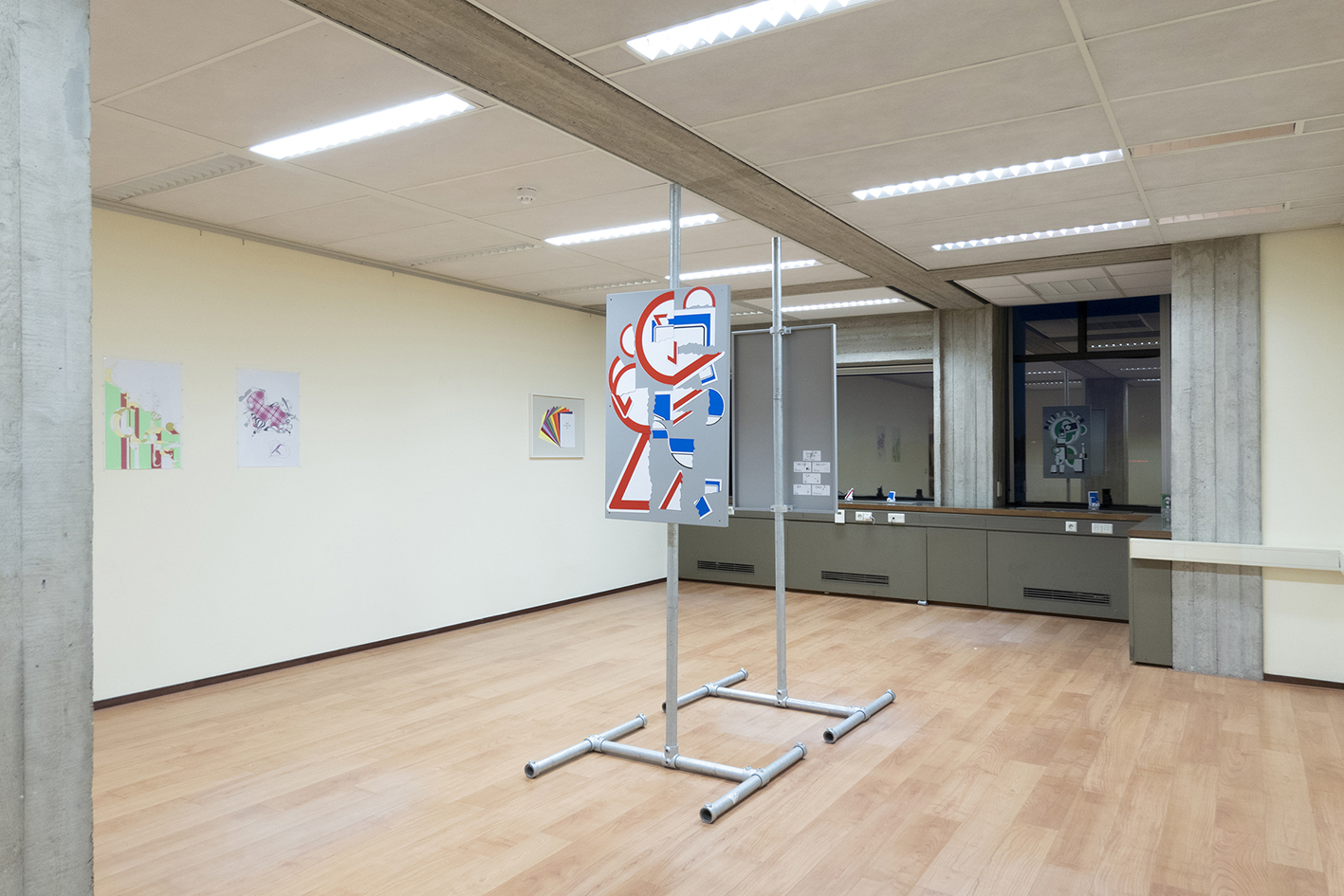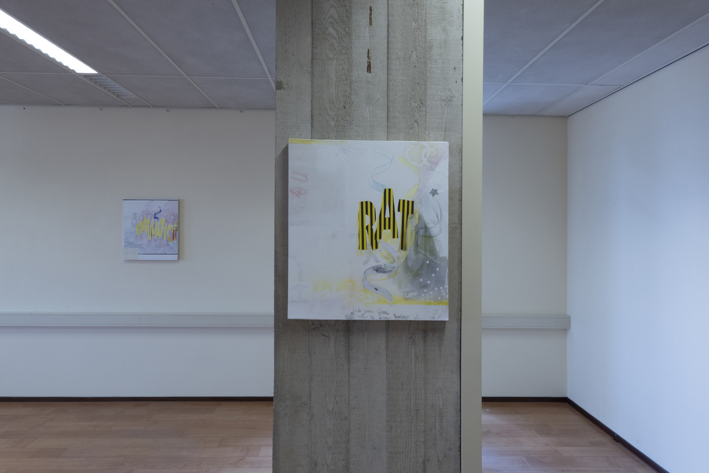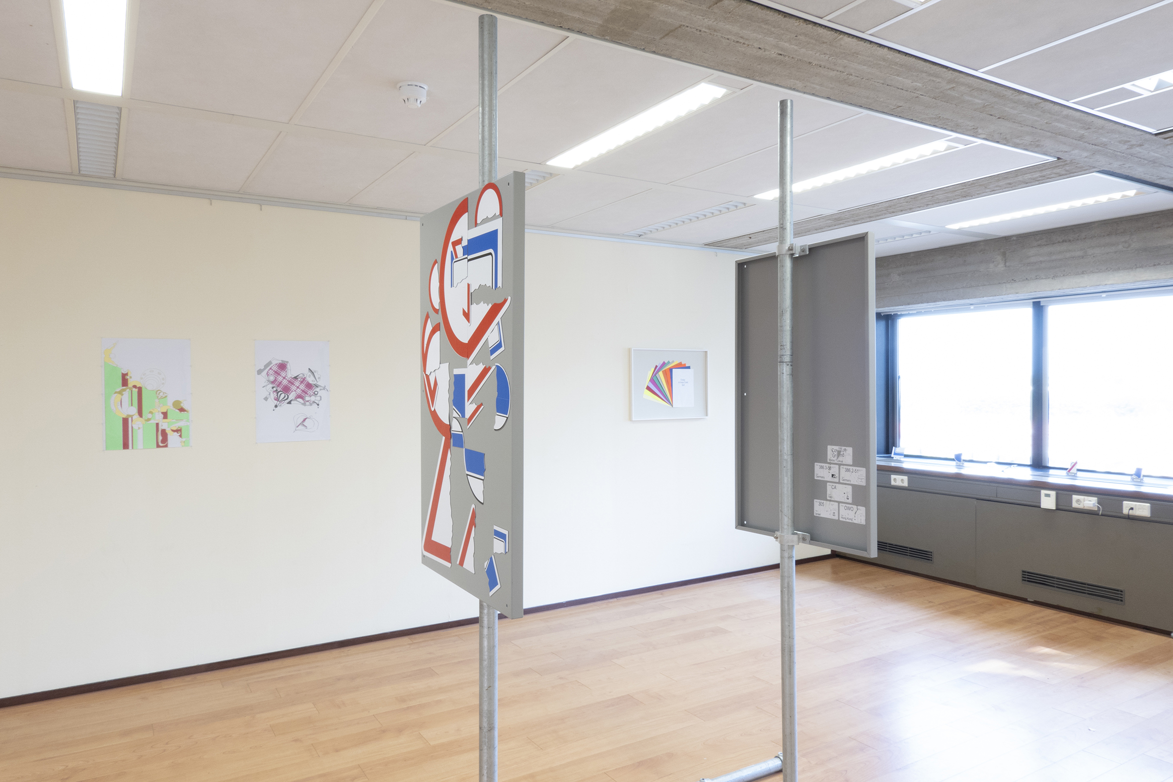 Installed in a corner office of the former district court of Amsterdam, w(,)s(â)u(!) brings together this smaller group who are not native to, but have spent a period of time based in The Netherlands. The works seem to demonstrate a pedagogy of blurred codes in contemporary art and design, or at least a contemporary fluidity of reading image and language beyond fixed values of âhighâ art. The nihilistic undertone of signs beyond comprehension is tempered by the keenness to display the craft, and deliberate movements away from monumentality.