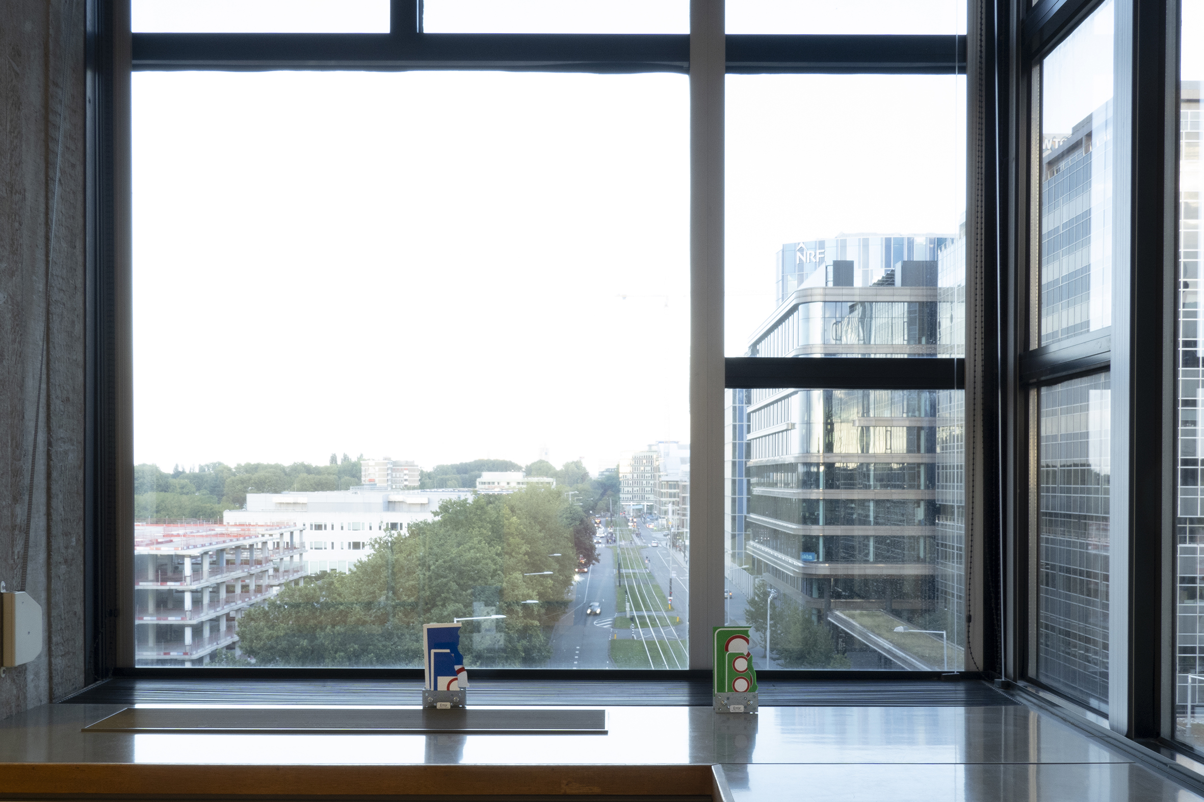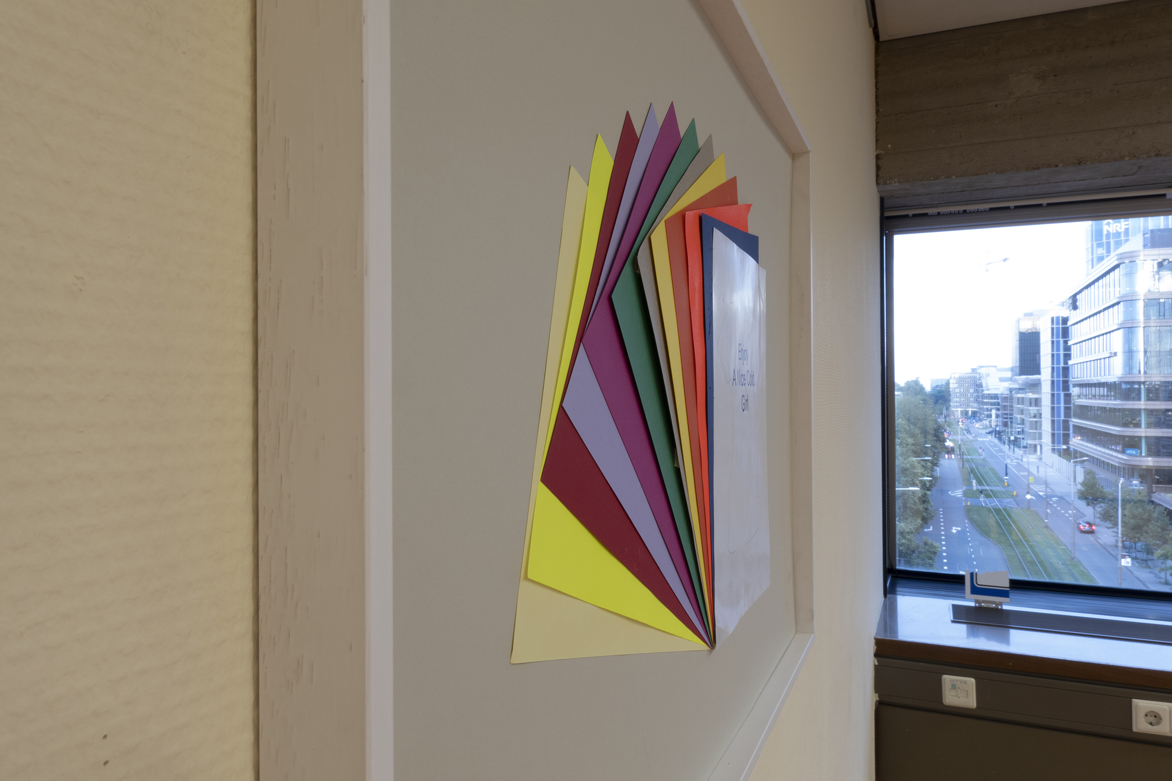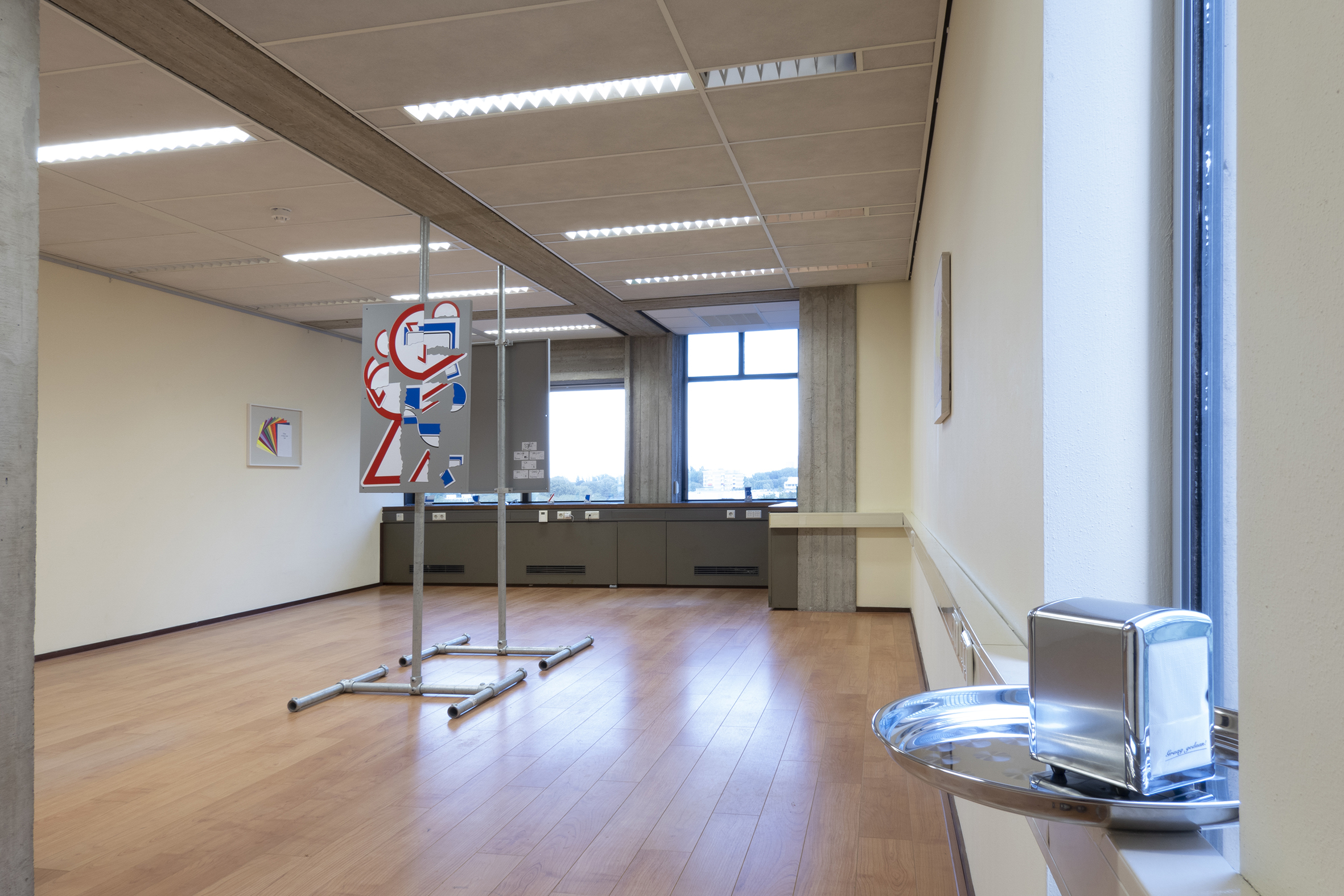 Installed in a corner office of the former district court of Amsterdam, w(,)s(â)u(!) brings together this smaller group who are not native to, but have spent a period of time based in The Netherlands. The works seem to demonstrate a pedagogy of blurred codes in contemporary art and design, or at least a contemporary fluidity of reading image and language beyond fixed values of âhighâ art. The nihilistic undertone of signs beyond comprehension is tempered by the keenness to display the craft, and deliberate movements away from monumentality.