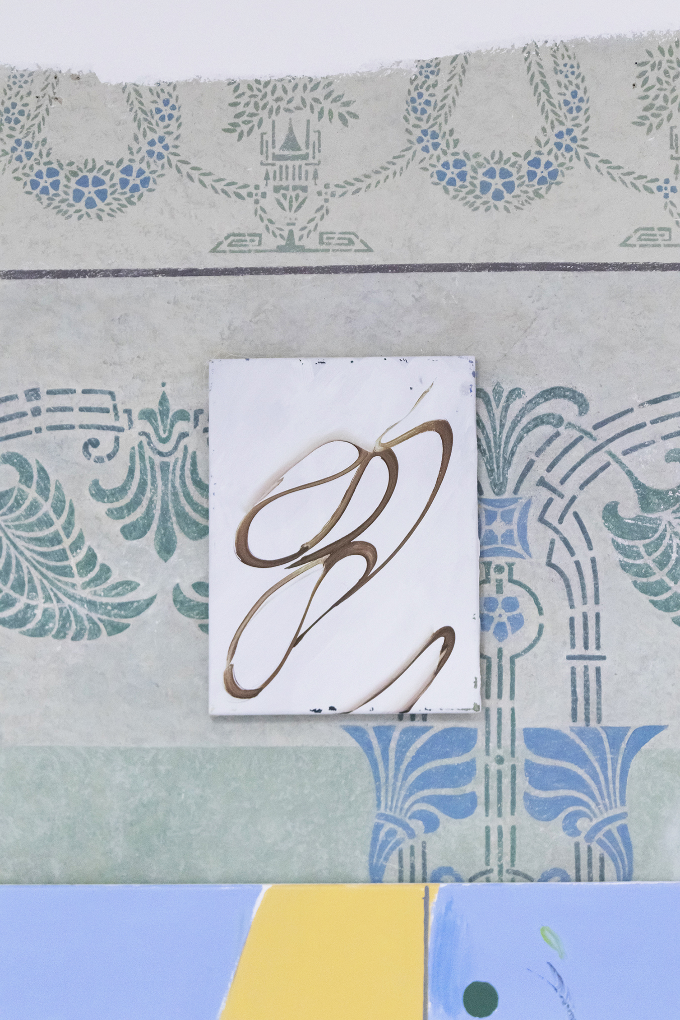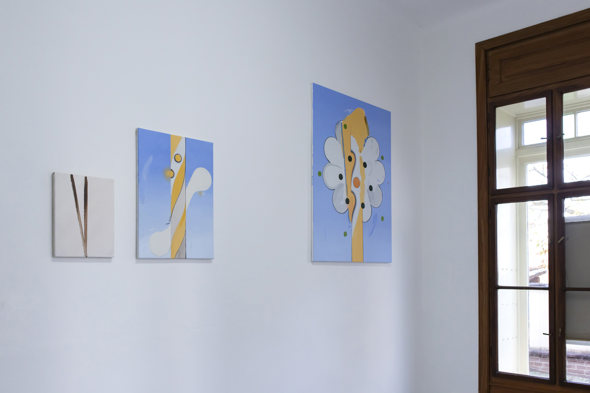 Tomáš Absolon, one of the prize-winners in the Critics’ Prize for young painters 2016, has recently been examining the ambivalence between the concrete and the abstract. This is no idle fascination. He is inspired by graphemes that can operate on the pictorial surface in a similar way to fragments of text in synthetic cubism, in that they retain a contact with reality in the midst of an abstract image field.