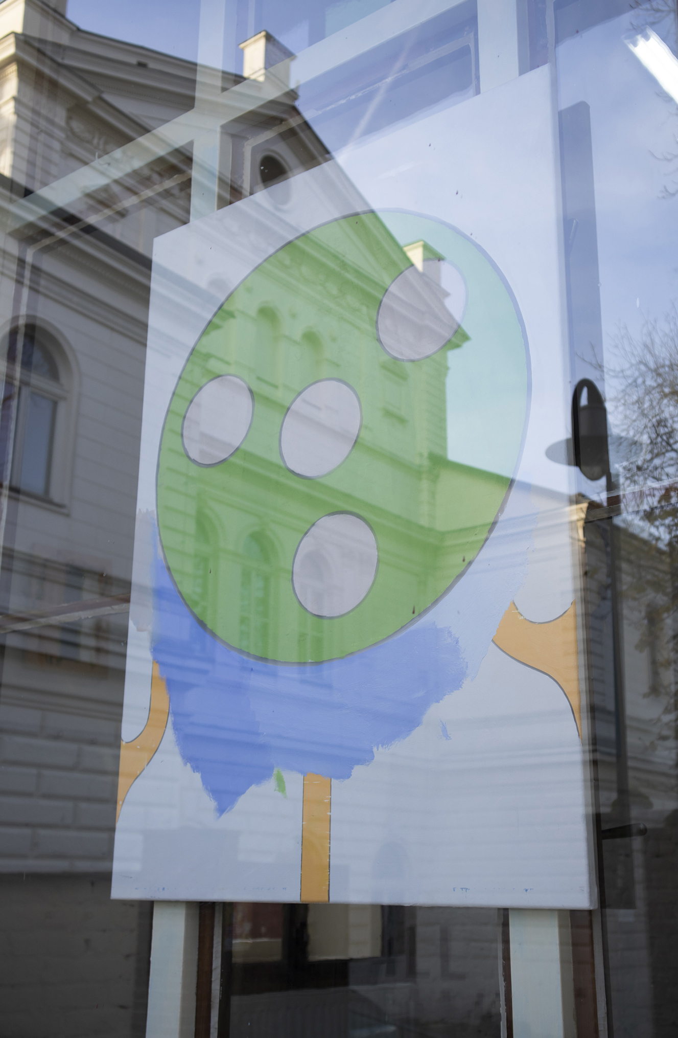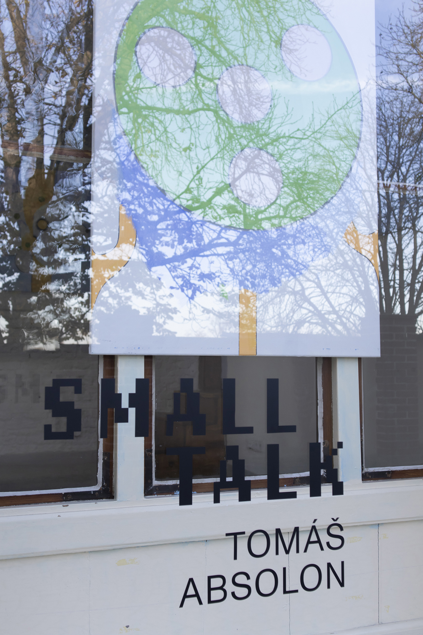 Absolon also finds inspiration in the poster, both its rich tradition and its uncertain present. Given the way he fills large space with colour one might suspect a reference to pop-art and screen printing, as well as to technical images produced by Adobe. In other words, the thematisation of typography and graphic design in the medium of painting might be an original way of re-evaluating and verifying its tradition and its potential for further development. We can also interpret Absolon’s pictures as an attempt to come to terms with the current typographic smog, the chaos of inscriptions, texts and notifications that for the most part lack any hint of compliance with basic aesthetic rules.
