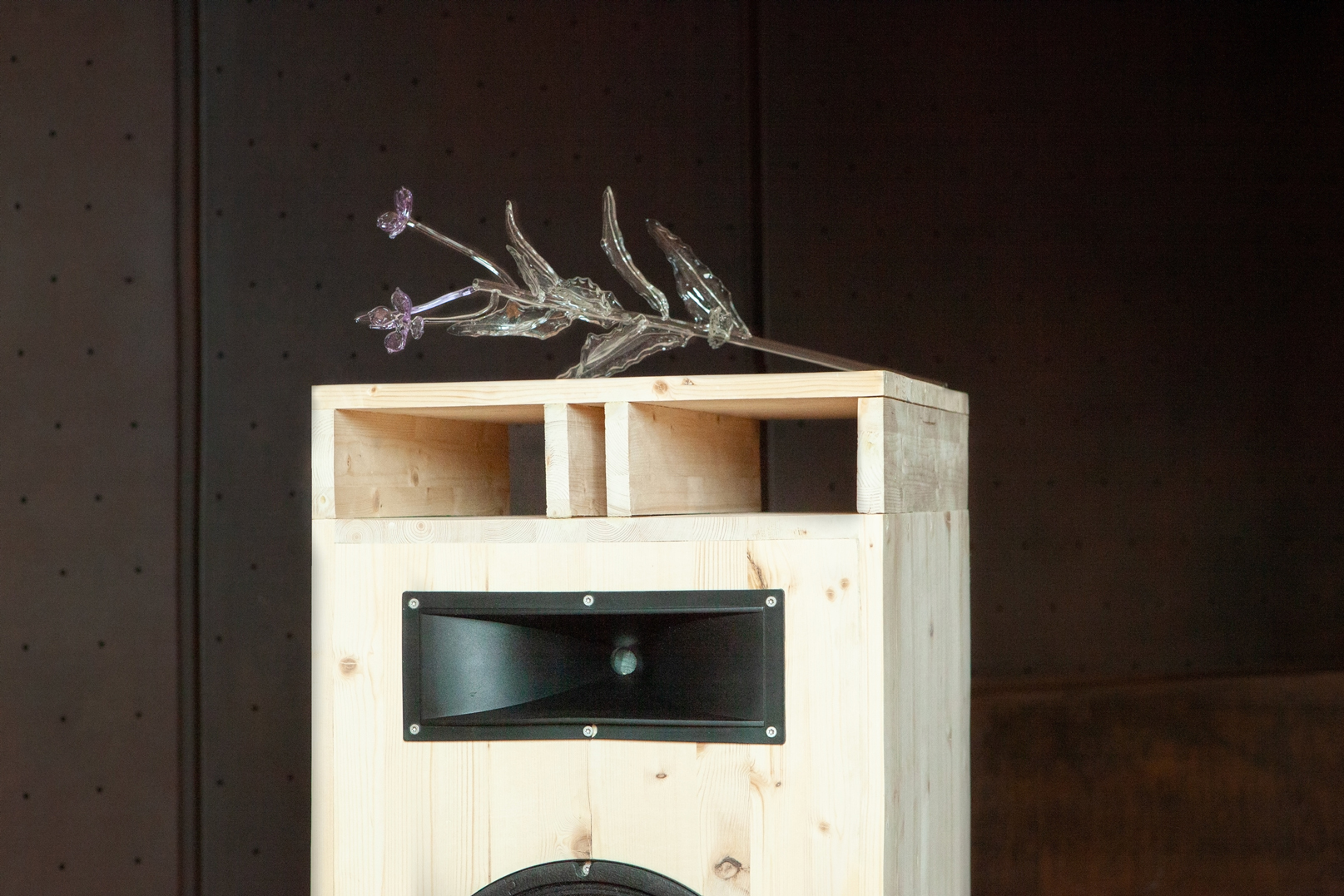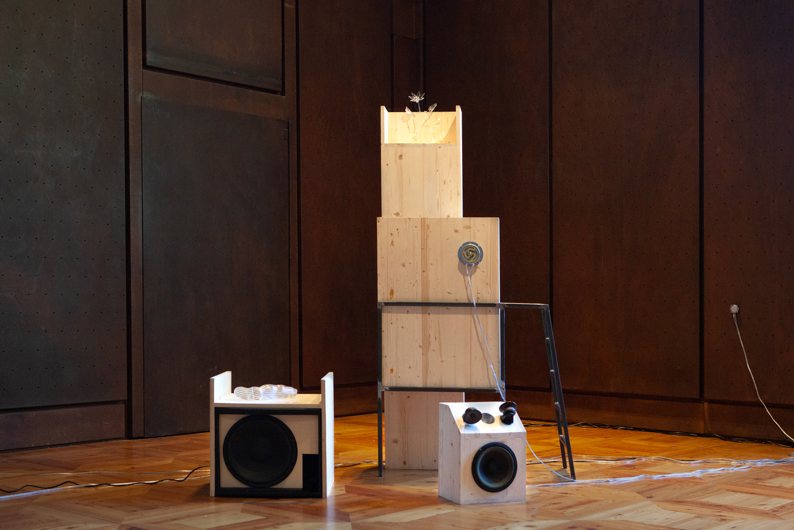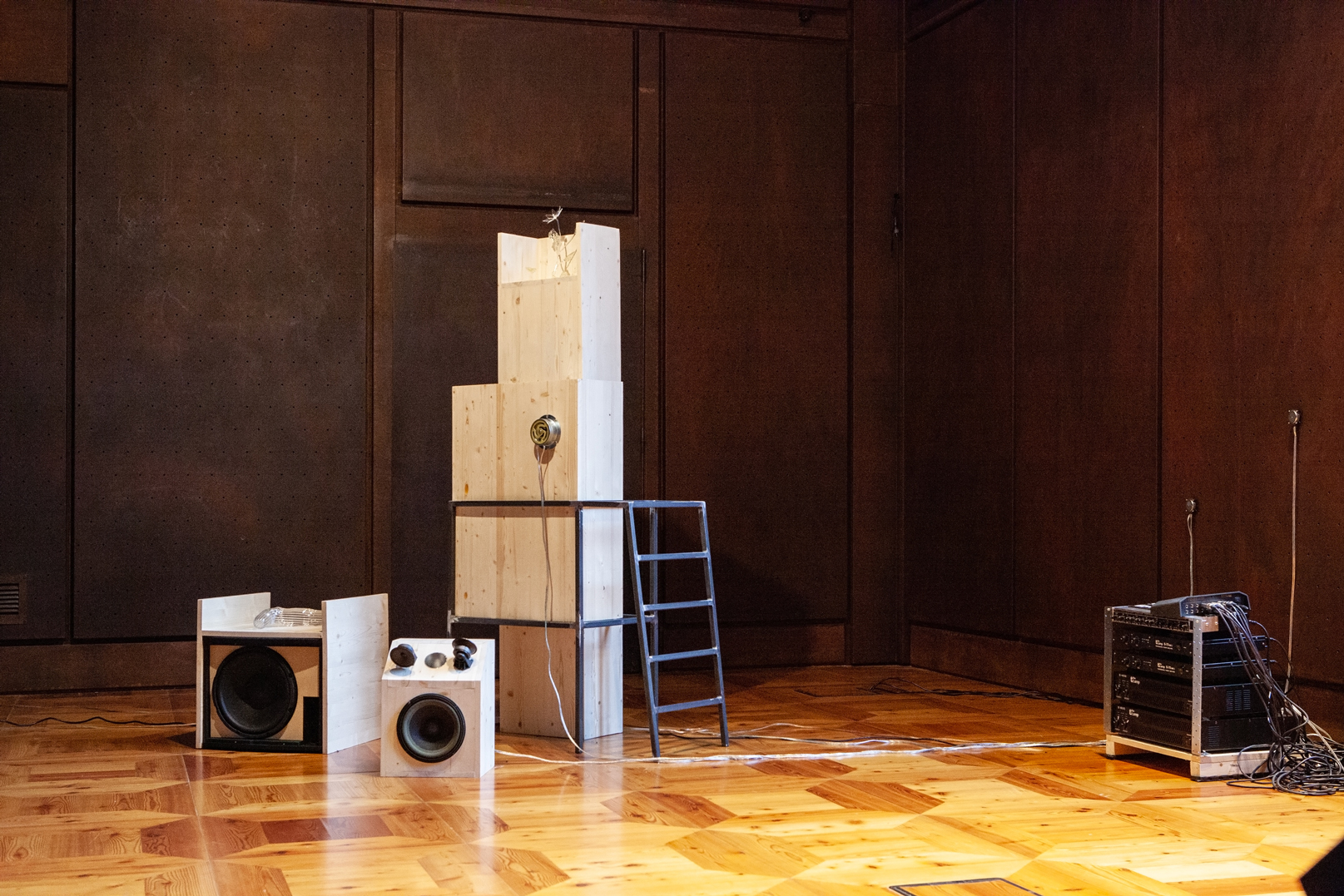 The exhibition is configured as a visual and auditory reflection on the phenomenon of the melting of glaciers and the rapid transformation of the Alpine ecosystem, and it consists of a series of new sculptures. Displayed in the space as listening and viewing hubs, the sculptural elements function as points of emergence – “stations” in close dialogue with the verticality of the museum’s architecture, accompanying the viewer inside an open itinerary, where the museum rooms act as a voluminous sounding board that “amplifies” the idea of the mountain landscape.