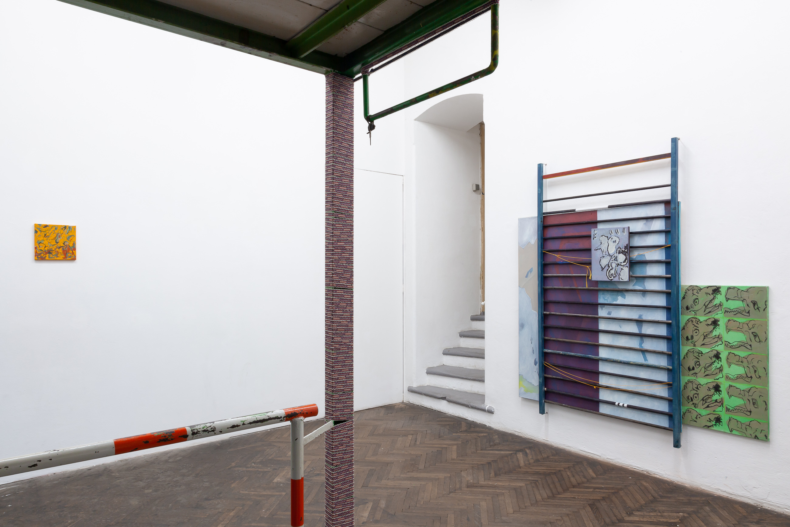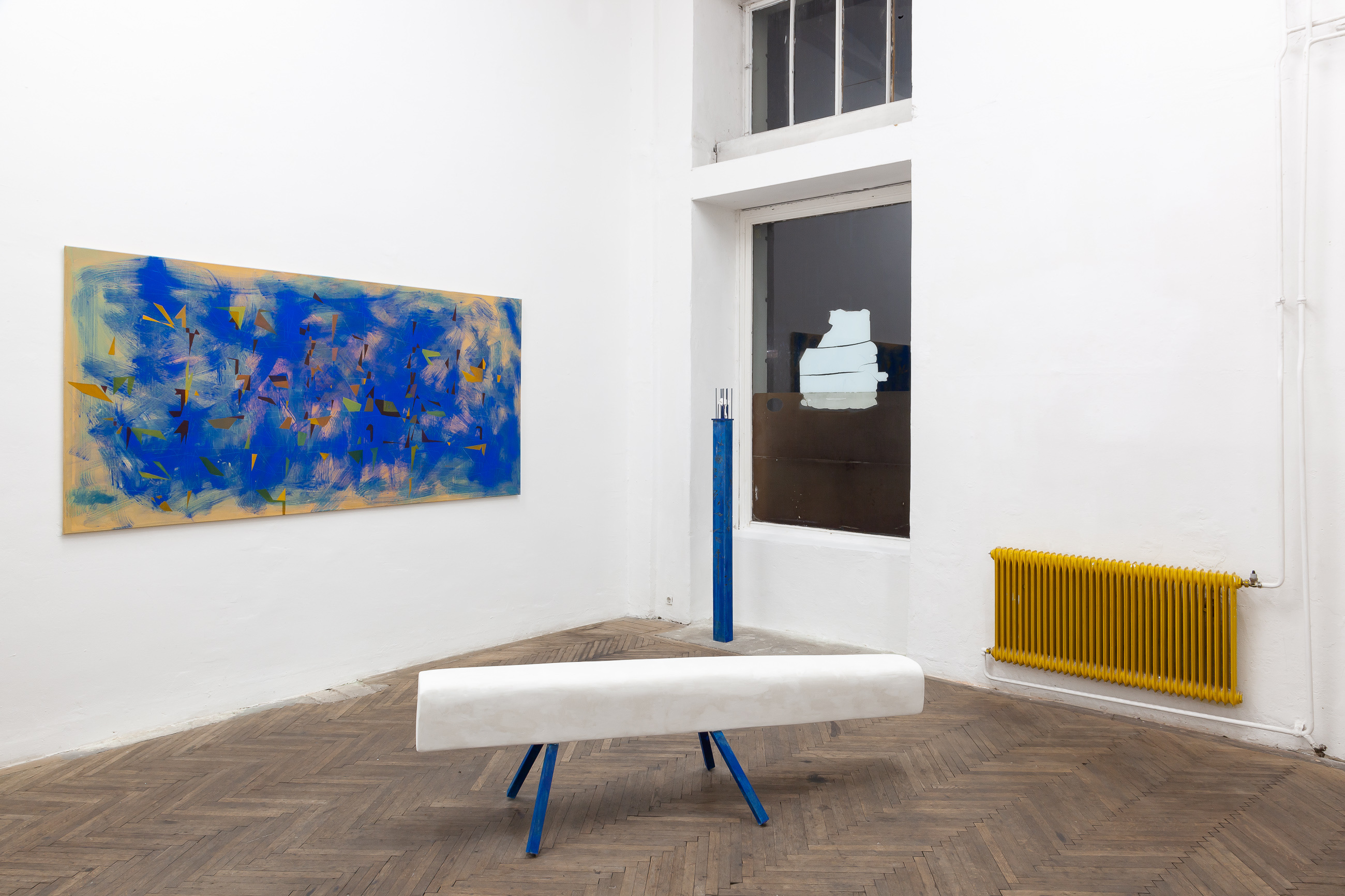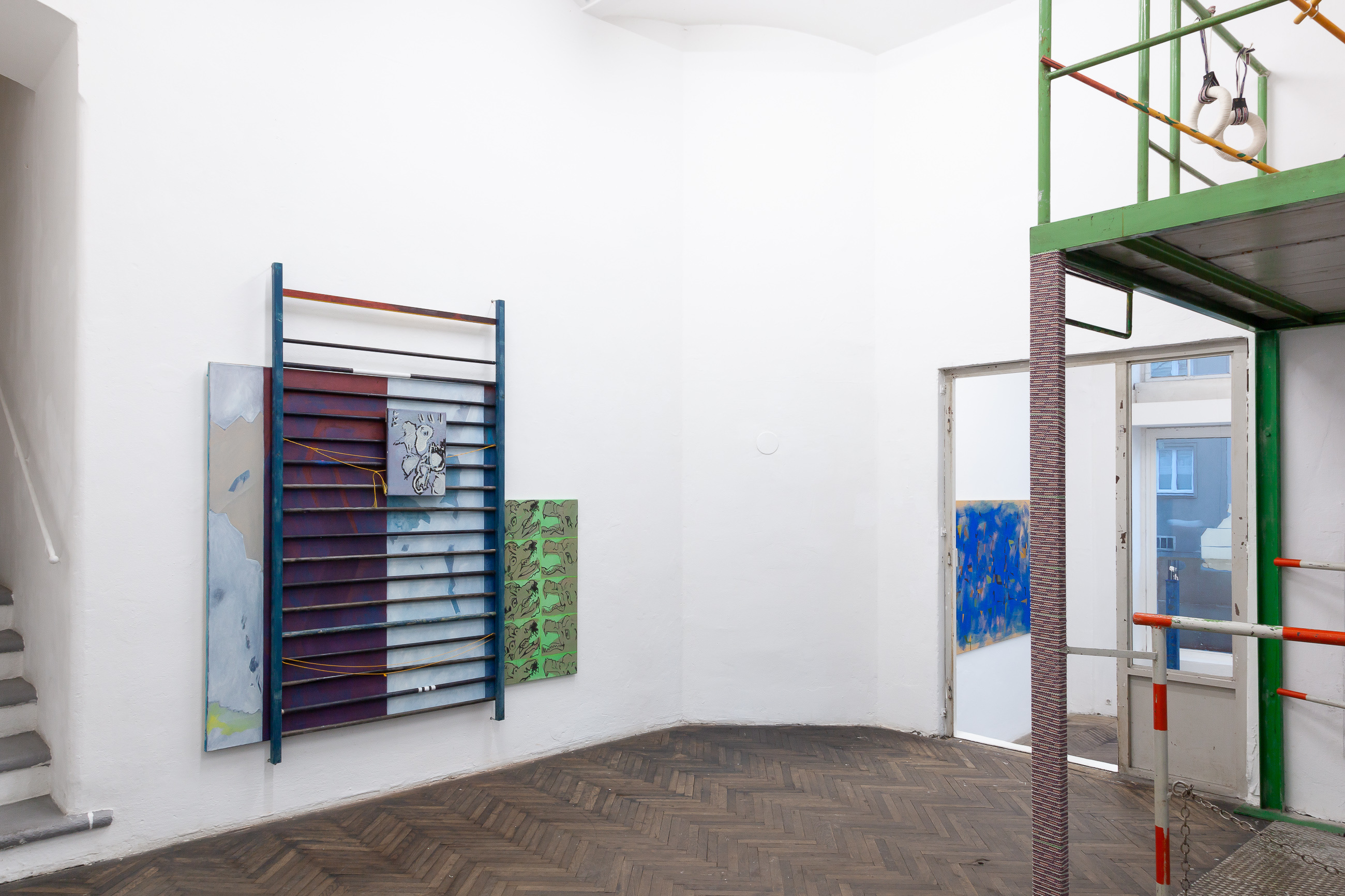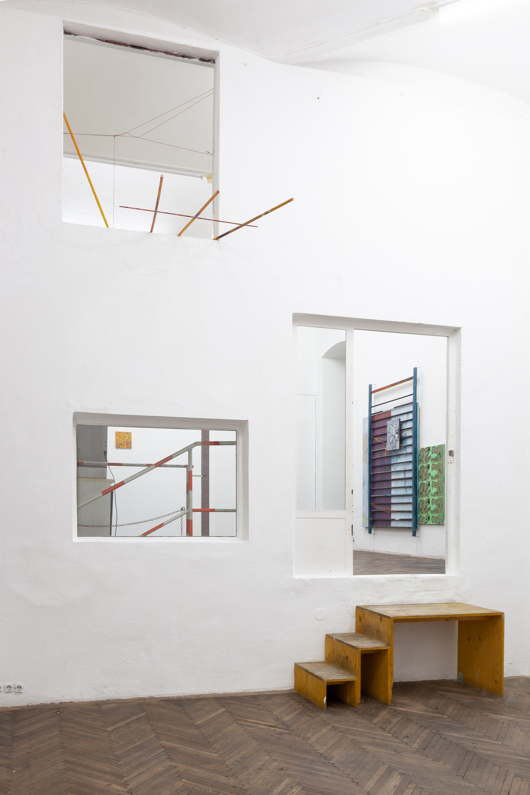 A finished basement or a gallery with a high ceiling works to ensure that the artist