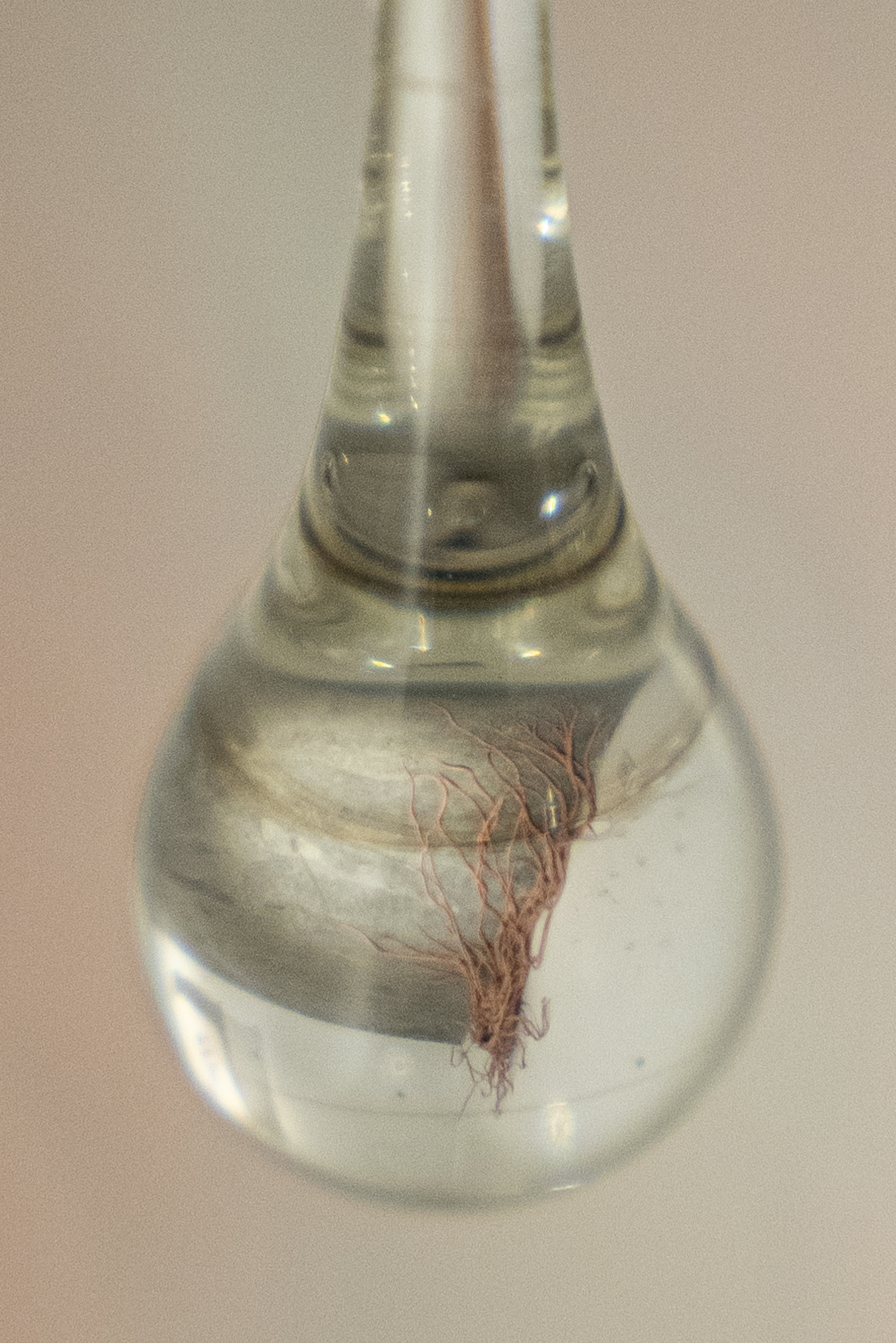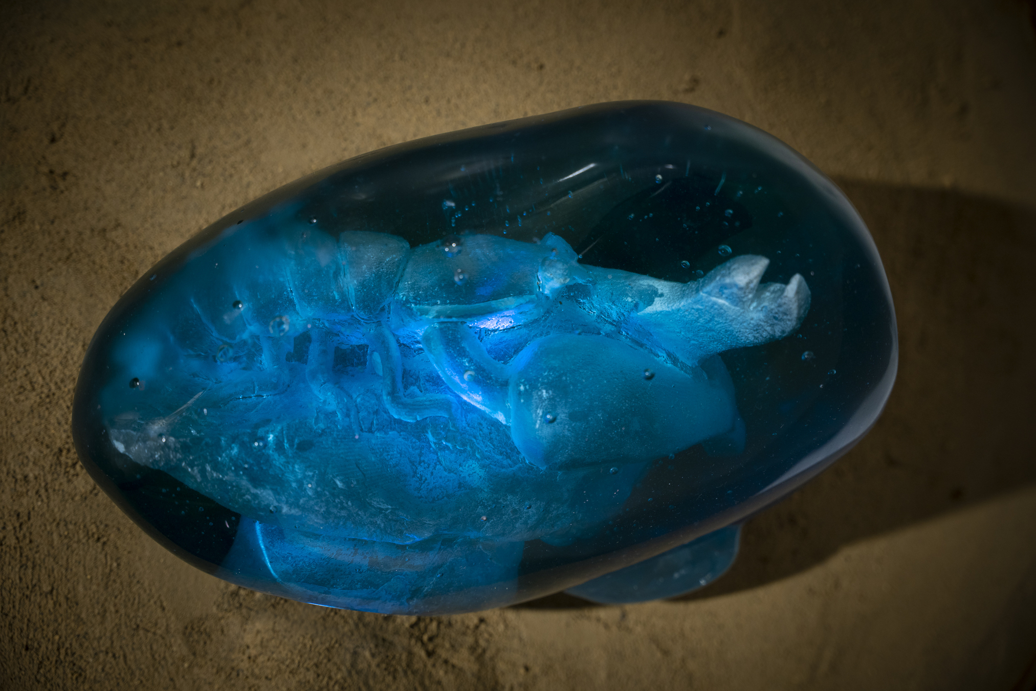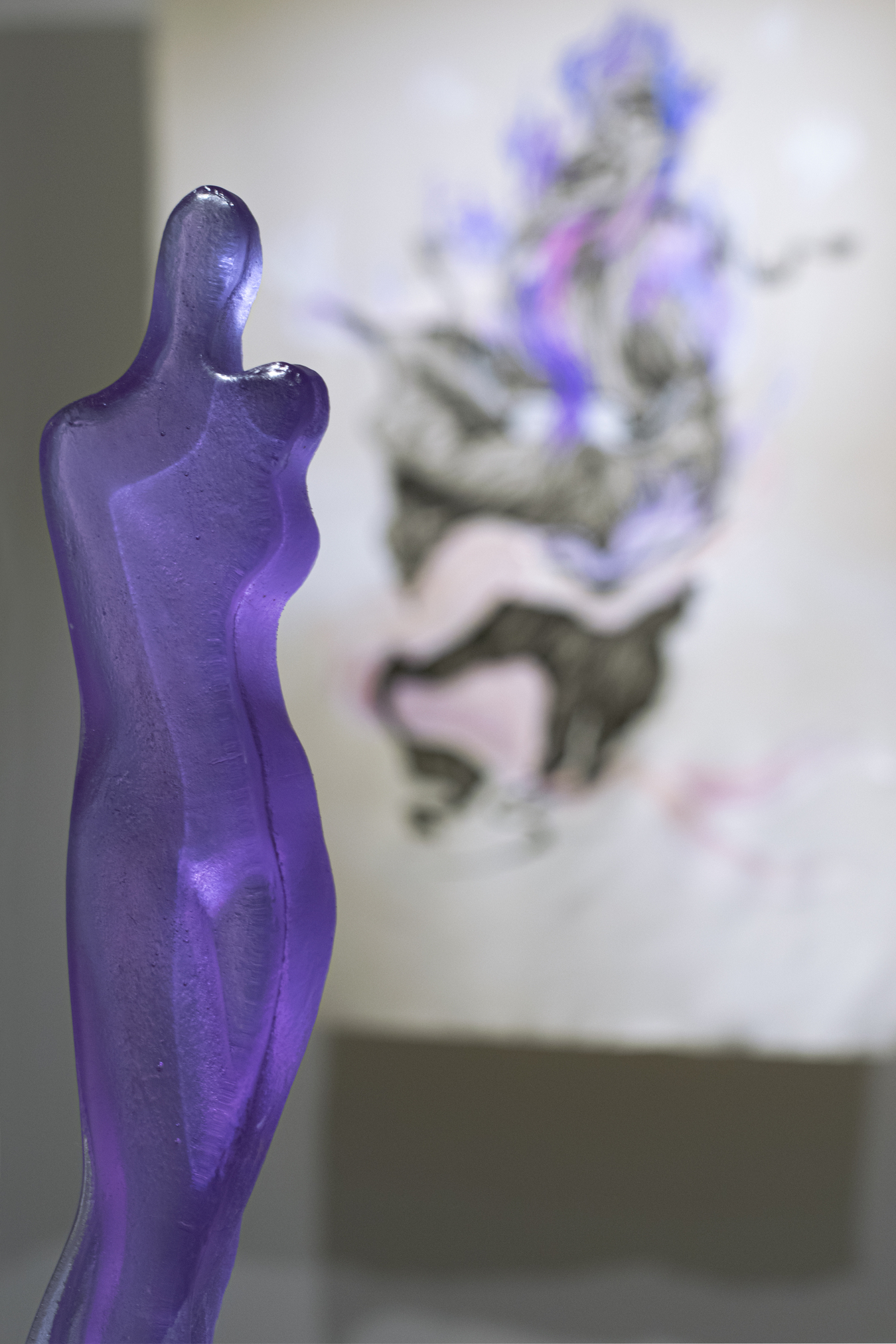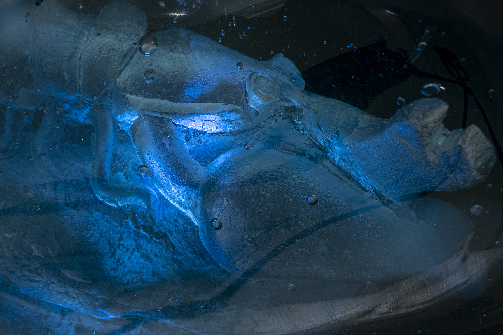 In their first joint exhibition, Stella Koleszár and Eszter Metzing use their art to explore inner processes that have been in motion for more than a year now and have been evolving ever since. They have created an image of an imaginary cave, the damp interior of which reflects several pieces of reality. It echoes the wholeness of being; it plays with the stitches of pain, the dimensions of existence frozen in glass. The cave thus imagined is at once the dream site of the individual, the story of the tales woven by the collective consciousness, a symbolic space of archetypes, and the creation of the exhibiting artists' private mythology. Birth, death, rebirth in the mud.
