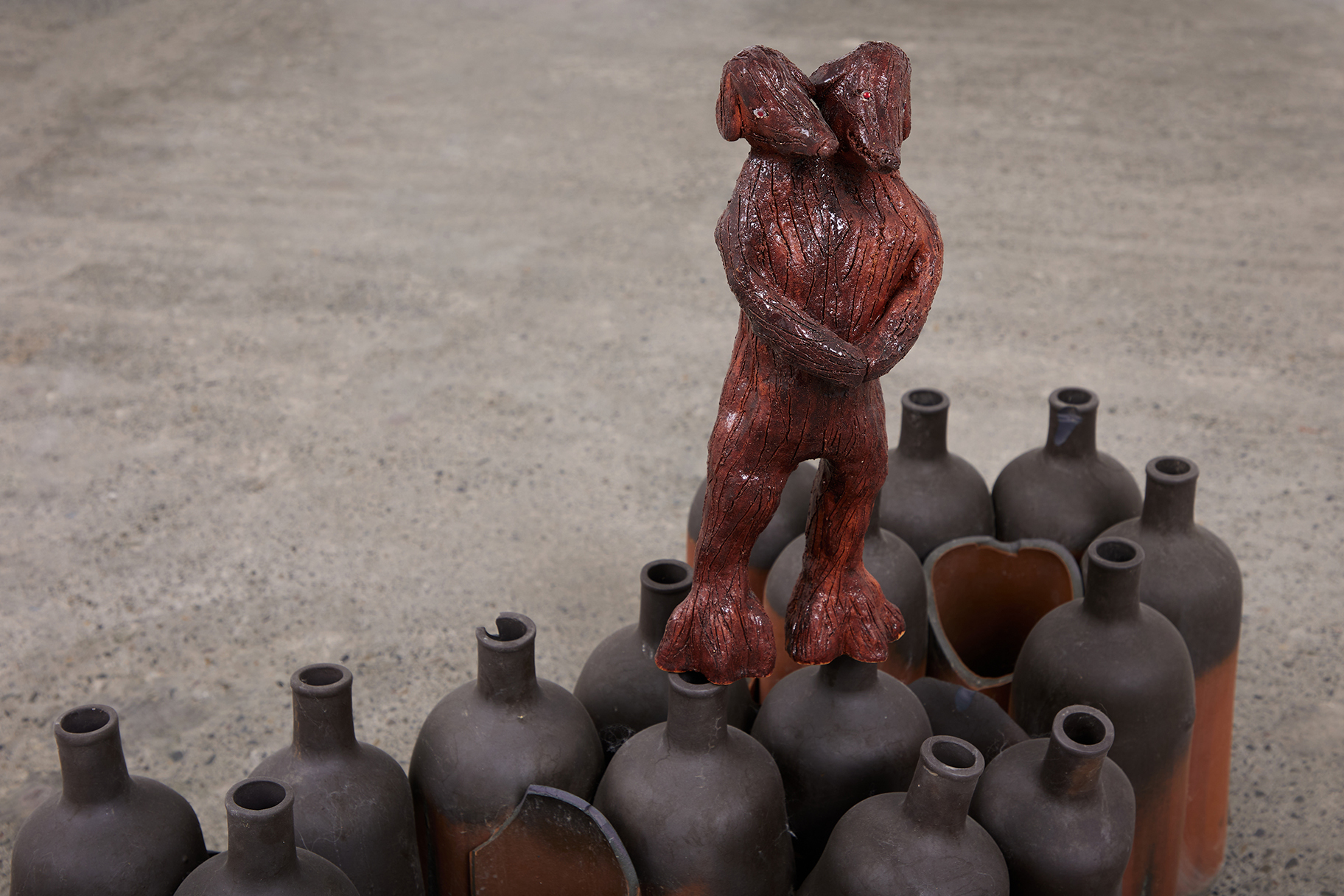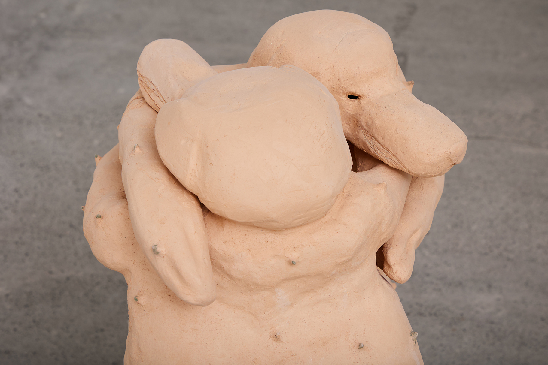 Qeu Meparishviliâs show âQuiet! someone is singing on a mountain...â, presents a multi-layered narrative that spreads across a small collection of mostly clay works and found objects. The theme of the show spirals from personal memories about her grandmother to mythology and social aesthetics - the female figure doubled within the vision of an ancestor and the archaic image of a woman. The same ambiguity applies to the materials as if the diversity of the narrative provokes the artist to use different methods such as clay molding and embossing techniques, used to decorate frames of old Christian icons. One wonders how these controversies taken from the profane and sacred spheres can still function together. And not only that but examined carefully the viewer finds out that behind the sculptures there is a sort of symbolic dimension, that describes the domination principle among the street dogs.