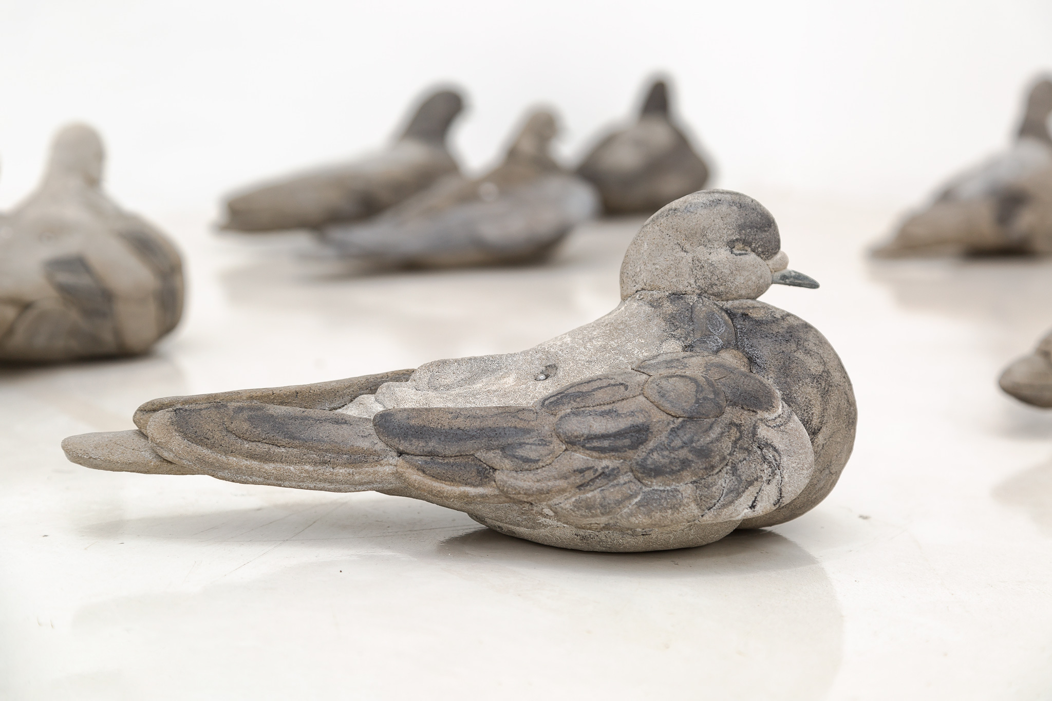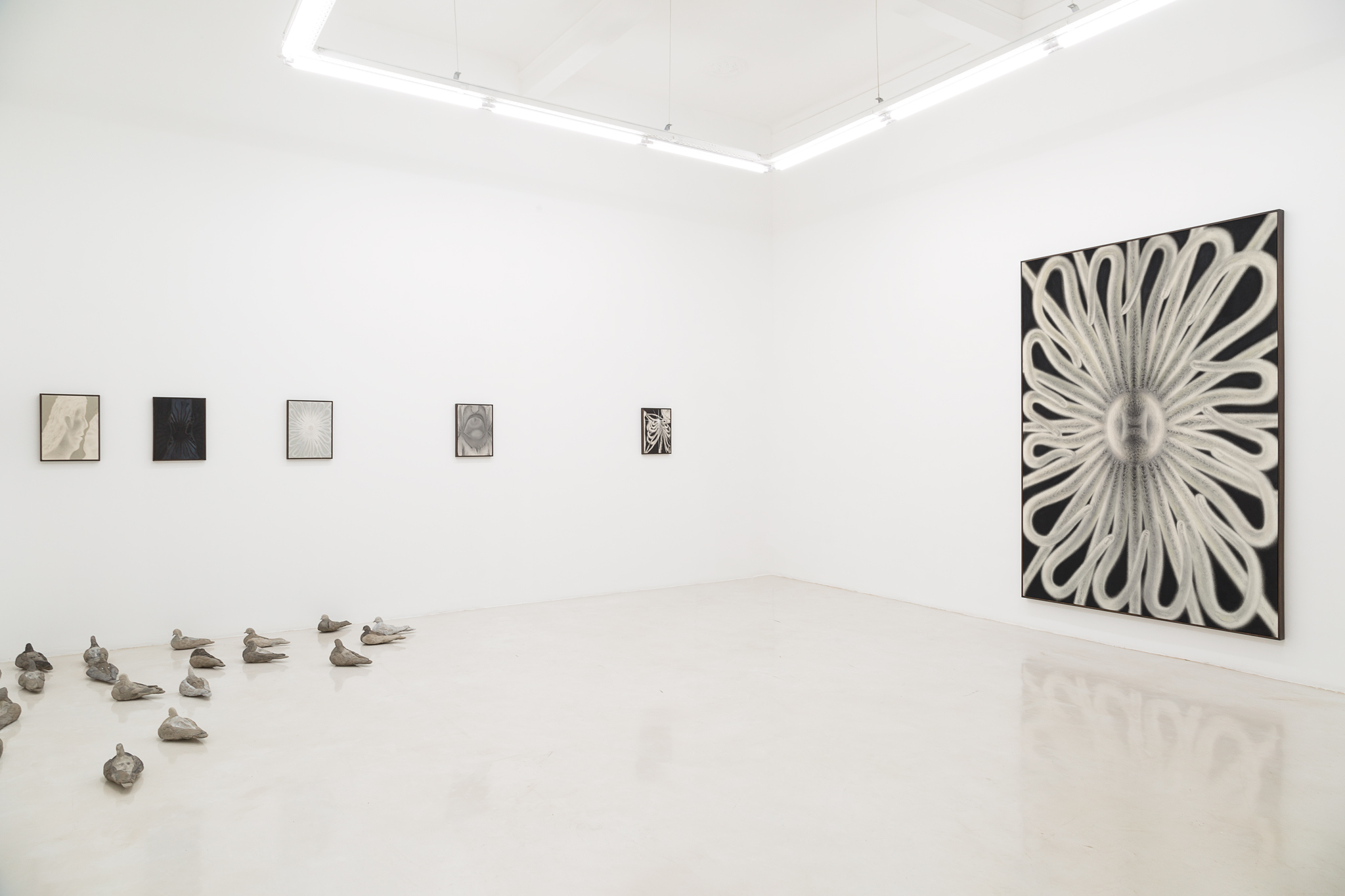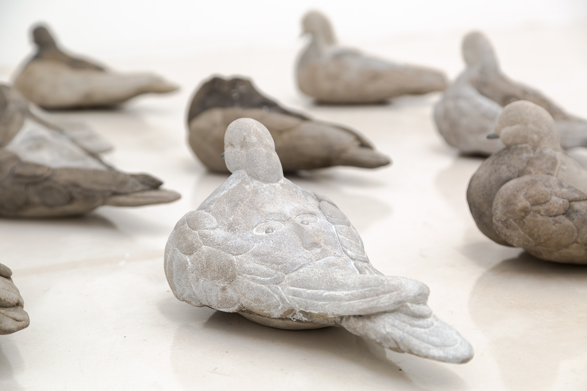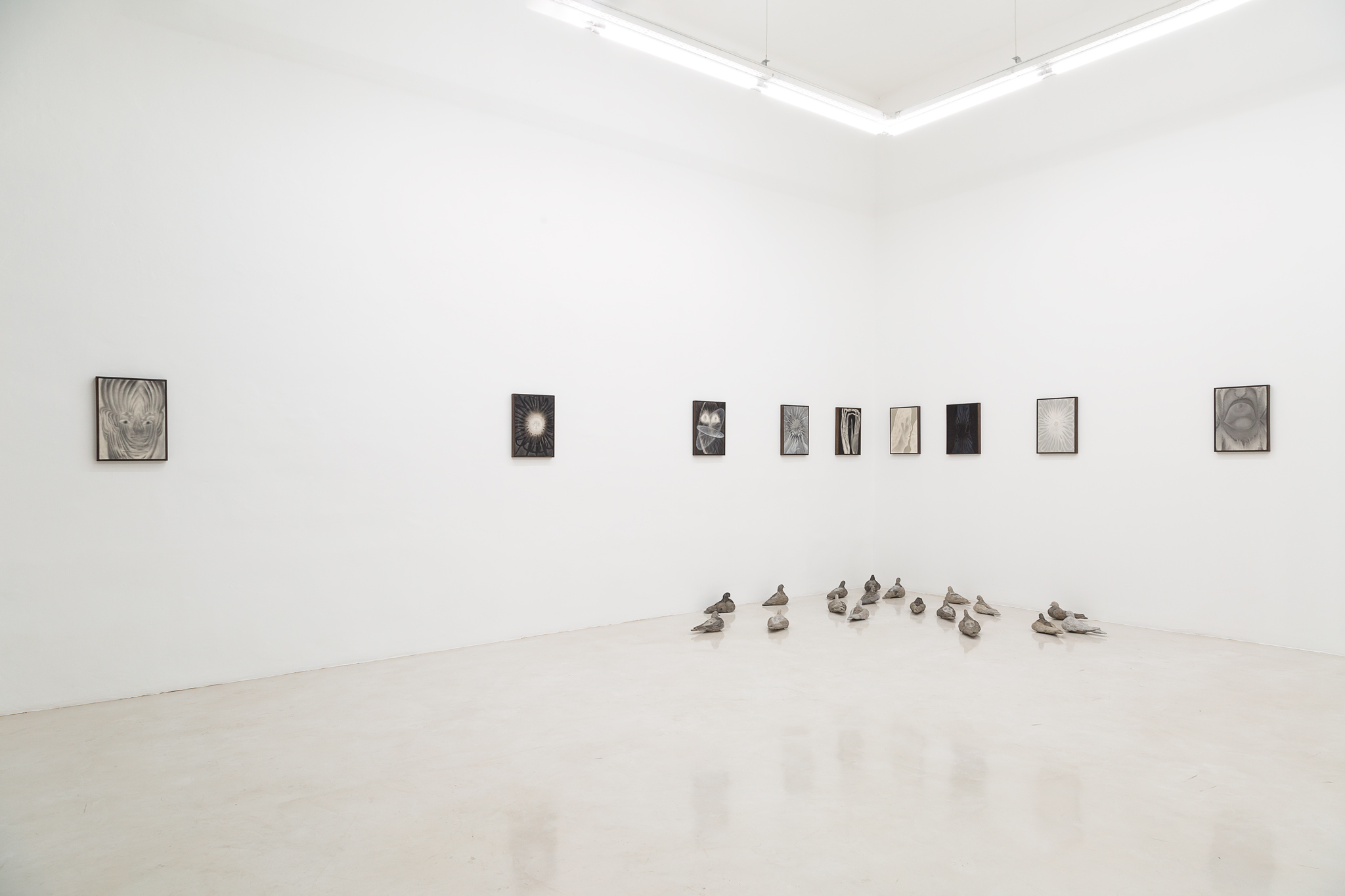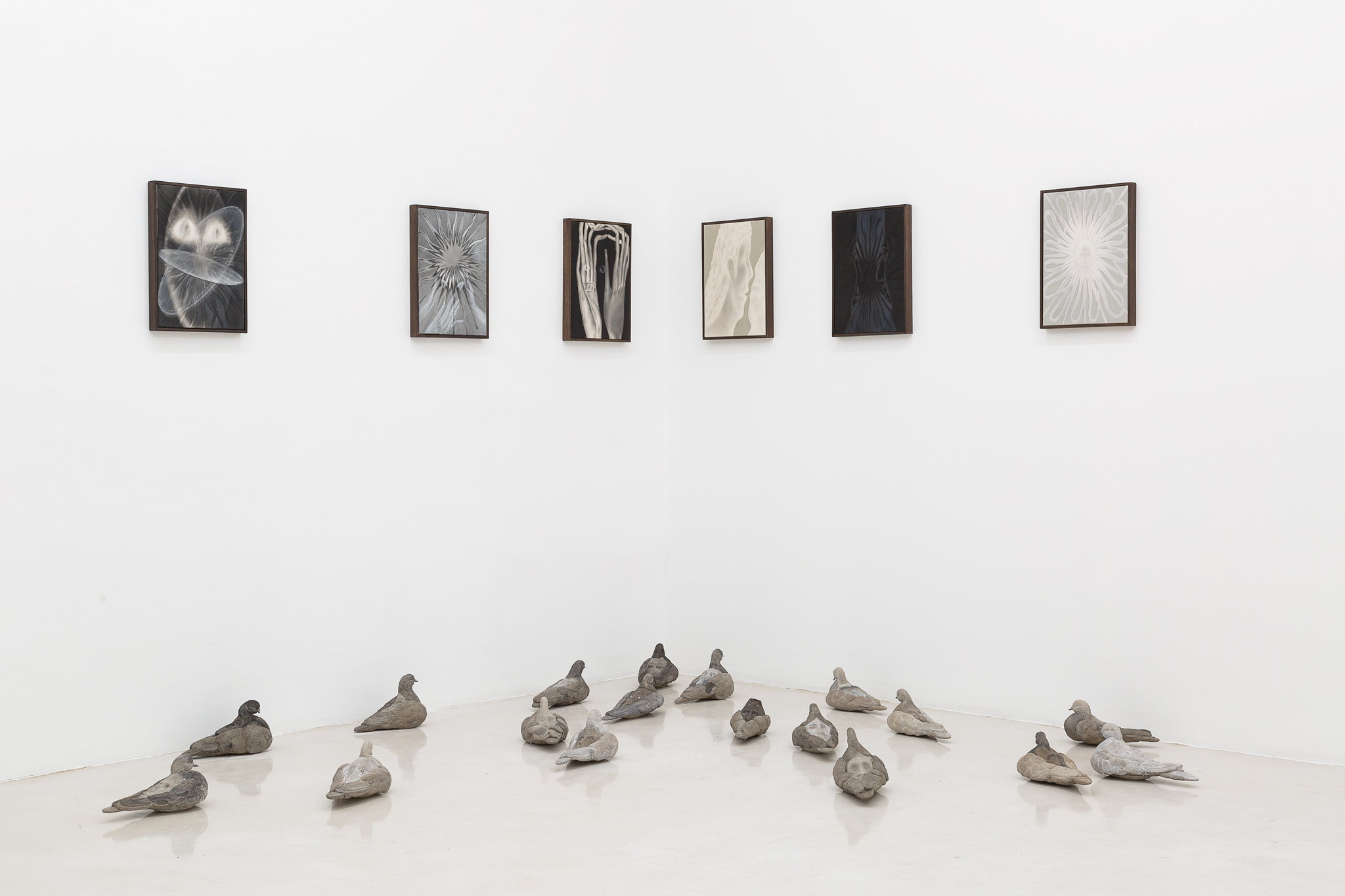 In the enormous fingers of the sun, the soul light enters in its widest dimension, where representation, figuration, phenomenon, and matter name their motif in detail. There, the body of light finds its full shape, turning itself into a symbol. On the other hand, elusive, on the backs of the pigeons, these faces, once light, appear gentle, opening in a tale of metamorphosis which starts from the simple phenomenon of a flash. It manifests itself in its behavior, as escaping or chasing a point: the animist movement of its hidden phenomenon. A coin has its hidden slogan in the representation of its fantastic story of reversible matters, cutouts of a hidden place in the images, fragments of a flashing fiction, images I conceive fall slowly and constantly on a cliffy and subtly rough surface that is eroding in cadence and allowing one to read the elemental aspects of its figuration.