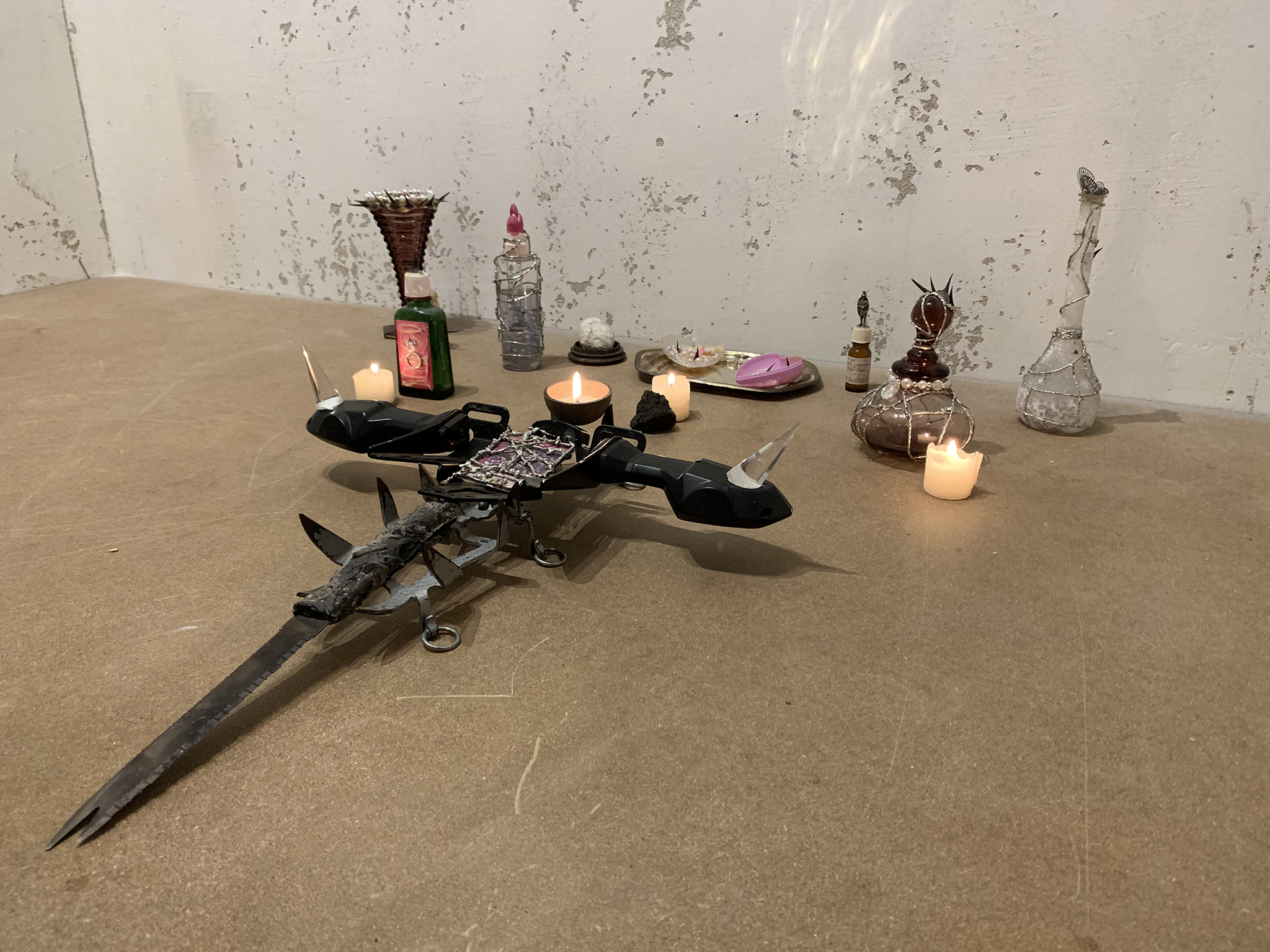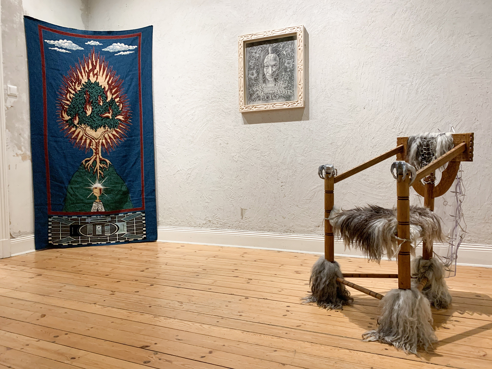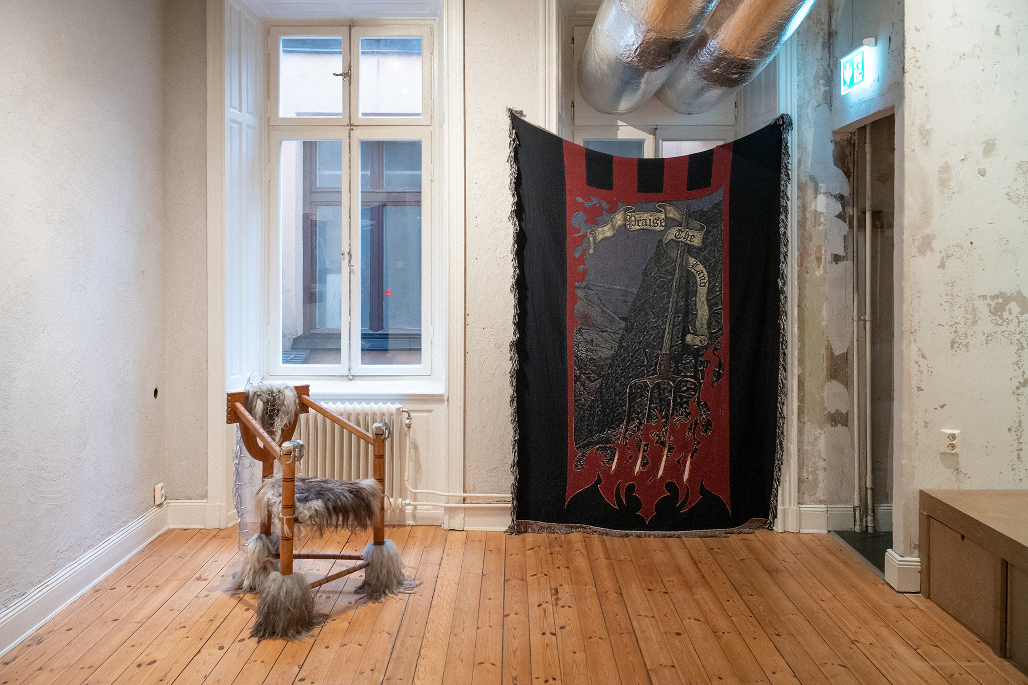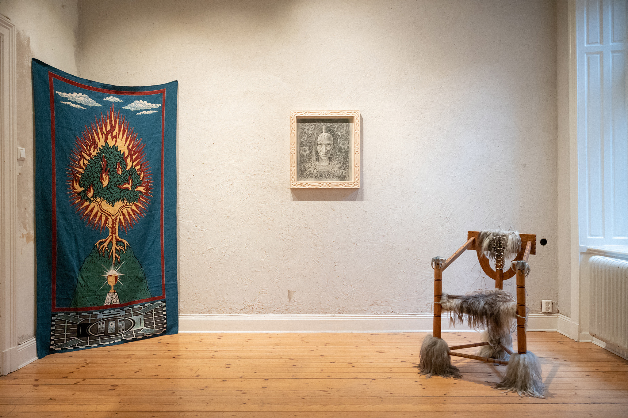 The Slaughtered Lamb is a site for the creation of the anti-myth. An exhibition where artworks become objects of worship not for religious purpose, but for queer ecological understanding and growth. Using esoteric symbolism and medieval aesthetics, the works emit a mantra of their own, resonating on the metaphysical, physical and astral plane. The Slaughtered Lamb brings together works that resist normative interpretations of the landscape, heraldry, and contemporary art.