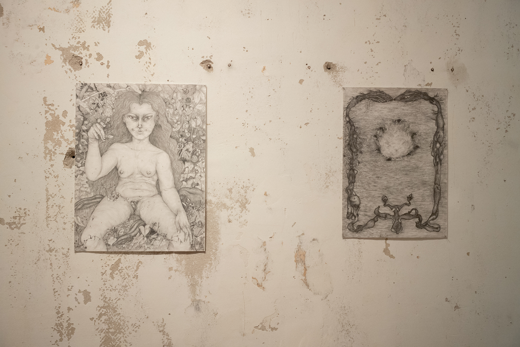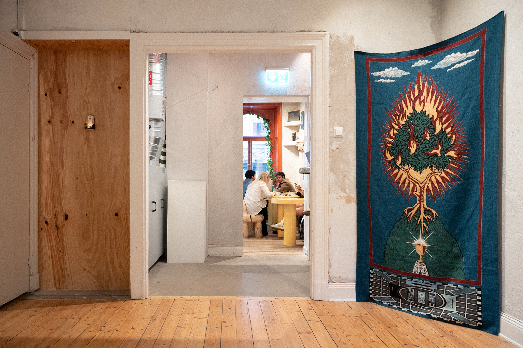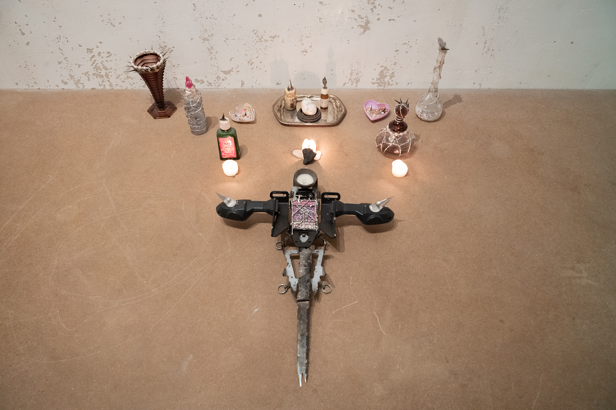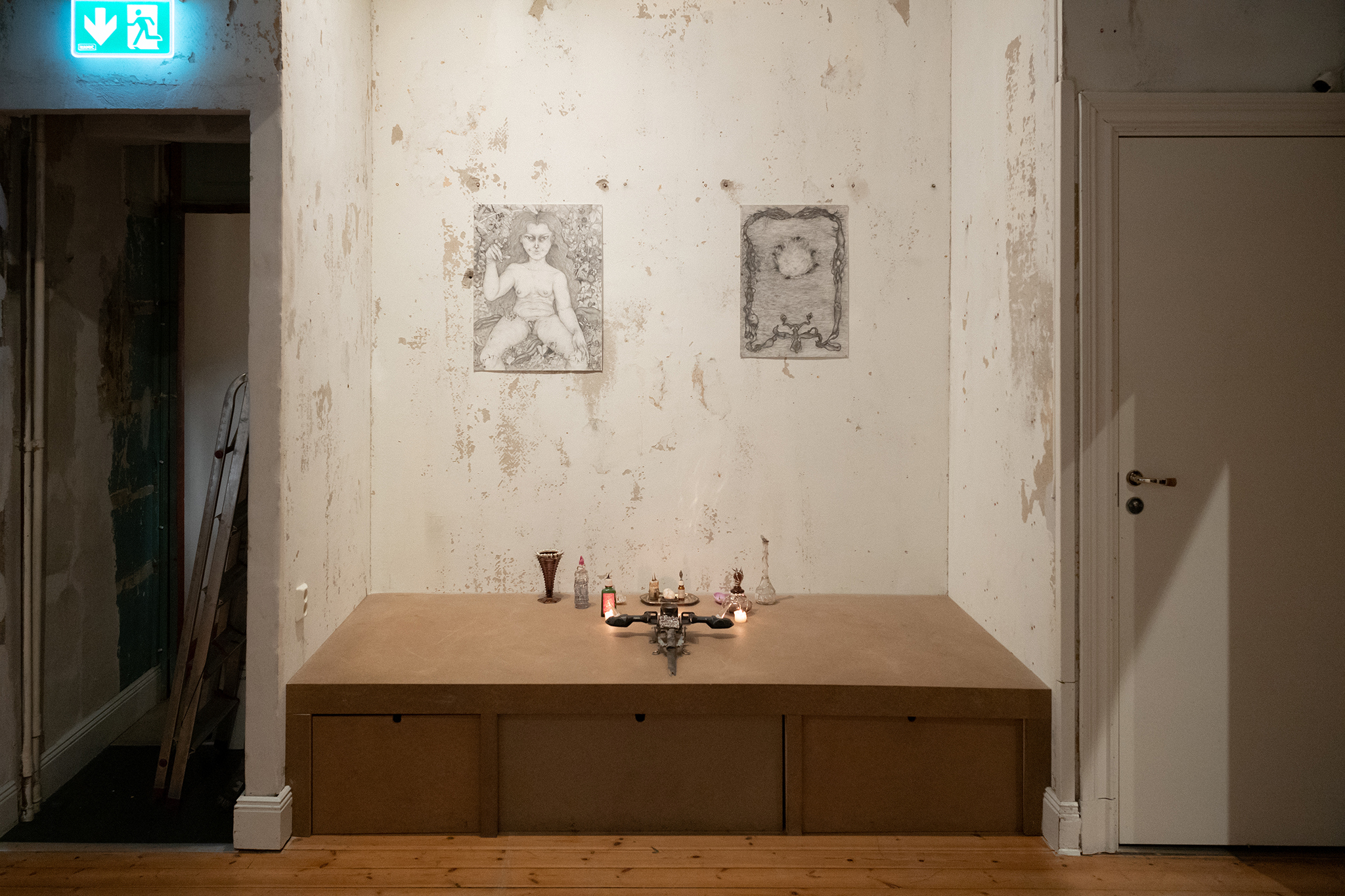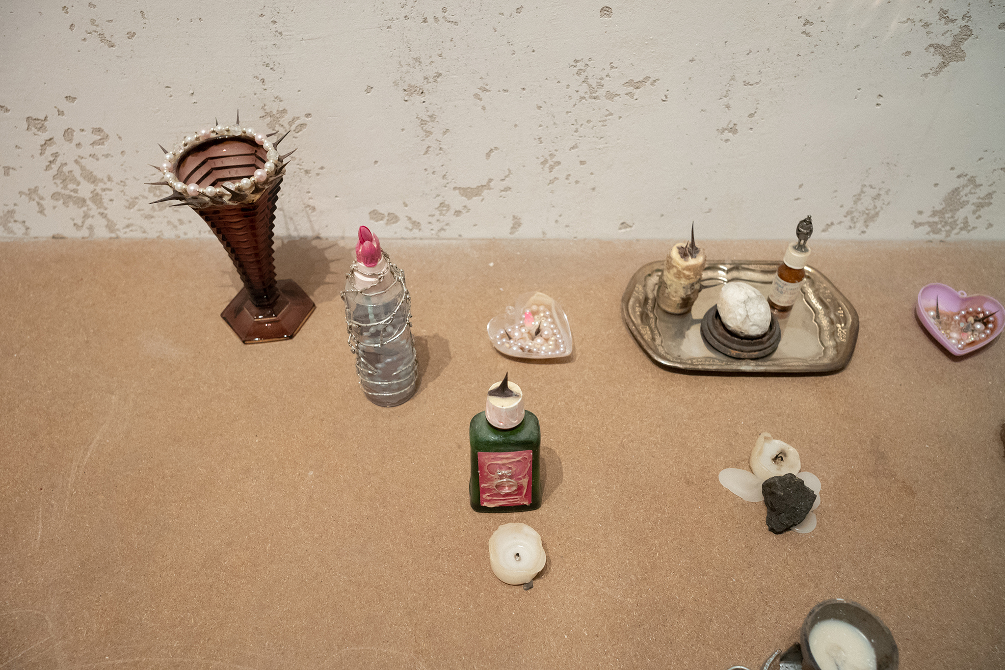 The Slaughtered Lamb is a site for the creation of the anti-myth. An exhibition where artworks become objects of worship not for religious purpose, but for queer ecological understanding and growth. Using esoteric symbolism and medieval aesthetics, the works emit a mantra of their own, resonating on the metaphysical, physical and astral plane. The Slaughtered Lamb brings together works that resist normative interpretations of the landscape, heraldry, and contemporary art.