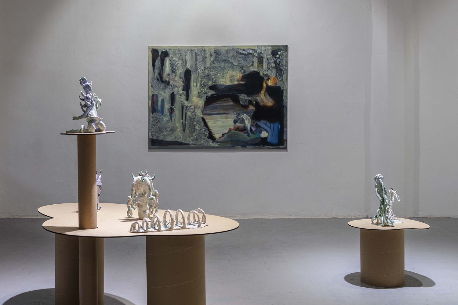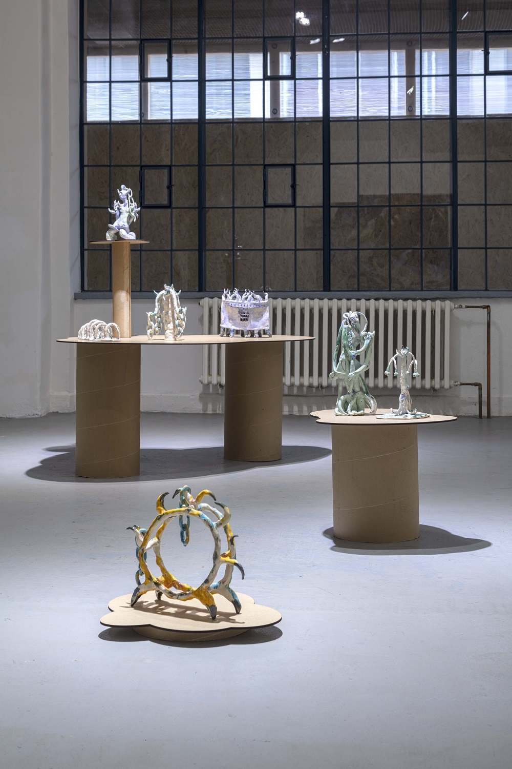 The actuality of Anna BochkovĂĄ's ceramic objects, often depicting the power and magic of nature, engulfs and transforms everything humanity has created, like the imaginary battle between good and evil. Snippets of memories, narratives and stories are preserved in mythical figures, architectural objects and subtle symbols that force us to take a closer look. Robert BuÄek's monumental installation, entitled Where We Will Not Live, is not just a mere exaggeration; the sharpness of this motif not only leads Robert to create new levels of meaning, as was the case, for example, with the sculpture Hideout for UherskĂ© HradiĆĄtÄ but also shapes his unmistakable handwriting. Julie HrnÄĂĆovĂĄ, whose artefacts are a mixture of everyday situations, chance encounters, and poetic corners, which she presents to us in various material combinations. She gives prominence to otherwise neglected moments that frame our present. In this case, it is ceramic frames that take the medium of photography to the level of an object in its own right. The visual traces, gestures and strong imagery of Jan Valik, represent an almost exploratory interest, and come together in large-format abstract paintings that emerge from the artist's inner world.