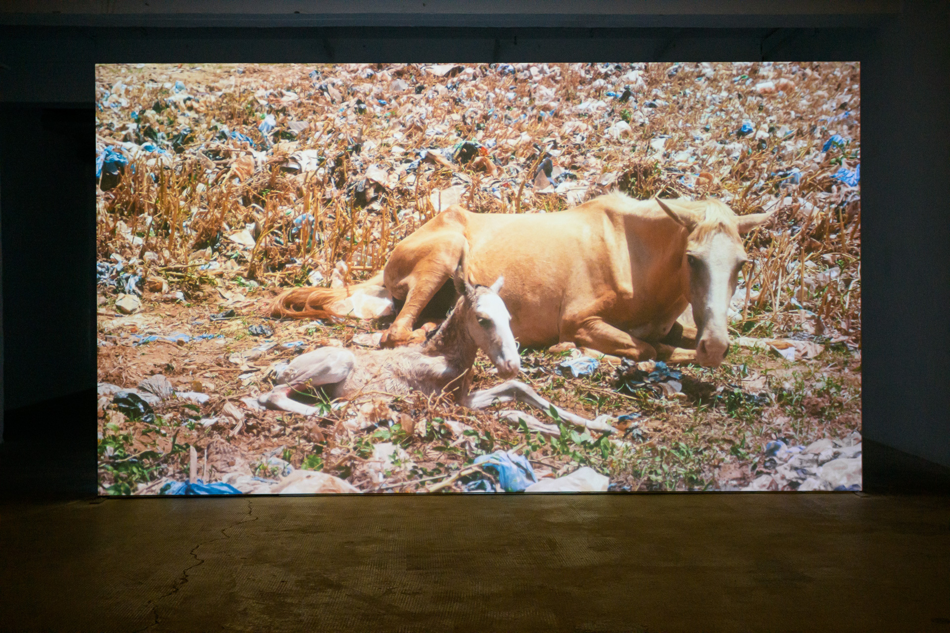 In her exhibition Horses and Angels, British artist Maeve Brennan sets the short human timespan in relation to the vast time frame of Earthâs history. What will be recorded in the Earthâs strata from our age, in which we humans fundamentally changed the conditions of life on the planet? In her new film installation With Horses, a dying horse and a newborn foal amidst a landscape of plastic waste address the temporality of the industrial age. In Listening in the Dark, the artistâs research on bats reminds us of prehistory and the immense dimensions of the age of the Earth in relation to the Anthropocene.